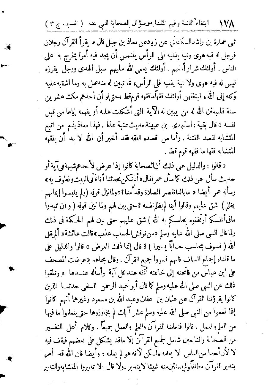 رَاكِبِينَ مَتْنَ الْخَطَرِ، فَإِيجَابُ الْعِدَّةِ حَيْثُ لَا عُلُوقَ أَهْوَنُ مِنْ رُكُوبِ هَذَا الْخَطَرِ، فَكَمَا أَنَّ إِيجَابَ الْعِدَّةِ حُكْمٌ شَرْعِيٌّ فَتَحْرِيمُ تَبْدِيلِ الْعَرَبِيَّةِ حُكْمٌ شَرْعِيٌّ ثَبَتَ بِالِاجْتِهَادِ وَتَرْجِيحِ طَرِيقِ الْأَوْلَى، وَيُعْلَمُ أَنَّ الِاحْتِيَاطَ فِي الْخَبَرِ عَنِ اللهِ وَعَنْ صِفَاتِهِ وَعَمَّا أَرَادَهُ بِأَلْفَاظِ الْقُرْآنِ أَهَمُّ وَأَوْلَى مِنَ الِاحْتِيَاطِ فِي الْعِدَّةِ وَمِنْ كُلِّ مَا احْتَاطَ بِهِ الْفُقَهَاءُ مِنْ هَذَا الْقَبِيلِ.