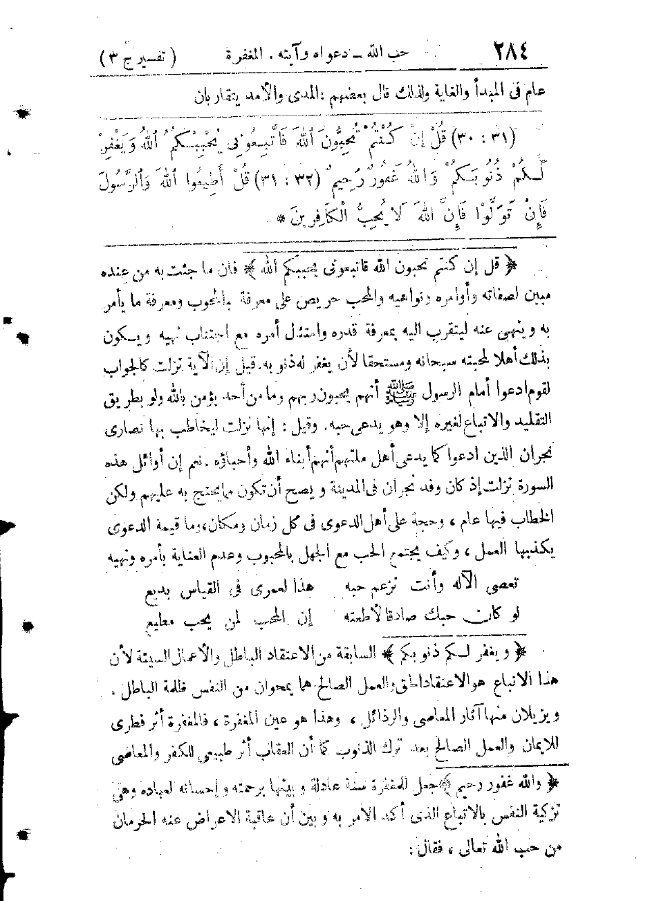 قَالَ الْأُسْتَاذُ الْإِمَامُ: هَذَا اللَّيُّ هُوَ أَنْ يُعْطِيَ النَّاطِقُ لِلَّفْظِ مَعْنًى آخَرَ غَيْرَ الْمَعْنَى الَّذِي يَظْهَرُ مِنْهُ. مِثَالُ ذَلِكَ الْأَلْفَاظُ الَّتِي جَاءَتْ عَلَى لِسَانِ سَيِّدِنَا عِيسَى - عَلَيْهِ السَّلَامُ - كَكَلِمَةِ ابْنِ اللهِ وَتَسْمِيَةِ اللهِ أَبًا لَهُ وَأَبًا لِلنَّاسِ فَقَدْ كَانَ ذَلِكَ اسْتِعْمَالًا مَجَازِيًّا، وَلَوَاهُ بَعْضُهُمْ فَنَقَلَهُ إِلَى الْحَقِيقَةِ بِالنِّسْبَةِ إِلَى الْمَسِيحِ وَحْدَهُ أَيْ فَهُمْ يُفَسِّرُونَ لَفْظًا بِغَيْرِ مَعْنَاهُ الْمُرَادِ فِي الْكِتَابِ يُوهِمُونَ النَّاسَ أَنَّ الْكِتَابَ جَاءَ بِذَلِكَ كَمَا قَالَ: لِتَحْسَبُوهُ مِنَ الْكِتَابِ وَمَا هُوَ مِنَ الْكِتَابِ وَيَقُولُونَ هُوَ مِنْ عِنْدِ اللهِ وَمَا هُوَ مِنْ عِنْدِ اللهِ وَيَقُولُونَ عَلَى اللهِ الْكَذِبَ وَهُمْ يَعْلَمُونَ إِنَّهُمْ كَاذِبُونَ.