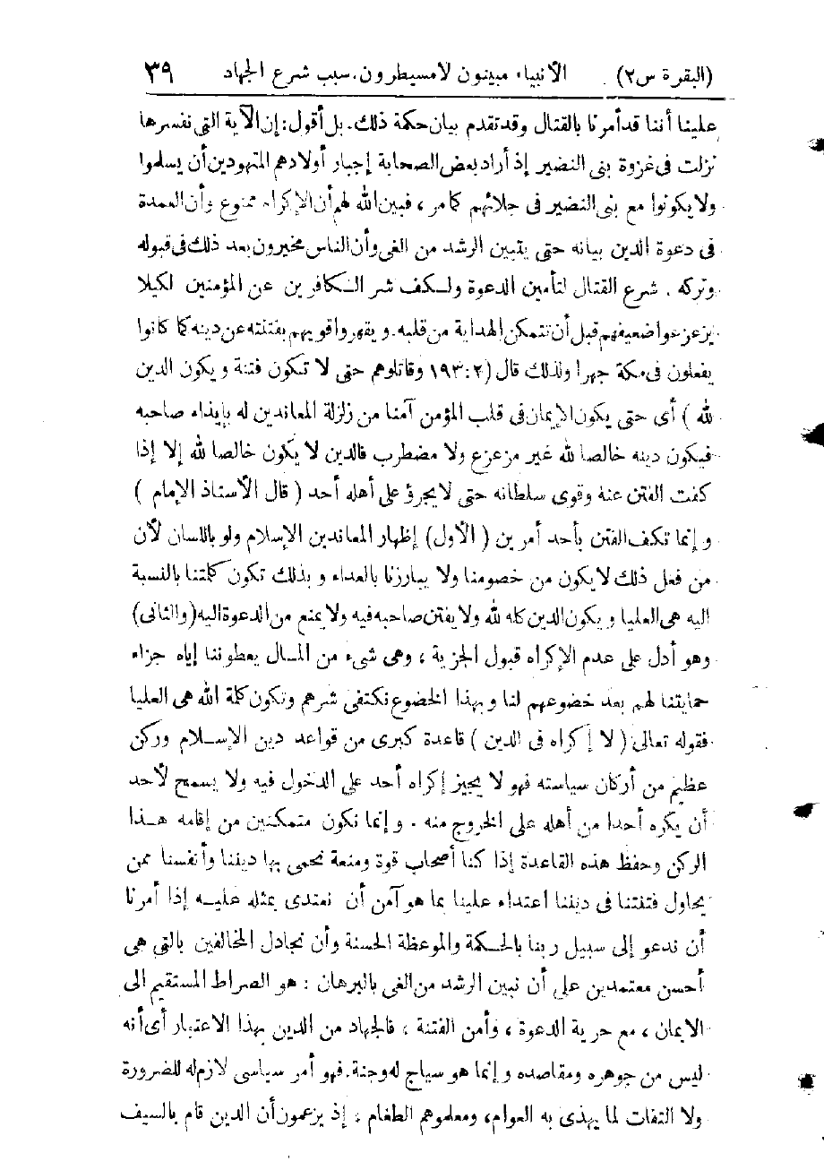 طُلُوعِ الشَّمْسِ، وَائْتِ بِهَا مِنَ الْجِهَةِ الْمُقَابِلَةِ لِلْجِهَةِ الَّتِي جَرَتْ سُنَّتُهُ - تَعَالَى - بِظُهُورٍ مِنْهَا. فَبُهِتَ الَّذِي كَفَرَ أَيْ أَدْرَكَتْهُ الْحَيْرَةُ وَأَخَذَهُ الْحَصْرُ مِنْ نُصُوعِ الْحُجَّةِ وَسُطُوعِهَا فَلَمْ يُحِرْ جَوَابًا. وَاللهُ لَا يَهْدِي الْقَوْمَ الظَّالِمِينَ قَالَ الْأُسْتَاذُ الْإِمَامُ: هَذَا تَرْشِيحٌ لِلْكَلَامِ، وَالْمُرَادُ بِالظُّلْمِ فِي هَذَا الْمَقَامِ: الْإِعْرَاضُ عَنِ النُّورِ الْإِلَهِيِّ وَهُوَ نُورُ الْعَقْلِ الَّذِي يَسِيرُ بِهِ الْمَرْءُ فِي طَرِيقِ الدِّينِ، فَمَنْ ظَلَمَ نَفْسَهُ بِإِطْفَاءِ هَذَا الْمِصْبَاحِ