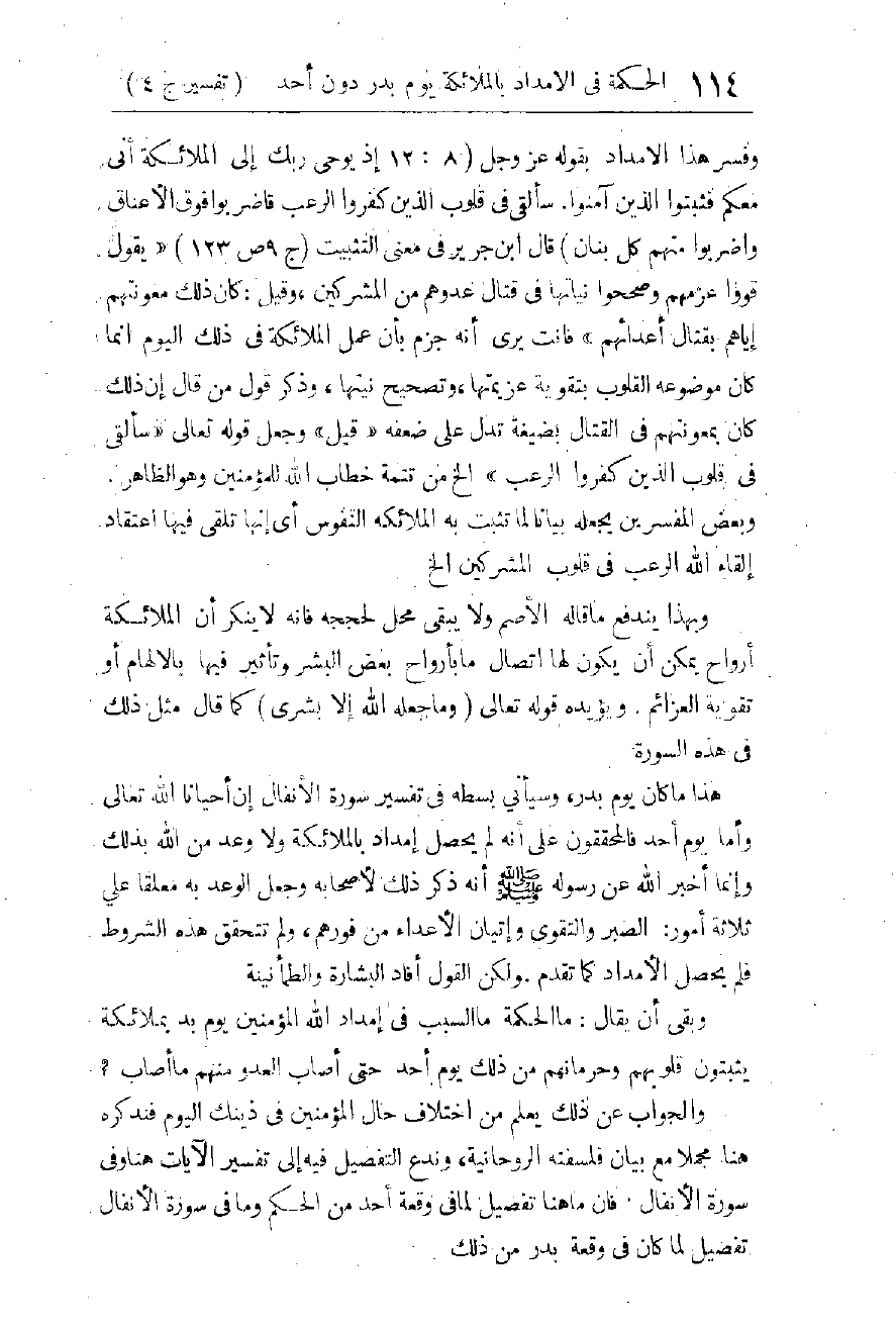 بِنَصْرِهِ لَهُمْ بِبَدْرٍ، ثُمَّ ذَكَرَ الْمُتَّقِينَ وَأَوْصَافَهُمْ وَمَا وُعِدُوا بِهِ، ثُمَّ ذَكَرَ بَعْدَ ذَلِكَ كُلِّهِ مُضِيَّ السُّنَنِ فِي الْأُمَمِ وَأَنَّهُ بَيَانٌ لِلنَّاسِ وَهُدًى وَمَوْعِظَةٌ لِلْمُتَّقِينَ، فَذِكْرُ السُّنَنِ بَعْدَ ذَلِكَ كُلِّهِ يُفِيدُ مَعَانِيَ كَثِيرَةً تَحْتَاجُ إِلَى شَرْحٍ طَوِيلٍ جِدًّا لَا مَعْنًى وَاحِدًا كَمَا قِيلَ. وَإِنَّ فِي الْقُرْآنِ مِنْ إِفَادَةِ الْمَبَانِي الْقَلِيلَةِ لِلْمَعَانِي الْكَثِيرَةِ بِمَعُونَةِ السِّيَاقِ وَالْأُسْلُوبِ مَا لَا يَخْطُرُ فِي بَالِ أَحَدٍ مِنْ كُتَّابِ الْبَشَرِ وَعُلَمَائِهِمْ، وَمِثْلُ هَذَا مِمَّا تَجِبُ الْعِنَايَةُ بِبَيَانِهِ، يَقُولُ الشَّيْخُ عَبْدُ الْقَاهِرِ فِي دَلَائِلِ الْإِعْجَازِ: إِنَّ كَوْنَ الْقُرْآنِ مُعْجِزًا بِبَلَاغَتِهِ يُوجِبُ عَلَيْنَا أَنْ نَجْعَلَ أُسْلُوبَهُ الَّذِي كَانَ مُعْجِزًا بِهِ فَنًّا لِيَبْقَى دَالًّا عَلَى وَجْهِ إِعْجَازِهِ. وَكَذَلِكَ أَقُولُ: إِنَّ إِرْشَادَ اللهِ إِيَّانَا إِلَى أَنَّ لَهُ فِي خَلْقِهِ سُنَنًا يُوجِبُ عَلَيْنَا أَنْ نَجْعَلَ هَذِهِ السُّنَنَ عِلْمًا مِنَ الْعُلُومِ الْمُدَوَّنَةِ لِنَسْتَدِيمَ مَا فِيهَا مِنَ الْهِدَايَةِ وَالْمَوْعِظَةِ عَلَى أَكْمَلِ وَجْهٍ، فَيَجِبُ عَلَى الْأُمَّةِ فِي مَجْمُوعِهَا أَنْ يَكُونَ فِيهَا قَوْمٌ يُبَيِّنُونَ لَهَا سُنَنَ اللهِ فِي خَلْقِهِ كَمَا فَعَلُوا فِي غَيْرِ هَذَا الْعِلْمِ مِنَ الْعُلُومِ وَالْفُنُونِ الَّتِي أَرْشَدَ إِلَيْهَا الْقُرْآنُ بِالْإِجْمَالِ وَقَدْ بَيَّنَهَا الْعُلَمَاءُ بِالتَّفْصِيلِ عَمَلًا بِإِرْشَادِهِ، كَالتَّوْحِيدِ وَالْأُصُولِ وَالْفِقْهِ. وَالْعِلْمُ بِسُنَنِ اللهِ - تَعَالَى - مِنْ أَهَمِّ الْعُلُومِ وَأَنْفَعِهَا، وَالْقُرْآنُ سَجَّلَ