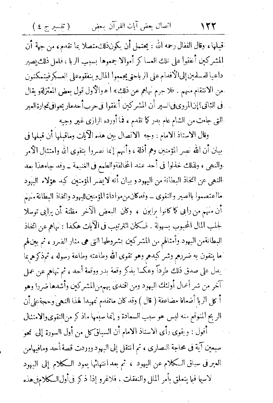 الْوَاقِعِ تَكُونُ مَبْنِيَّةً عَلَى أَعْمَالِ النَّاسِ. فَلَا تَكُونُ الدَّوْلَةُ لِفَرِيقٍ دُونَ أَخَرَ جُزَافًا، وَإِنَّمَا تَكُونُ لِمَنْ عَرَفَ أَسْبَابَهَا وَرَعَاهَا حَقَّ رِعَايَتِهَا. أَيْ إِذَا عَلِمْتُمْ أَنَّ ذَلِكَ سُنَّةٌ فَعَلَيْكُمْ أَلَّا تَهِنُوا وَتَضْعُفُوا بِمَا أَصَابَكُمْ لِأَنَّكُمْ تَعْلَمُونَ أَنَّ الدَّوْلَةَ تَدُولُ. وَالْعِبَارَةُ تُومِئُ إِلَى شَيْءٍ مَطْوِيٍّ كَانَ مَعْلُومًا لَهُمْ، وَهُوَ أَنَّ لِكُلِّ دَوْلَةٍ سَبَبًا، فَكَأَنَّهُ قَالَ: إِذَا كَانَتِ الْمُدَاوَلَةُ مَنُوطَةً بِالْأَعْمَالِ الَّتِي تُفْضِي إِلَيْهَا كَالِاجْتِمَاعِ وَالثَّبَاتِ وَصِحَّةِ النَّظَرِ وَقُوَّةِ الْعَزِيمَةِ وَأَخْذِ الْأُهْبَةِ وَإِعْدَادِ مَا يُسْتَطَاعُ مِنَ الْقُوَّةِ فَعَلَيْكُمْ أَنْ تَقُومُوا بِهَذِهِ الْأَعْمَالِ وَتُحْكِمُوهَا أَتَمَّ الْإِحْكَامِ. وَفِي الْجُمْلَةِ مِنَ الْإِيجَازِ وَجَمْعِ الْمَعَانِي الْكَثِيرَةِ فِي الْأَلْفَاظِ الْقَلِيلَةِ مَا لَا يُعْهَدُ مِثْلُهُ فِي غَيْرِ الْقُرْآنِ.
