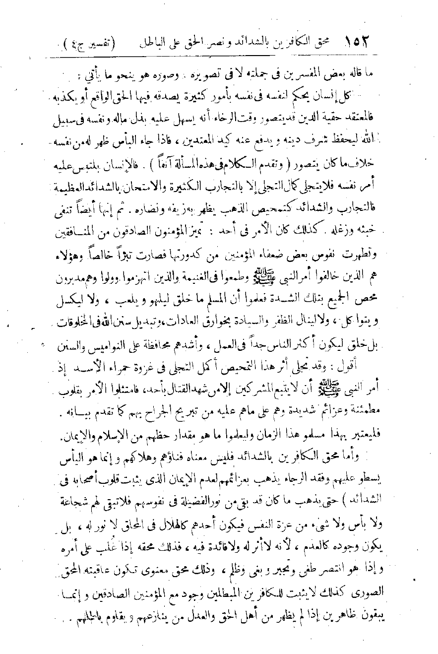 ثُمَّ أَنْزَلَ عَلَيْكُمْ مِنْ بَعْدِ الْغَمِّ أَمَنَةً نُعَاسًا يَغْشَى طَائِفَةً مِنْكُمْ الْأَمَنَةُ: الْأَمْنُ وَهُوَ ضِدُّ الْخَوْفِ، وَالنُّعَاسُ مَعْرُوفٌ، وَهُوَ فُتُورٌ يَتَقَدَّمُ النَّوْمَ وَيَظْهَرُ أَثَرُهُ فِي الْعَيْنَيْنِ، قَرَأَ حَمْزَةُ وَالْكِسَائِيُّ " تَغْشَى " بِالْفَوْقِيَّةِ أَيِ الْأَمَنَةُ وَالْبَاقُونَ " يَغْشَى " بِالتَّحْتِيَّةِ أَيِ النُّعَاسُ. يُقَالُ غَشِيَهُ النُّعَاسُ أَوِ النَّوْمُ كَمَا يُقَالُ رَانَ عَلَيْهِ أَيْ عَرَضَ لَهُ فَاسْتَوْلَى عَلَيْهِ وَغَطَّاهُ، كَمَا يُلْقَى السِّتْرُ عَلَى الشَّيْءِ. وَقَدْ تَقَدَّمَ فِي مُلَخَّصِ الْقِصَّةِ ذِكْرُ هَذَا النُّعَاسِ، وَأَنَّهُ كَانَ أَثْنَاءَ الْقِتَالِ، وَإِنَّمَا كَانَ مَانِعًا مِنَ الْخَوْفِ فَهُوَ ضَرْبٌ مِنَ الذُّهُولِ وَالْغَفْلَةِ عَنِ الْخَطَرِ، وَلَكِنْ رُوِيَ أَنَّ السُّيُوفَ كَانَتْ تَسْقُطُ مِنْ أَيْدِيهِمْ. وَاخْتَارَ الْأُسْتَاذُ الْإِمَامُ أَنَّهُ كَانَ بَعْدَ الْقِتَالِ. قَالَ مَا مِثَالُهُ: اخْتَلَفَ الْمُفَسِّرُونَ فِي وَقْتِ هَذَا النُّعَاسِ فَقَالَ بَعْضُهُمْ: إِنَّ ذَلِكَ كَانَ فِي أَثْنَاءِ الْوَقْعَةِ وَأَنَّ الرَّجُلَ كَانَ يَنَامُ تَحْتَ تُرْسِهِ كَأَنَّهُ آمِنٌ مِنْ كُلِّ خَوْفٍ وَفَزَعٍ إِلَّا الْمُنَافِقِينَ فَإِنَّهُمْ أَهَمَّتْهُمْ أَنْفُسُهُمْ فَاشْتَدَّ جَزَعُهُمْ. وَحَمَلَ بَعْضُهُمْ هَذِهِ الْآيَةَ عَلَى آيَةِ الْأَنْفَالِ إِذْ يُغَشِّيكُمُ النُّعَاسَ أَمَنَةً مِنْهُ [8: 11] وَإِنَّمَا هَذِهِ فِي غَزْوَةِ بَدْرٍ، وَقَدْ مَضَتِ السُّنَّةُ