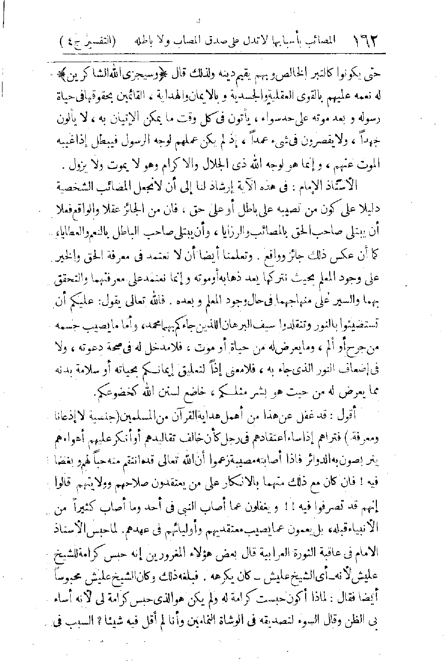 قَالَ الْأُسْتَاذُ الْإِمَامُ. فِي مَعْنَى الْحَشْرِ إِلَى اللهِ - تَعَالَى -: إِنَّهُ لَيْسَ لِلَّهِ - تَعَالَى - مَكَانٌ يَحْصُرُهُ فَيَحْشُرُ النَّاسَ وَيُسَاقُونَ إِلَيْهِ، وَلَكِنَّ الْإِنْسَانَ يَغْفُلُ فِي هَذِهِ الدَّارِ عَنِ اللهِ فَيَنْسَى هَيْبَتَهُ وَجَلَالَهُ، وَيَنْصَرِفُ عَنِ اسْتِشْعَارِ عَظَمَتِهِ وَسُلْطَانِهِ ; لِاشْتِغَالِهِ بِدَفْعِ الْمَكَارِهِ عَنْ نَفْسِهِ وَجَلْبِ اللَّذَّاتِ وَالرَّغَائِبِ لَهَا. وَأَمَّا ذَلِكَ الْيَوْمُ الَّذِي يُحْشَرُ لَهُ النَّاسُ فَلَا اشْتِغَالَ فِيهِ بِتَقْوِيمِ بِنْيَةٍ، وَلَا التَّمَتُّعِ بِلَذَّةٍ، وَلَا مُدَافَعَةِ عَدُوٍّ، وَلَا مُقَاوَمَةِ مَكْرُوهٍ، وَلَا بِتَرْبِيَةِ نَفْسٍ، وَلَا تَنْزِيهِ حِسٍّ، وَإِنَّمَا يَسْتَقْبِلُ فِيهِ كُلُّ أَحَدٍ مَا يُلَاقِيهِ مِنَ اللهِ - تَعَالَى - جَزَاءً عَلَى عَمَلِهِ لَا يَشْغَلُهُ عَنْهُ شَيْءٌ، فَيَكُونُ بِذَلِكَ رَاجِعًا عَنْ كُلِّ شَيْءٍ كَانَ فِيهِ إِلَى اللهِ - تَعَالَى - مَحْشُورًا مَعَ سَائِرِ النَّاسِ إِلَيْهِ لَا يَشْغَلُهُ عَنْهُ شَيْءٌ (قَالَ) وَإِذَا كَانَ مَصِيرُ كُلِّ مَنْ يَمُوتُ أَوْ يُقْتَلُ إِلَى اللهِ - تَعَالَى - مَهْمَا كَانَ سَبَبُ مَوْتِهِ أَوْ قَتْلِهِ وَمَهْمَا طَالَتْ حَيَاتُهُ فَالِاشْتِغَالُ بِذِكْرِ سَبَبِ هَذَا الْمَصِيرِ وَمَبْدَئِهِ لَا يُفِيدُ، وَإِنَّمَا الَّذِي يُفِيدُ هُوَ الِاهْتِمَامُ بِذَلِكَ الْمُسْتَقْبَلِ وَالِاشْتِغَالُ بِالِاسْتِعْدَادِ لَهُ، وَذَلِكَ دَأْبُ الْعُقَلَاءِ مِنَ الْمُؤْمِنِينَ.