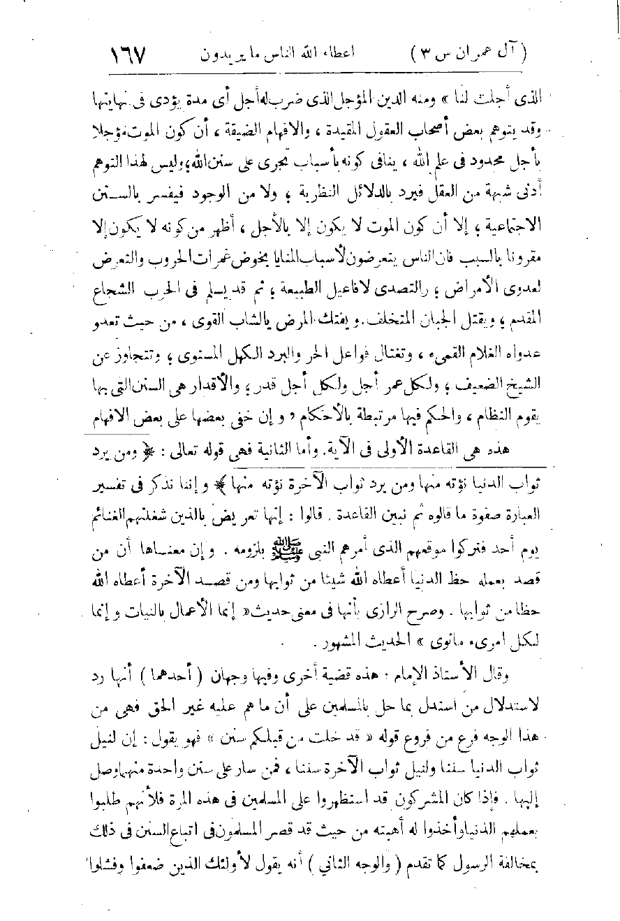 أَنَّهُمُ الْعُلَمَاءُ، وَمِنَ النَّاسِ مَنْ يُعَبِّرُ بِكَلِمَةِ " الْفُقَهَاءِ " وَمِنَ الْمَعْلُومِ أَنَّهُ لَمْ يَكُنْ مَعَ النَّبِيِّ - صَلَّى اللَّهُ عَلَيْهِ وَسَلَّمَ - أُمَرَاءُ حَاكِمُونَ وَلَا صِنْفٌ يُسَمَّى الْفُقَهَاءُ، وَإِنَّمَا الْمُرَادُ بِـ أُولِي الْأَمْرِ الَّذِينَ تُرَدُّ إِلَيْهِمْ مَسَائِلُ الْأَمْنِ وَالْخَوْفِ وَمَا فِي مَعْنَاهَا مِنَ الْأُمُورِ الْعَامَّةِ: أَهْلُ الرَّأْيِ وَالْمَكَانَةِ فِي الْأُمَّةِ وَهُمُ الْعُلَمَاءُ بِمَصَالِحِهَا وَطُرُقِ حِفْظِهَا وَالْمَقْبُولَةُ آرَاؤُهُمْ عِنْدَ عَامَّتِهَا، فَمَا فَعَلَهُ أَبُو بَكْرٍ وَعُمَرُ - رَضِيَ اللهُ عَنْهُمَا - هُوَ مُنْتَهَى مَا يُمْكِنُ أَنْ يُعْمَلَ فِي إِقَامَةِ الشُّورَى بِحَسَبِ حَالِ الْأُمَّةِ وَاسْتِعْدَادِهَا فِي زَمَنِهِمَا. ثُمَّ إِنَّ الْمُسْلِمِينَ بَادَرُوا بَعْدَ قَتْلِ عُثْمَانَ إِلَى مُبَايَعَةِ عَلِيٍّ مِنْ غَيْرِ اهْتِمَامٍ بِالتَّشَاوُرِ ; لِأَنَّ الْكَفَاءَةَ الَّتِي يَرَوْنَهَا فِيهَا لَمْ تَكُنْ تَقْبَلُ شَرِكَةً تَدْعُو إِلَى إِجَالَةِ الرَّأْيِ، فَمُبَايَعَةُ الْخُلَفَاءِ الرَّاشِدِينَ كَانَتْ مِنَ الْأُمَّةِ بِرِضَاهَا، وَكَانُوا يَسْتَشِيرُونَ أَهْلَ الْعِلْمِ وَالرَّأْيِ فِي كُلِّ شَيْءٍ إِلَّا أَنَّ بَنِي أُمَيَّةَ قَدْ أَحَاطُوا بِعُثْمَانَ وَغَلَبُوا الْأُمَّةَ عَلَى رَأْيِهَا عِنْدَهُ، فَكَانَ مِنْ عَاقِبَةِ ذَلِكَ مَا كَانَ مِنَ الْفِتَنِ حَتَّى اسْتَقَرَّ الْأَمْرُ فِيهِمْ بِقُوَّةِ الْعَصَبِيَّةِ وَالدَّهَاءِ، لَا بِاسْتِشَارَةِ الدَّهْمَاءِ ; فَهُمُ الَّذِينَ هَدَمُوا قَاعِدَةَ الْحُكْمِ بِالشُّورَى فِي الْإِسْلَامِ بَدَلًا مِنْ إِقَامَتِهِ وَوَضْعِ الْقَوَانِينِ الَّتِي تَحْفَظُهَا، وَتَجْعَلُ اسْتِفَادَةَ الْأُمَّةَ مِنْهَا تَابِعَةً لِتَقَدُّمِ الْعُلُومِ وَالْمَعَارِفِ وَأَعْمَالِ الْعُمْرَانِ فِيهَا، وَلَوْلَا هَذَا لَكَانَ ذَلِكَ الْمُلْكُ الَّذِي وَسَّعُوا دَائِرَتَهُ بِالْفُتُوحَاتِ أَثْبَتَ فِي نَفْسِهِ وَلَهُمْ، وَلَكَانَ شَأْنُ الْإِسْلَامِ أَعْظَمَ، وَانْتِشَارُهُ أَكْثَرَ وَأَعَمَّ، عَلَى أَنَّ هَذَا الِاسْتِبْدَادَ مِنْهُمْ قَدْ كَانَ مُعْظَمُهُ مَصْرُوفًا إِلَى الْمُحَافَظَةِ عَلَى سُلْطَتِهِمْ وَبَقَاءِ الْمُلْكِ فِي أُسْرَتِهِمْ، قَلَّمَا يَتَسَرَّبُ مِنْهُ شَيْءٌ إِلَى الْإِدَارَةِ وَالْقَضَاءِ. وَكَانَتْ حُرِّيَّةُ انْتِقَادِ الْحُكَّامِ وَالْإِنْكَارِ عَلَيْهِمْ عَلَى كَمَالِهَا حَتَّى تَبَرَّمَ مِنْهَا عَبْدُ الْمَلِكِ بْنُ مَرْوَانَ فَقَالَ عَلَى الْمِنْبَرِ: مَنْ قَالَ لِي اتَّقِ اللهَ ضَرَبْتُ عُنُقَهُ - كَمَا رُوِيَ عَنْ بَعْضِ الْمُؤَرِّخِينَ - وَلَكِنَّهُمْ كَانُوا يَتَصَرَّفُونَ فِي بَيْتِ الْمَالِ بِأَهْوَائِهِمْ فِي الْغَالِبِ، وَلَمَّا أَفْضَى الْأَمْرُ إِلَى وَارِثِ الْخُلَفَاءِ الرَّاشِدِينَ عُمَرَ بْنِ عَبْدِ الْعَزِيزِ - رَحِمَهُ اللهُ تَعَالَى - أَرَادَ أَنْ يُخْرِجَهُ مِنْ قَوْمِهِ، فَلَمْ يَتَيَسَّرْ لَهُ ذَلِكَ.