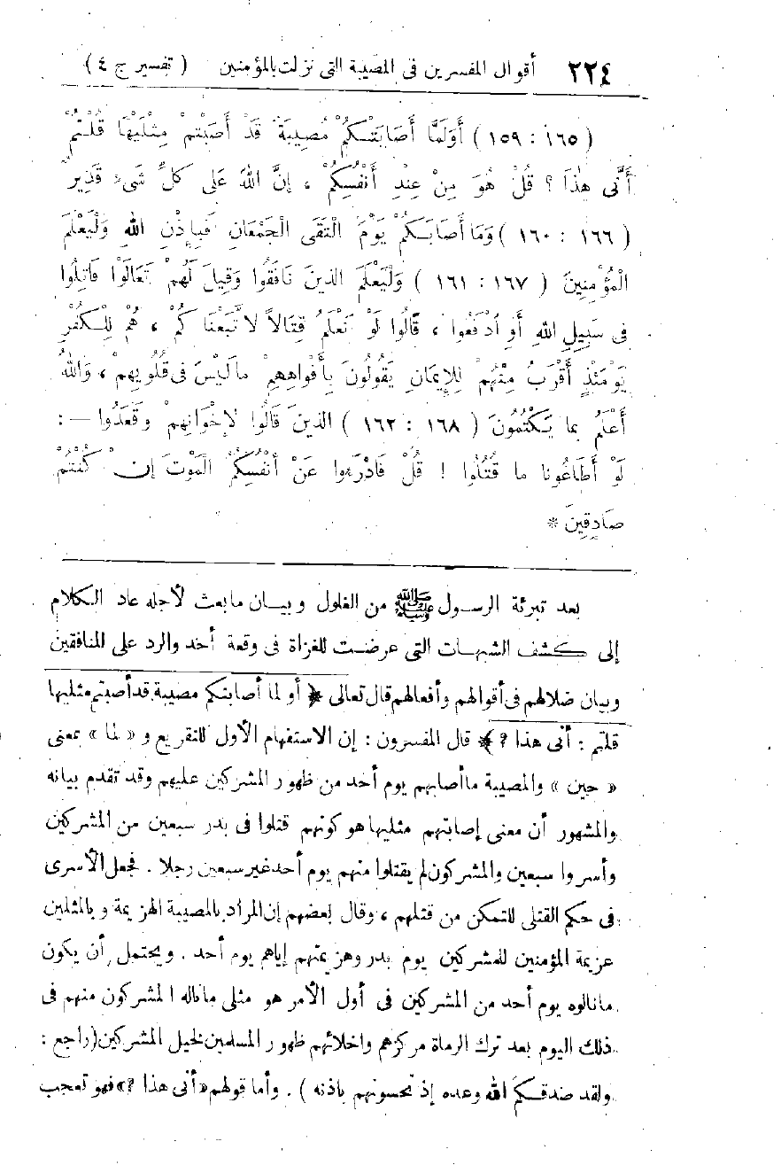لَتُبْلَوُنَّ فِي أَمْوَالِكُمْ وَأَنْفُسِكُمْ قَالَ الرَّازِيُّ: اعْلَمْ أَنَّهُ - تَعَالَى - لَمَّا سَلَّى الرَّسُولَ - صَلَّى اللَّهُ عَلَيْهِ وَسَلَّمَ - بِقَوْلِهِ: كُلُّ نَفْسٍ ذَائِقَةُ الْمَوْتِ زَادَ فِي تَسْلِيَتِهِ بِهَذِهِ الْآيَةِ، فَبَيَّنَ أَنَّ الْكُفَّارَ بَعْدَ أَنْ آذَوُا الرَّسُولَ، وَالْمُسْلِمِينَ يَوْمَ أُحُدٍ فَسَيُؤْذُونَهُمْ أَيْضًا فِي الْمُسْتَقْبَلِ بِكُلِّ طَرِيقٍ يُمْكِنُهُمْ مِنَ الْإِيذَاءِ بِالنَّفْسِ، وَالْإِيذَاءِ بِالْمَالِ، وَالْغَرَضُ مِنْ هَذَا الْإِعْلَامِ أَنْ يُوَطِّنُوا أَنْفُسَهُمْ عَلَى الصَّبْرِ، وَتَرْكِ الْجَزَعِ، وَذَلِكَ لِأَنَّ الْإِنْسَانَ إِذَا لَمْ يَعْلَمْ نُزُولَ الْبَلَاءِ عَلَيْهِ، فَإِذَا نَزَلَ الْبَلَاءُ شَقَّ ذَلِكَ عَلَيْهِ، أَمَّا إِذَا كَانَ عَالِمًا بِأَنَّهُ سَيَنْزِلُ، فَإِذَا نَزَلَ لَمْ يَعْظُمْ وَقْعُهُ عَلَيْهِ.