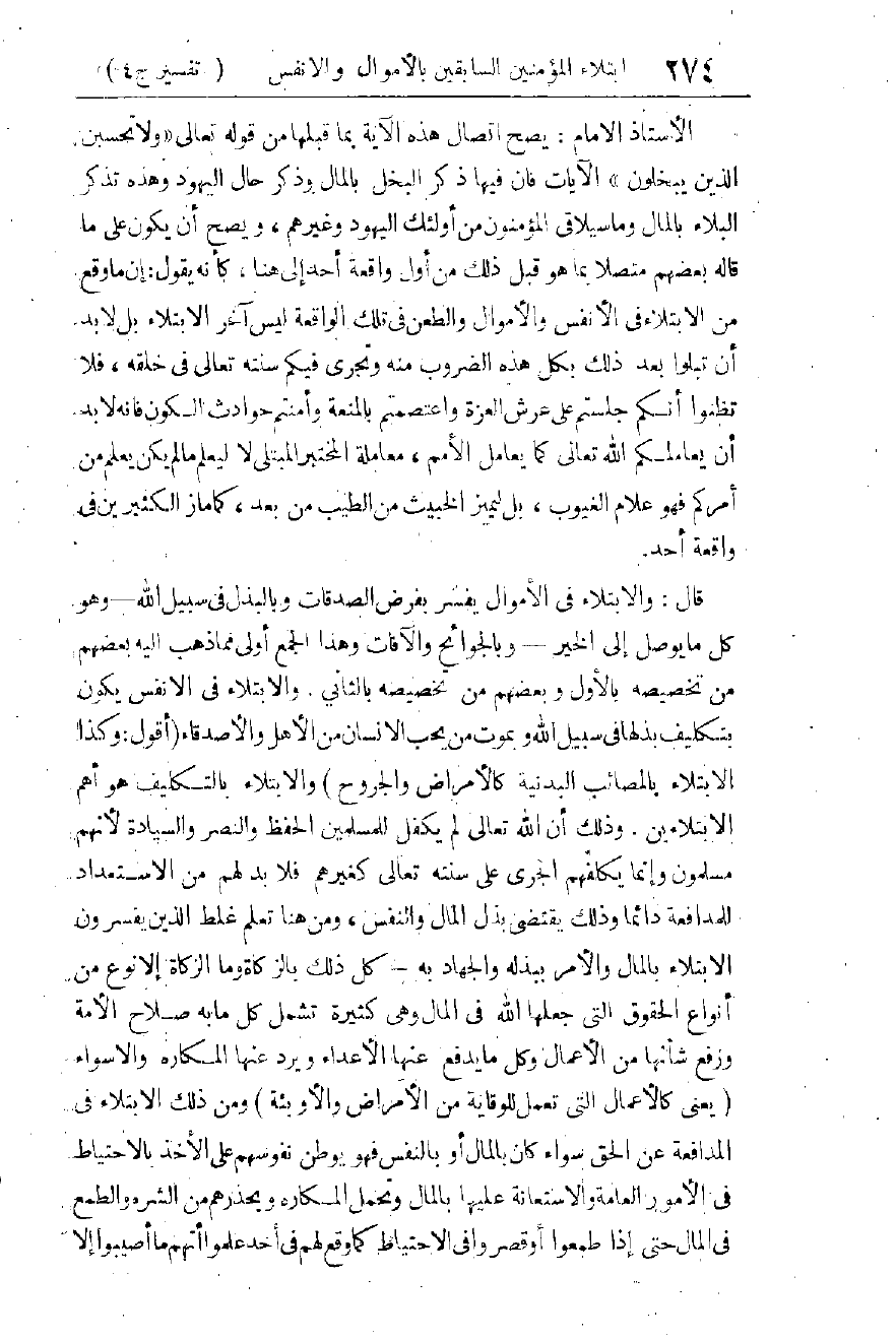 تَسَاءَلُونَ بِهِ كَمَا تَقَدَّمَ. وَأُجِيبَ عَنِ الثَّانِي بِأَنَّ الْحَلِفَ بِغَيْرِ اللهِ لَيْسَ مَمْنُوعًا مُطْلَقًا، وَإِنَّمَا يُمْنَعُ الْحَلِفُ الَّذِي يُعْتَقَدُ وُجُوبُ الْبِرِّ بِهِ لَا مَا قُصِدَ بِهِ مَحْضُ التَّأْكِيدِ عَلَى طَرِيقَةِ الْعَرَبِ فِي التَّأْكِيدِ بِصِيغَةِ الْقَسَمِ كَالتَّأْكِيدِ بِأَنَّ، وَأَقُولُ: إِنَّ هَذَا الْجَوَابَ مَبْنِيٌّ عَلَى كَوْنِ التَّسَاؤُلِ بِالْأَرْحَامِ هُوَ قَسَمًا بِهَا، وَهُوَ خَطَأٌ، فَإِنَّ السُّؤَالَ بِاللهِ غَيْرُ الْقَسَمِ بِاللهِ، وَالسُّؤَالَ بِالرَّحِمِ غَيْرُ الْحَلِفِ بِهَا. وَقَدْ أَوْضَحَ هَذَا الْفَرْقَ شَيْخُ الْإِسْلَامِ ابْنُ تَيْمِيَةَ فِي الْقَاعِدَةِ الَّتِي حَرَّرَ فِيهَا مَسْأَلَةَ التَّوَسُّلِ وَالْوَسِيلَةِ، فَقَالَ، وَأَجَادَ، وَحَقَّقَ كَعَادَتِهِ جَزَاهُ اللهُ عَنْ دِينِهِ، وَنَفْسِهِ خَيْرَ الْجَزَاءِ مَا نَصُّهُ: " وَأَمَّا السُّؤَالُ بِالْمَخْلُوقِ إِذَا كَانَتْ فِيهِ بَاءُ السَّبَبِ (فَهِيَ) لَيْسَتْ بَاءَ الْقَسَمِ، وَبَيْنَهُمَا فَرْقٌ، فَإِنَّ النَّبِيَّ - صَلَّى اللَّهُ عَلَيْهِ وَسَلَّمَ - أَمَرَ بِإِبْرَارِ الْقَسَمِ، وَثَبَتَ عَنْهُ فِي الصَّحِيحَيْنِ أَنَّهُ قَالَ: إِنَّ مِنْ عِبَادِ اللهِ مَنْ لَوْ أَقْسَمَ عَلَى اللهِ لَأَبَرَّهُ قَالَ ذَلِكَ لَمَّا قَالَ أَنَسُ بْنُ النَّضْرِ: أَتُكْسَرُ ثَنِيَّةُ الرُّبَيِّعِ؟ : لَا وَالَّذِي بَعَثَكَ بِالْحَقِّ لَا تُكْسَرُ ثَنِيَّتُهَا. فَقَالَ: يَا أَنَسُ، كِتَابُ اللهِ الْقِصَاصُ فَرَضِيَ الْقَوْمُ وَعَفَوْا، فَقَالَ - صَلَّى اللَّهُ عَلَيْهِ وَسَلَّمَ -: إِنَّ مِنْ عِبَادِ اللهِ مَنْ لَوْ أَقْسَمَ عَلَى اللهِ لِأَبَرَّهُ وَقَالَ: رُبَّ أَشْعَثَ أَغْبَرَ مَدْفُوعٍ بِالْأَبْوَابِ لَوْ أَقْسَمَ عَلَى اللهِ لَأَبَرَّهُ رَوَاهُ مُسْلِمٌ، وَغَيْرُهُ، وَقَالَ: " أَلَا أُخْبِرُكُمْ بِأَهْلِ الْجَنَّةِ، كُلُّ ضَعِيفٍ مُتَضَعِّفٍ لَوْ أَقْسَمَ عَلَى اللهِ لَأَبَرَّهُ، أَلَا أُخْبِرُكُمْ بِأَهْلِ النَّارِ، كُلُّ جَوَّاظٍ زَنِيمٍ مُتَكَبِّرٍ "، وَهَذَا فِي الصَّحِيحَيْنِ وَكَذَلِكَ (حَدِيثُ) أَنَسِ بْنِ النَّضْرِ، وَالْآخَرُ مِنْ أَفْرَادِ مُسْلِمٍ. . .
