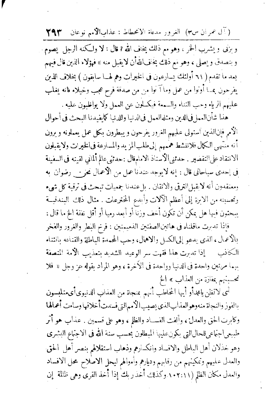قَالَ - تَعَالَى -: وَإِنْ خِفْتُمْ أَلَّا تُقْسِطُوا فِي الْيَتَامَى فَانْكِحُوا مَا طَابَ لَكُمْ مِنَ النِّسَاءِ مَثْنَى وَثُلَاثَ وَرُبَاعَ فَإِنْ خِفْتُمْ أَلَّا تَعْدِلُوا فَوَاحِدَةً أَوْ مَا مَلَكَتْ أَيْمَانُكُمْ ذَلِكَ أَدْنَى أَلَّا تَعُولُوا فَأَنْتَ تَرَى أَنَّ الْكَلَامَ كَانَ فِي حُقُوقِ الْأَيْتَامِ، وَلَمَّا كَانَ فِي النَّاسِ مَنْ يَتَزَوَّجُ بِالْيَتِيمَةِ الْغَنِيَّةِ لِيَتَمَتَّعَ بِمَالِهَا، وَيَهْضِمَ حُقُوقَهَا لِضَعْفِهَا حَذَّرَ اللهُ مِنْ ذَلِكَ، وَقَالَ مَا مَعْنَاهُ: إِنَّ النِّسَاءَ أَمَامَكُمْ كَثِيرَاتٌ، فَإِذَا لَمْ تَثِقُوا مِنْ أَنْفُسِكُمْ بِالْقِسْطِ فِي الْيَتَامَى إِذَا تَزَوَّجْتُمْ بِهِنَّ فَعَلَيْكُمْ بِغَيْرِهِنَّ، فَذَكَرَ مَسْأَلَةَ التَّعَدُّدِ بِشَرْطِهَا ضِمْنًا لَا اسْتِقْلَالًا (عَلَى أَحَدِ الْأَوْجُهِ) ، وَالْإِفْرِنْجُ يَظُنُّونَ أَنَّهَا مَسْأَلَةً مِنْ مُهِمَّاتِ الدِّينِ فِي الْإِسْلَامِ. ثُمَّ قَالَ: إِنْ خِفْتُمْ أَلَّا تَعْدِلُوا فَوَاحِدَةً وَلَمْ يَكْتَفِ بِذَلِكَ حَتَّى قَالَ: ذَلِكَ أَدْنَى أَلَّا تَعُولُوا أَيْ إِنَّ الِاكْتِفَاءَ بِوَاحِدَةٍ أَدْنَى، وَأَقْرَبُ لِعَدَمِ الْعَوْلِ، وَهُوَ الْجَوْرُ، وَالْمَيْلُ إِلَى أَحَدِ الْجَانِبَيْنِ دُونَ الْآخَرِ، مِنْ " عَالَ الْمِيزَانُ إِذَا مَالَ "، وَهُوَ الْأَرْجَحُ فِي تَفْسِيرِ الْكَلِمَةِ، فَأَكَّدَ أَمْرَ الْعَدْلِ، وَجَعَلَ مُجَرَّدَ تَوَقُّعِ الْإِنْسَانِ عَدَمَ الْعَدْلِ مِنْ نَفْسِهِ كَافٍ فِي الْمَنْعِ مِنَ التَّعَدُّدِ. وَلَا يَكَادُ يُوجَدُ أَحَدٌ يَتَزَوَّجُ بِثَانِيَةٍ لِغَيْرِ حَاجَةٍ، وَغَرَضٍ صَحِيحٍ يَأْمَنُ الْجَوْرَ ; لِذَلِكَ كَانَ لَنَا أَنْ نَحْكُمَ بِأَنَّ الذَّوَّاقِينَ الَّذِينَ يَتَزَوَّجُونَ كَثِيرًا لِمُجَرَّدِ التَّنَقُّلِ فِي التَّمَتُّعِ يُوَطِّنُونَ أَنْفُسَهُمْ