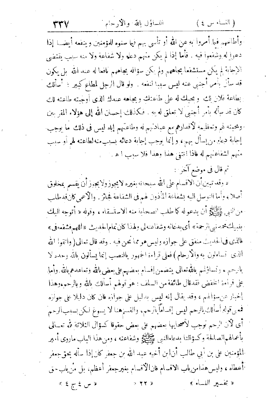 " فَإِنْ قِيلَ الْوِرَاثَةُ فِي وِرَاثَةِ الْعِلْمِ مَجَازٌ وَفِي وِرَاثَةِ الْمَالِ حَقِيقَةٌ وَصَرْفُ اللَّفْظِ عَنِ الْحَقِيقَةِ إِلَى الْمَجَازِ لَا يَجُوزُ بِلَا ضَرُورَةٍ، فَمَا الضَّرُورَةُ هُنَا؟ أُجِيبُ بِأَنَّ الضَّرُورَةَ هُنَا حِفْظُ كَلَامِ الْمَعْصُومِ مِنَ التَّكْذِيبِ، وَأَيْضًا لَا نُسَلِّمُ كَوْنَ الْوِرَاثَةِ حَقِيقَةً فِي الْمَالِ فَقَطْ بَلْ صَارَ لِغَلَبَةِ الِاسْتِعْمَالِ فِي الْعُرْفِ مُخْتَصًّا بِالْمَالِ، وَفِي أَصْلِ الْوَضْعِ إِطْلَاقُهُ عَلَى وِرَاثَةِ الْعِلْمِ، وَالْمَالِ، وَالْمَنْصِبِ صَحِيحٌ. وَهَذَا الْإِطْلَاقُ هُوَ حَقِيقَتُهُ اللُّغَوِيَّةُ، سَلَّمْنَا أَنَّهُ مَجَازٌ، وَلَكِنَّ هَذَا الْمَجَازَ مُتَعَارَفٌ، وَمَشْهُورٌ بِحَيْثُ يُسَاوِي الْحَقِيقَةَ خُصُوصًا فِي اسْتِعْمَالِ الْقُرْآنِ الْمَجِيدِ، وَمِنْ ذَلِكَ قَوْلُهُ - تَعَالَى -: ثُمَّ أَوْرَثْنَا الْكِتَابَ [35: 32] وَأُورِثُوا الْكِتَابَ [42: 14] إِلَى غَيْرِ مَا آيَةٍ ".