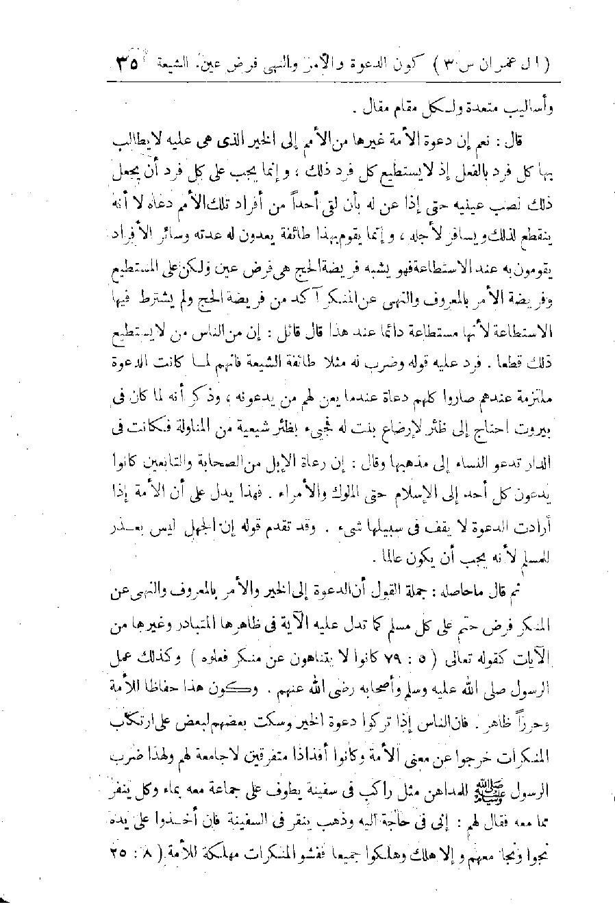 (9) الْعِلْمُ بِلُغَاتِ الْأُمَمِ الَّتِي تُرَادُ دَعْوَتُهَا، وَقَدْ وَرَدَ فِي صَحِيحِ الْبُخَارِيِّ: أَنَّ النَّبِيَّ - صَلَّى اللَّهُ عَلَيْهِ وَسَلَّمَ - أَمَرَ بَعْضَ الصَّحَابَةِ بِتَعَلُّمِ اللُّغَةِ الْعِبْرَانِيَّةِ لِأَجْلِ الْيَهُودِ الَّذِينَ كَانُوا مُجَاوِرِينَ لَهُ عَلَى أَنَّهُمْ كَانُوا قَدِ اسْتَعْرَبُوا، فَمَا كَانَتْ مَعْرِفَةُ لُغَتِهِمُ الْأَصْلِيَّةِ إِلَّا مَزِيدَ كَمَالٍ فِي الْفَهْمِ عَنْهُمْ وَمَعْرِفَةَ حَقِيقَةِ شَأْنِهِمْ. وَلَا يُقَالُ: إِنَّ الْأُمَّةَ الَّتِي تُؤَلِّفُ لِلدَّعْوَةِ إِلَى الْإِسْلَامِ يُمْكِنُهَا أَنْ تَسْتَغْنِيَ عَنْ تَعَلُّمِ لُغَاتِ الْأُمَمِ بِالْمُتَرْجِمِينَ مِنْ غَيْرِ الْمُسْلِمِينَ، فَإِنَّهَا إِنْ ظَفِرَتْ بِالْمُتَرْجِمِ الْأَجْنَبِيِّ الْأَمِينِ لَا يَتَيَسَّرُ لَهَا أَنْ تُفْهِمَهُ مِنْ حَقِيقَةِ الدِّينِ عِنْدَ التَّرْجَمَةِ مَا يَفْهَمُهُ الْعَالِمُ الْمُسْلِمُ، وَإِنَّمَا يُلْجَأُ إِلَى مَثَلِ ذَلِكَ عِنْدَ الضَّرُورَةِ. أَمَّا إِذَا أَمْكَنَ تَأْلِيفُ جَمْعِيَّةٍ لِلدَّعْوَةِ فَالْوَاجِبُ أَنْ يَكُونَ فِيهَا مِنَ الْمُسْلِمِينَ الْعَارِفِينَ بِاللُّغَاتِ مَنْ يَكْفِيهَا الْحَاجَةَ إِلَى تَرْجَمَةِ الْأَجْنَبِيِّ كَمَا تَفْعَلُ جَمْعِيَّاتُ الدَّعْوَةِ إِلَى النَّصْرَانِيَّةِ فَإِنَّ أَفْرَادًا مِنْهَا يَتَعَلَّمُونَ لُغَاتِ جَمِيعِ الْأُمَمِ. وَلَمْ يُبَيِّنِ الْأُسْتَاذُ الْإِمَامُ هَذَا فِي الدَّرْسِ ; لِأَنَّهُ لَمْ يَتَصَدَّ إِلَى بَيَانِ كُلِّ مَا يَتَوَقَّفُ عَلَيْهِ الْعَمَلُ فِي تَعْمِيمِهِ وَكَمَالِهِ، وَإِنَّمَا ذَكَرَ مَا ذَكَرَهُ عَلَى سَبِيلِ الْمِثَالِ لِتَنْبِيهِ الْأَذْهَانِ وَالتَّرْغِيبِ فِيمَا يَتَيَسَّرُ لِأَهْلِ الْأَزْهَرِ فِي هَذَا الزَّمَانِ، وَلَوْ شَرَحَ فِي هَذَا الْمَقَامِ فَوَائِدَ تَعَلُّمِ اللُّغَاتِ الْأَجْنَبِيَّةِ وَتَوَقُّفِ مَا يَجِبُ مِنَ الدَّعْوَةِ إِلَى الْإِسْلَامِ عَلَيْهَا لَقَامَ أَعْدَاءُ الْإِصْلَاحِ وَخَاذِلُو الدِّينِ الْقَاعِدُونَ لَهُ كُلَّ مَرْصَدٍ يَصِيحُونَ فِي الْجَرَائِدِ وَالْمَحَافِلِ بِأَنَّ الشَّيْخَ الْمُفْتِي يُرِيدُ أَنْ يَهْدِمَ الدِّينَ فِي الْأَزْهَرِ بِحَثِّ طُلَّابِهِ عَلَى تَعَلُّمِ اللُّغَاتِ الْأَجْنَبِيَّةِ كَمَا فَعَلُوا مِثْلَ ذَلِكَ عِنْدَ حَثِّهِ إِيَّاهُمْ عَلَى تَعَلُّمِ التَّارِيخِ وَتَقْوِيمِ الْبُلْدَانِ وَبَعْضِ الْفُنُونِ الرِّيَاضِيَّةِ، وَإِنَّ صِيَاحَهُمْ فِي مَسْأَلَةِ اللُّغَاتِ يَكُونُ أَوْضَحَ شُبْهَةً عِنْدَ الْجُمْهُورِ الْجَاهِلِ، وَلَيْسَ هَذَا الْبَحْثُ بِأَجْنَبِيٍّ عَنِ التَّفْسِيرِ، بَلْ هُوَ أَوْلَى مِنْ مَبَاحِثِ الرَّازِيِّ فِي عُلُومِ الْيُونَانِ وَتَوَسُّعِ غَيْرِهِ فِي الْإِسْرَائِيلِيَّاتِ أَوِ اللُّغَوِيَّاتِ ; لِأَنَّ قَصْدَنَا مِنَ التَّفْسِيرِ بَيَانُ مَعْنَى الْقُرْآنِ وَطُرُقِ الِاهْتِدَاءِ بِهِ فِي هَذَا الزَّمَانِ، وَلَنْ نَكُونَ مُهْتَدِينَ بِهِ حَتَّى تَكُونَ مِنَّا أُمَّةٌ تَدْعُو إِلَى الْخَيْرِ وَتَأْمُرُ بِالْمَعْرُوفِ وَتَنْهَى عَنِ الْمُنْكَرِ مِنَ الطُّرُقِ الَّتِي يُرْجَى نَفْعُهَا وَذَلِكَ يَتَوَقَّفُ عَلَى مَا ذَكَرْنَاهُ. فَوَجَبَ عَلَيْنَا أَنْ نُبَيِّنَ خَطَأَ مَنْ يَصُدُّ عَنْهُ.