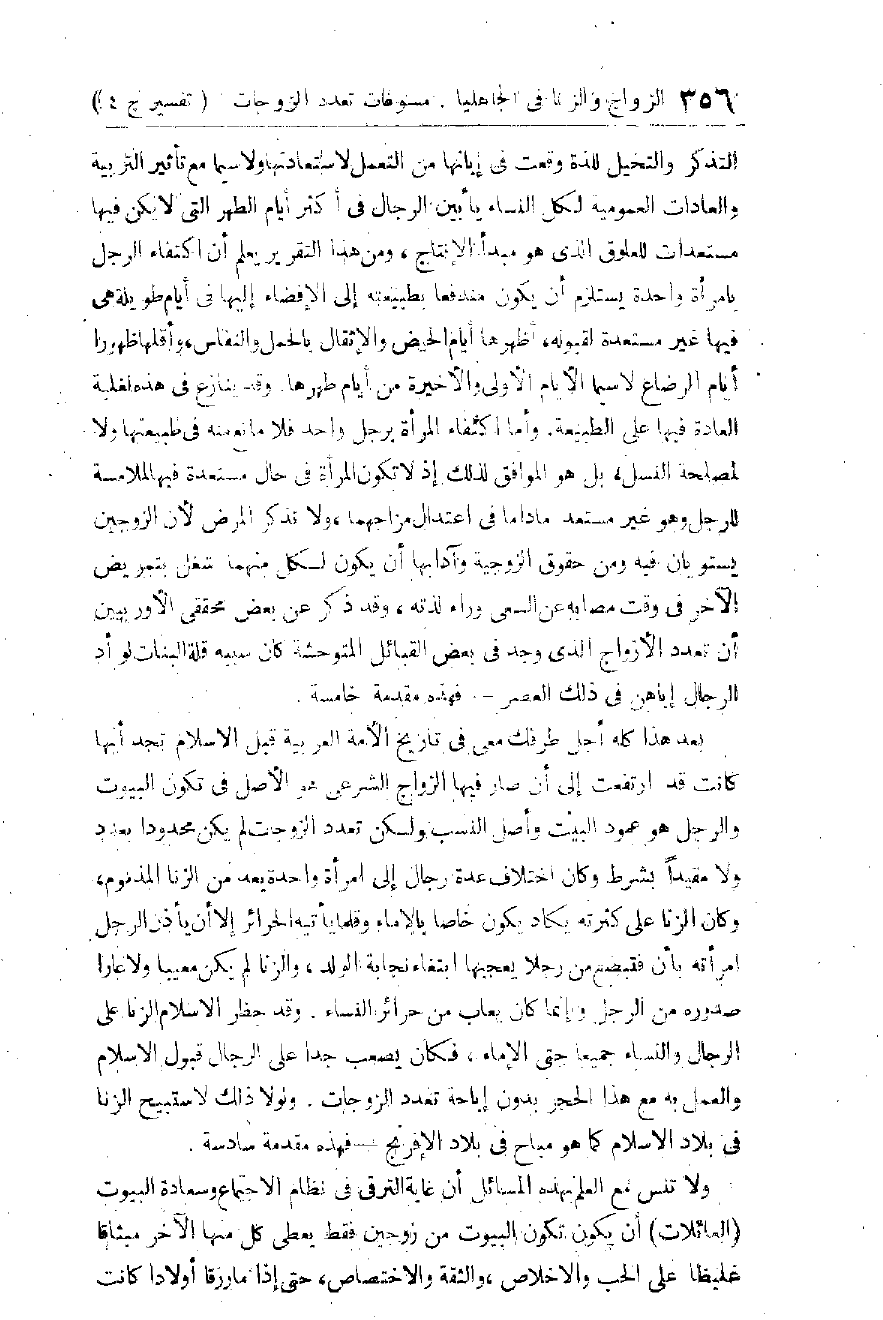 وَحُكْمِ مَا يَحْرُمُ مِنْهُنَّ فِي النِّكَاحِ. وَقَدْ أَحْسَنَ الْبِقَاعِيُّ فِي تَوْجِيهِ الِاهْتِمَامِ بِتَقْدِيمِ ذِكْرِ النِّسَاءِ هُنَا بِعِلَاقَتِهِ بِالْإِرْثِ عَلَى رَأْيِ الْجُمْهُورِ فِي تَفْسِيرِ الْفَاحِشَةِ بِالزِّنَا الَّذِي يَقْضِي إِلَى تَوْرِيثِ وَلَدِ الزِّنَا، وَلَكِنَّنَا لَا نُسَلِّمُ لَهُ أَنَّ الْفَسَادَ فِي النِّسَاءِ أَكْثَرُ مِنْهُ فِي الرِّجَالِ بَلِ الرِّجَالُ أَكْثَرُ جُرْأَةً عَلَى الْفَوَاحِشِ وَإِتْيَانًا لَهَا، وَلَوْ أَمْكَنَ إِحْصَاءُ الزُّنَاةِ، وَالزَّوَانِي لَعَرَفَ ذَلِكَ كُلُّ أَحَدٍ.