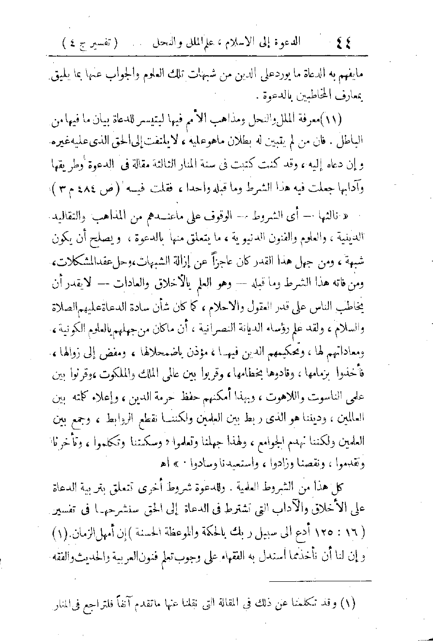 هُمُ الظَّالِمُونَ [2: 254] فِي أَوَائِلِ الْجُزْءِ الثَّالِثِ. فَمِنْ عُرْفِهِ أَنَّ الْمُتَفَرِّقِينَ فِي الدِّينِ يُعَدُّونَ مِنَ الْكُفَّارِ وَالْمُشْرِكِينَ كَمَا قَالَ: وَلَا تَكُونُوا مِنَ الْمُشْرِكِينَ مِنَ الَّذِينَ فَرَّقُوا دِينَهُمْ وَكَانُوا شِيَعًا كُلُّ حِزْبٍ بِمَا لَدَيْهِمْ فَرِحُونَ [30: 31، 32] وَقَالَ - عَزَّ وَجَلَّ - لِنَبِيِّهِ - صَلَّى اللَّهُ عَلَيْهِ وَسَلَّمَ -: إِنَّ الَّذِينَ فَرَّقُوا دِينَهُمْ وَكَانُوا شِيَعًا لَسْتَ مِنْهُمْ فِي شَيْءٍ [6: 159] فَمَنْ تَذَكَّرَ هَذَا لَا يَتَوَقَّفُ فِي فَهْمِ الْآيَةِ الَّتِي نُفَسِّرُهَا، وَلَا يُجِيزُ لِنَفْسِهِ صَرْفَهَا عَنْ ظَاهِرِهَا لِأَجْلِ مُطَابَقَةِ عُرْفِ الْفُقَهَاءِ الَّذِينَ تَرْجِعُ مَسَائِلُ الْكُفْرِ بَعْدَ الْإِيمَانِ عِنْدَهُمْ إِلَى جَحْدِ الْمُجْمَعِ عَلَيْهِ الْمَعْلُومِ مِنَ الدِّينِ بِالضَّرُورَةِ وَفِي مَعْنَاهُ كُلُّ مَا اعْتَقَدَ الْمُكَلَّفُ أَنَّهُ مِنَ الدِّينِ ثُمَّ كَذَّبَهُ، وَلَكِنَّ الْقُرْآنَ يَعُدُّ الْخُرُوجَ مِنْ مَقَاصِدِ الدِّينِ الْحَقِيقِيَّةِ بِالْعَمَلِ مِنَ الْكُفْرِ، وَقَدْ فَهِمَ السَّلَفُ الصَّالِحُ مِنَ الْكِتَابِ وَالسُّنَّةِ أَنَّ الْإِيمَانَ اعْتِقَادٌ وَقَوْلٌ وَعَمَلٌ وَلَهُ شُعَبٌ كَثِيرَةٌ مِنْ أَعْظَمِهَا تَحَرِّي الْعَدْلِ وَاجْتِنَابِ الظُّلْمِ (مَثَلًا) فَمَنِ اسْتَرْسَلَ فِي الظُّلْمِ حَتَّى صَارَ صِفَةً لَهُ كَانَ كَافِرًا كَمَا قَالَ - تَعَالَى -: وَالْكَافِرُونَ هُمُ الظَّالِمُونَ [2: 254] فَإِذَا كَانَ الظَّالِمُونَ كَافِرِينَ فِي عُرْفِهِ فَكَيْفَ لَا يَكُونُ الْمُتَفَرِّقُونَ الْمُخْتَلِفُونَ كَافِرِينَ، وَالِاعْتِصَامُ بِالْوَحْدَةِ وَتَرْكُ التَّفَرُّقِ وَالِاخْتِلَافِ مِنْ أَعْظَمِ شُعَبِهِ، بَلْ ذَلِكَ هُوَ أَسَاسُهُ الَّذِي لَا يَثْبُتُ بِنَاؤُهُ إِلَّا عَلَيْهِ ; وَلِذَلِكَ وَرَدَتْ هَذِهِ الْآيَاتُ الَّتِي نَحْنُ بِصَدَدِ تَفْسِيرِهَا عَقِبَ قَوْلِهِ: وَلَا تَمُوتُنَّ إِلَّا وَأَنْتُمْ مُسْلِمُونَ فَإِنَّ مَا قَرَّرْتُهُ مِنْ وُجُوبِ الِاعْتِصَامِ وَالنَّهْيِ عَنِ التَّفَرُّقِ أَوَّلًا وَآخِرًا، وَإِنَاطَةِ الدَّعْوَةِ وَالْأَمْرِ بِالْمَعْرُوفِ وَالنَّهْيِ عَنِ الْمُنْكَرِ بِأُمَّةٍ قَوِيَّةٍ مُتَّحِدَةٍ هُوَ بَيَانُ السَّبِيلِ الَّتِي يَجِبُ عَلَيْنَا سُلُوكُهَا لِنَمُوتَ مُسْلِمِينَ.