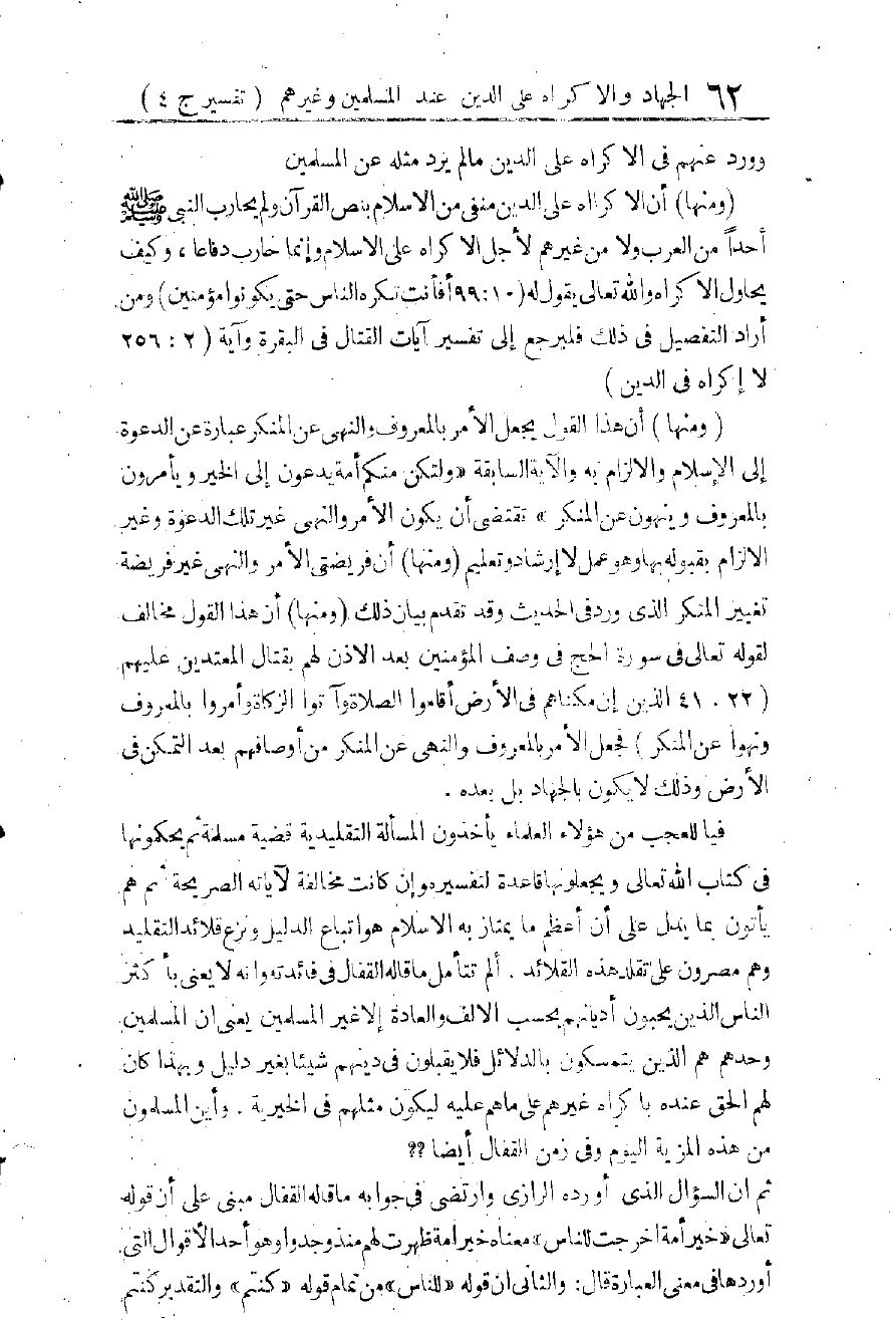 وَقَدْ فَسَّرَ (الْجَلَالُ) كَغَيْرِهِ (تُغْنِيَ) بِتَدْفَعَ، أَيْ لَا تَدْفَعُ شَيْئًا مِنَ الْعَذَابِ عَنْهُمْ، وَإِنَّمَا هُوَ مِنَ الْغَنَاءِ بِمَعْنَى الْكِفَايَةِ، وَلِذَلِكَ رَدَّ هَذَا الْقَوْلَ الْأُسْتَاذُ الْإِمَامُ وَاخْتَارَ أَنَّ (شَيْئًا) هُوَ مَفْعُولٌ مُطْلَقٌ قَالَ: أَيْ لَا تُغْنِي عَنْهُمْ نَوْعًا مِنْ أَنْوَاعِ الْغَنَاءِ، أَوْ لَا تُغْنِي غَنَاءً مَا، قَالَ: وَذَكَرَ الْأَمْوَالَ وَالْأَوْلَادَ لِأَنَّ الْمَغْرُورَ إِنَّمَا يَصُدُّهُ عَنِ اتِّبَاعِ الْحَقِّ أَوِ النَّظَرِ فِي دَلِيلِهِ الِاسْتِغْنَاءُ بِمَا هُوَ فِيهِ مِنَ النِّعَمِ وَأَعْظَمُهَا الْأَمْوَالُ وَالْأَوْلَادُ، فَالَّذِي يَرَى نَفْسَهُ مُسْتَغْنِيًا بِمِثْلِ ذَلِكَ قَلَّمَا يُوَجِّهُ نَظَرَهُ إِلَى طَلَبِ الْحَقِّ أَوْ يُصْغِي إِلَى الدَّاعِي إِلَيْهِ: أَيْ وَمَنْ لَمْ يُوَجِّهْ نَظَرَهُ إِلَى الْحَقِّ لَا يُبْصِرُهُ، وَمَنْ لَمْ يُبْصِرْهُ تَخَبَّطَ فِي دَيَاجِيرِ الضَّلَالِ عُمْرَهُ حَتَّى يَتَرَدَّى فَيَهْلِكَ الْهَلَاكَ الْأَبَدِيَّ، وَلَا يَنْفَعُهُ فِي الْآخِرَةِ مَالُهُ فَيَفْتَدِي بِهِ أَوْ يَنْتَفِعُ بِمَا كَانَ أَنْفَقَهُ مِنْهُ وَلِذَلِكَ قَالَ: وَأُولَئِكَ أَصْحَابُ النَّارِ هُمْ فِيهَا خَالِدُونَ لِأَنَّ طَبِيعَةَ أَرْوَاحِهِمُ اقْتَضَتْ أَنْ يَكُونُوا فِي تِلْكَ الْهَاوِيَةِ الْمُظْلِمَةِ الْمُسْتَعِرَةِ، ثُمَّ مَثَّلَ حَالَهُمْ فِي إِنْفَاقِ أَمْوَالِهِمُ الَّتِي فَتَنَتْهُمْ فَشَغَلَتْهُمْ عَنِ الْحَقِّ أَوْ أَغْرَتْهُمْ بِمُقَاوَمَتِهِ فَقَالَ: مَثَلُ مَا يُنْفِقُونَ فِي هَذِهِ الْحَيَاةِ الدُّنْيَا كَمَثَلِ رِيحٍ فِيهَا صِرٌّ أَصَابَتْ حَرْثَ قَوْمٍ ظَلَمُوا أَنْفُسَهُمْ فَأَهْلَكَتْهُ قَالَ (الرَّاغِبُ) : مَثَلُ الشَّيْءِ - بِالتَّحْرِيكِ: مِثْلُهُ وَشِبْهُهُ، وَيُطْلَقُ عَلَى صِفَةِ الشَّيْءِ، وَالْمَثَلُ فِي الْكَلَامِ: عِبَارَةٌ عَنْ قَوْلٍ فِي شَيْءٍ يُشْبِهُ قَوْلًا فِي