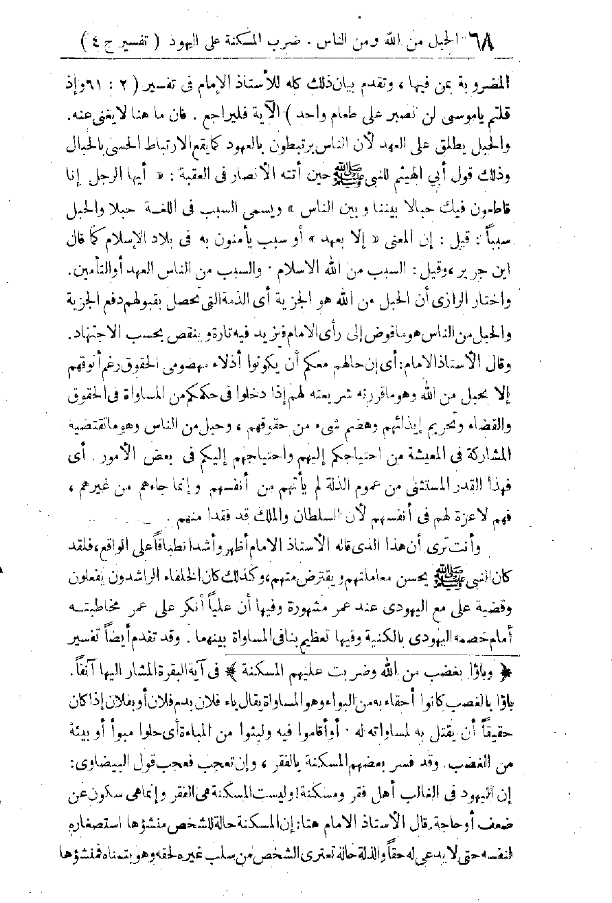 وَأَنْتَ تَرَى أَنَّ هَذِهِ الصِّفَاتِ الَّتِي وُصِفَ بِهَا مَنْ نُهِيَ عَنِ اتِّخَاذِهِمْ بِطَانَةً لَوْ فُرِضَ أَنِ اتَّصَفَ بِهَا مَنْ هُوَ مُوَافِقُ ذَلِكَ فِي الدِّينِ وَالْجِنْسِ وَالنَّسَبِ لَمَا جَازَ لَكَ أَنْ تَتَّخِذَهُ بِطَانَةً لَكَ إِنْ كُنْتَ تَعْقِلُ، فَمَا أَعْدَلَ هَذَا الْقُرْآنَ الْحَكِيمَ وَمَا أَعْلَى هَدْيَهُ وَأَسْمَى إِرْشَادَهُ! لَقَدْ خَفِيَ عَلَى بَعْضِ النَّاسِ هَذِهِ التَّعْلِيلَاتُ وَالْقُيُودُ فَظَنُّوا أَنَّ النَّهْيَ عَنِ الْمُخَالِفِ فِي الدِّينِ مُطْلَقًا، وَلَوْ جَاءَ هَذَا النَّهْيُ مُطْلَقًا لَمَا كَانَ أَمْرًا غَرِيبًا، وَنَحْنُ نَعْلَمُ أَنَّ الْكَافِرِينَ كَانُوا إِلْبًا عَلَى الْمُؤْمِنِينَ فِي أَوَّلِ ظُهُورِ الْإِسْلَامِ إِذْ نَزَلَتْ هَذِهِ الْآيَاتُ وَلَا سِيَّمَا الْيَهُودُ الَّذِينَ نَزَلَتْ فِيهِمْ عَلَى رَأْيِ الْمُحَقِّقِينَ، وَلَكِنَّ الْآيَاتِ جَاءَتْ مُقَيَّدَةً بِتِلْكَ الْقُيُودِ لِأَنَّ اللهَ - تَعَالَى - وَهُوَ مُنَزِّلُهَا - يَعْلَمُ مَا يَعْتَرِي الْأُمَمَ وَأَهْلَ الْمِلَلِ مِنَ التَّغَيُّرِ فِي الْمُوَالَاةِ وَالْمُعَادَاةِ كَمَا وَقَعَ مِنْ هَؤُلَاءِ الْيَهُودِ فَإِنَّهُمْ بَعْدَ أَنْ كَانُوا أَشَدَّ النَّاسِ عَدَاوَةً لِلَّذِينَ آمَنُوا فِي أَوَّلِ ظُهُورِ الْإِسْلَامِ قَدِ انْقَلَبُوا فَصَارُوا عَوْنًا لِلْمُسْلِمِينَ فِي بَعْضِ فُتُوحَاتِهِمْ (كَفَتْحِ الْأَنْدَلُسِ) وَكَذَلِكَ كَانَ الْقِبْطُ عَوْنًا لِلْمُسْلِمِينَ عَلَى الرُّومِ فِي مِصْرَ فَكَيْفَ يَجْعَلُ عَالِمُ الْغَيْبِ وَالشَّهَادَةِ الْحُكْمَ عَلَى هَؤُلَاءِ وَاحِدًا فِي كُلِّ زَمَانٍ وَمَكَانٍ أَبَدَ الْأَبِيدِ؟ أَلَا إِنَّ هَذَا مِمَّا تَنْبِذُهُ الدِّرَايَةُ. وَلَا تَرْوِي غُلَّتَهُ الرِّوَايَةُ، فَإِنَّ أَرْجَحَ التَّفْسِيرِ الْمَأْثُورِ يُؤَيِّدُ مَا قُلْنَاهُ.