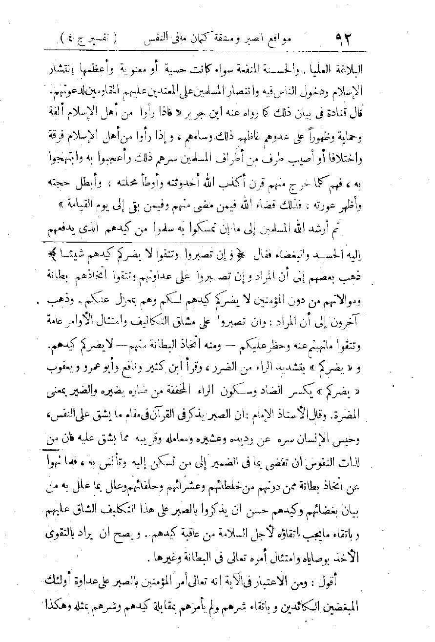 وَلَا عَلَى أَنَّهُمْ لَمْ يُمَدُّوا بِهِمْ، وَقَدْ يَجُوزُ أَنْ يَكُونَ اللهُ أَمَدَّهُمْ عَلَى نَحْوِ مَا رَوَاهُ الَّذِينَ أَثْبَتُوا أَنَّ اللهَ أَمَدَّهُمْ، وَقَدْ يَجُوزُ أَنْ يَكُونَ اللهُ لَمْ يُمِدَّهُمْ عَلَى نَحْوِ الَّذِي ذَكَرَهُ مَنْ أَنْكَرَ ذَلِكَ وَلَا خَبَرَ عِنْدَنَا صَحَّ مِنَ الْوَجْهِ الَّذِي يُثْبِتُ أَنَّهُمْ أُمِدُّوا بِالثَّلَاثَةِ الْآلَافِ وَلَا بِالْخَمْسَةِ الْآلَافِ وَغَيْرُ جَائِزٍ أَنْ يُقَالَ فِي ذَلِكَ قَوْلٌ إِلَّا بِخَبَرٍ تَقُومُ الْحُجَّةُ بِهِ، وَلَا خَبَرَ بِهِ فَنُسَلِّمُ لِأَحَدِ الْفَرِيقَيْنِ قَوْلَهُ، غَيْرَ أَنَّ فِي الْقُرْآنِ دَلَالَةً عَلَى أَنَّهُمْ قَدْ أُمِدُّوا يَوْمَ بَدْرٍ بِأَلْفٍ مِنَ الْمَلَائِكَةِ وَذَلِكَ قَوْلُهُ: إِذْ تَسْتَغِيثُونَ رَبَّكُمْ فَاسْتَجَابَ لَكُمْ أَنِّي مُمِدُّكُمْ بِأَلْفٍ مِنَ الْمَلَائِكَةِ مُرْدَفِينَ [8: 9] أَمَّا فِي أُحُدٍ فَالدَّلَالَةُ عَلَى أَنَّهُمْ لَمْ يُمَدُّوا أَبْيَنُ مِنْهَا فِي أَنَّهُمْ أُمِدُّوا، وَذَلِكَ أَنَّهُمْ لَوْ أُمِدُّوا لَمْ يُهْزَمُوا وَيُنَلْ مِنْهُمْ مَا نِيلَ مِنْهُمْ " اهـ.