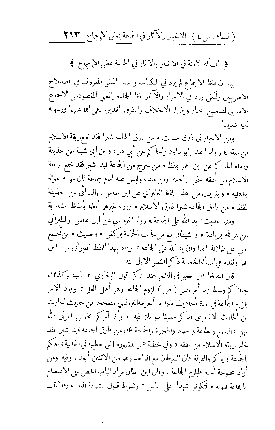 قَدْ تَرَكَهَا الْمُسْلِمُونَ مِنْ قُرُونٍ طَوِيلَةٍ، وَلَوْ وُجِدَتْ فِي الْأَرْضِ حُكُومَةٌ إِسْلَامِيَّةٌ تُقِيمُ الْقُرْآنَ وَتُحَوِّطُ الدِّينَ وَأَهْلَهُ بِمَا أَوْجَبَهُ مِنْ إِعْدَادِ كُلِّ مَا يُسْتَطَاعُ مِنْ قُوَّةٍ وَاسْتِعْدَادٍ لِلْحَرْبِ حَتَّى تَكُونَ أَقْوَى دَوْلَةٍ حَرْبِيَّةٍ ثُمَّ إِنَّهَا مَعَ ذَلِكَ تَتَجَنَّبُ الِاعْتِدَاءَ فَلَا تَبْدَأُ غَيْرُهَا بِقِتَالٍ بِمَحْضِ الظُّلْمِ وَالْعُدْوَانِ، بَلْ تَقِفُ عِنْدَ تِلْكَ الْحُدُودِ الْعَادِلَةِ فِي الْهُجُومِ وَالدِّفَاعِ، لَوْ وُجِدَتْ هَذِهِ الْحُكُومَةُ لَاتَّخَذَهَا أَهْلُ الْمَدَنِيَّةِ الصَّحِيحَةِ قُدْوَةً صَالِحَةً لَهُمْ، وَلَكِنْ صَارَ بَعْضُ الْأُمَمِ الَّتِي لَا تَدِينُ بِالْقُرْآنِ أَقْرَبَ إِلَى أَحْكَامِهِ فِي ذَلِكَ مِمَّنْ يَدَّعُونَ اتِّبَاعَهُ،