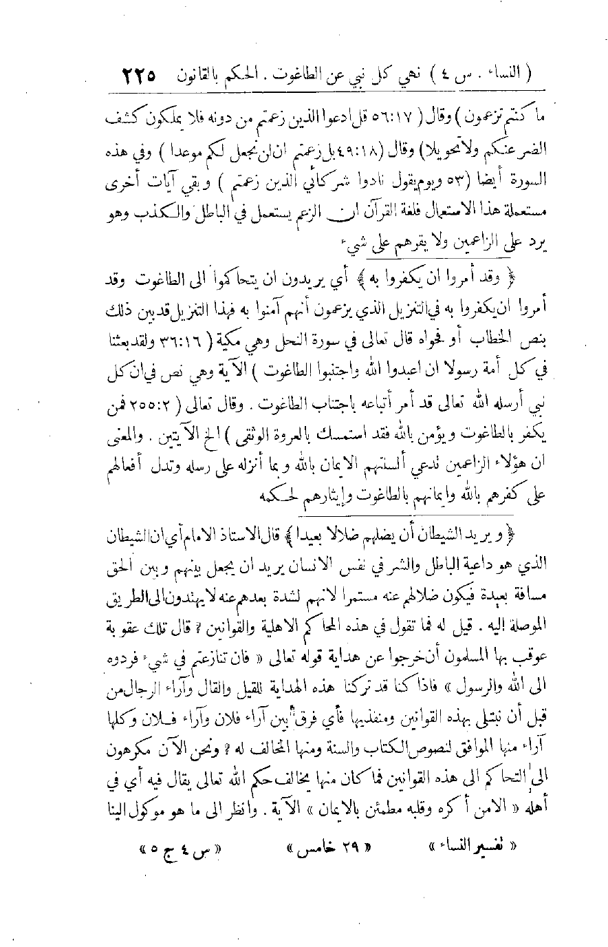 وَيُؤْخَذُ مِنْ هَذَا أَنَّ الْمُؤْمِنَ الْمُوَحِّدَ يَكُونُ أَعَزَّ النَّاسِ نَفْسًا، وَأَعْظَمَهُمْ كَرَامَةً، وَأَنَّهُ لَا يَقْبَلُ أَنْ يَسْتَبِدَّ فِيهِ حَاكِمٌ، وَلَا أَنْ يَسْتَعْبِدَهُ سُلْطَانٌ ظَالِمٌ، وَمَا قَوَى الِاسْتِبْدَادُ فِي الْمُسْلِمِينَ إِلَّا بِضَعْفِ التَّوْحِيدِ فِيهِمْ، فَالتَّوْحِيدُ هُوَ مُنْتَهَى مَا تَصِلُ إِلَيْهِ النُّفُوسُ الْبَشَرِيَّةُ مِنَ الِارْتِقَاءِ وَالْكَمَالِ، فَصَاحِبُ التَّوْحِيدِ الْخَالِصِ يَعْلَمُ عِلْمَ الْيَقِينِ أَنَّ كُلَّ شَيْءٍ فِي هَذِهِ الْأَرْضِ وَفِي تِلْكَ السَّمَاوَاتِ الْعُلَى هُوَ خَاضِعٌ وَمَقْهُورٌ لِلنَّوَامِيسِ وَالسُّنَنِ الْعَامَّةِ الَّتِي قَامَ بِهَا النِّظَامُ الْعَامُّ، وَأَنَّ تَفَاوُتَهَا فِي الصِّفَاتِ وَالْخَوَاصِّ لَا يَقْتَضِي أَنْ يَرْفَعَ الْأَقْوَى فِي صِفَةٍ مَا عَلَى الْأَضْعَفِ رَفْعَ الْإِلَهِ