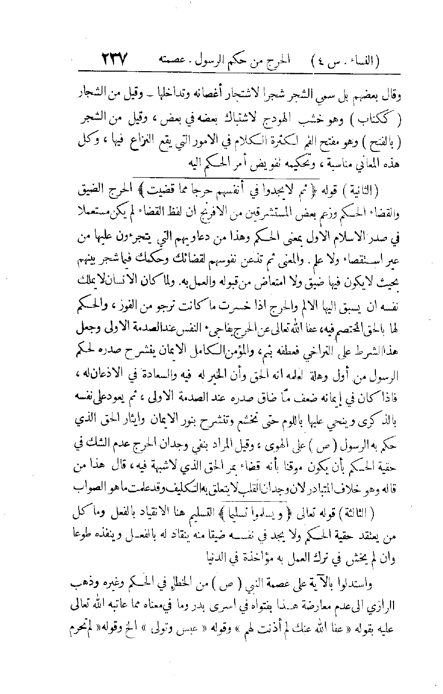" وَفِي ذَلِكَ مَعْنًى ثَالِثٌ: هُوَ أَنَّ عَجِيبَ نَظْمِهِ وَبَدِيعَ تَأْلِيفِهِ لَا يَتَفَاوَتُ وَلَا يَتَبَايَنُ عَلَى مَا يَتَصَرَّفُ إِلَيْهِ مِنَ الْوُجُوهِ الَّتِي يَتَصَرَّفُ فِيهَا مِنْ ذِكْرِ قَصَصٍ وَمَوَاعِظَ، وَاحْتِجَاجٍ وَحِكَمٍ وَأَحْكَامٍ، وَإِعْذَارٍ وَإِنْذَارٍ، وَوَعْدٍ وَوَعِيدٍ، وَتَبْشِيرٍ وَتَخْوِيفٍ، وَأَوْصَافٍ وَتَعْلِيمٍ، وَأَخْلَاقٍ كَرِيمَةٍ، وَشِيَمٍ رَفِيعَةٍ، وَسِيَرٍ مَأْثُورَةٍ، وَغَيْرِ ذَلِكَ مِنَ الْوُجُوهِ الَّتِي يَشْتَمِلُ عَلَيْهَا، وَنَجِدُ كَلَامَ الْبَلِيغِ الْكَامِلِ، وَالشَّاعِرِ الْمُلَفِّقِ، وَالْخَطِيبِ الْمِصْقَعِ يَخْتَلِفُ عَلَى حَسَبِ اخْتِلَافِ هَذِهِ الْأُمُورِ، فَمِنَ الشُّعَرَاءِ مَنْ يَجُودُ فِي الْمَدْحِ دُونَ الْهَجْوِ، وَمِنْهُمْ مَنْ يَبْرُزُ فِي الْهَجْوِ دُونَ الْمَدْحِ، وَمِنْهُمْ مَنْ يَسْبِقُ فِي التَّقْرِيظِ دُونَ التَّأْبِينِ، وَمِنْهُمْ مَنْ يَجُودُ فِي التَّأْبِينِ دُونَ التَّقْرِيظِ، وَمِنْهُمْ مَنْ يُغْرِبُ فِي وَصْفِ الْإِبِلِ وَالْخَيْلِ، أَوْ سَيْرِ اللَّيْلِ، أَوْ وَصْفِ الْحَرْبِ، أَوْ وَصْفِ الرَّوْضِ، أَوْ وَصْفِ الْخَمْرِ، أَوِ الْغَزَلِ، أَوْ غَيْرِ ذَلِكَ مِمَّا يَشْتَمِلُ عَلَيْهِ الشِّعْرُ وَيَتَدَاوَلُهُ الْكَلَامُ، وَلِذَلِكَ ضُرِبَ الْمَثَلُ بِامْرِئِ الْقَيْسِ إِذَا رَكِبَ، وَالنَّابِغَةِ إِذَا رَهِبَ، وَبِزُهَيْرٍ إِذَا رَغِبَ، وَمِثْلُ ذَلِكَ يَخْتَلِفُ فِي الْخُطَبِ وَالرَّسَائِلِ وَسَائِرِ أَجْنَاسِ الْكَلَامِ، وَمَتَى تَأَمَّلْتَ شِعْرَ الشَّاعِرِ الْبَلِيغِ رَأَيْتَ التَّفَاوُتَ فِي شِعْرِهِ عَلَى حَسَبِ الْأَحْوَالِ الَّتِي يَتَصَرَّفُ فِيهَا، فَيَأْتِي بِالْغَايَةِ فِي الْبَرَاعَةِ فِي مَعْنًى فَإِذَا جَاءَ إِلَى غَيْرِهِ قَصَّرَ عَنْهُ، وَوَقَفَ دُونَهُ، وَبَانَ الِاخْتِلَافُ عَلَى شِعْرِهِ، وَلِذَلِكَ ضُرِبَ الْمَثَلُ بِالَّذِينِ سَمَّيْتُهُمْ ; لِأَنَّهُ لَا خِلَافَ فِي تَقَدُّمِهِمْ فِي صَنْعَةِ الشِّعْرِ، وَلَا شَكَّ فِي تَبْرِيزِهِمُ فِي مَذْهَبِ النَّظْمِ، فَإِذَا كَانَ الِاخْتِلَالُ بَيِّنًا فِي شِعْرِهِمْ لِاخْتِلَافِ مَا يَتَصَرَّفُونَ فِيهِ اسْتَغْنَيْنَا عَنْ ذِكْرِ مَنْ هُوَ دُونَهُمْ، وَكَذَلِكَ عَنْ تَفْصِيلِ نَحْوِ هَذَا فِي الْخُطَبِ وَالرَّسَائِلِ وَنَحْوِهَا.