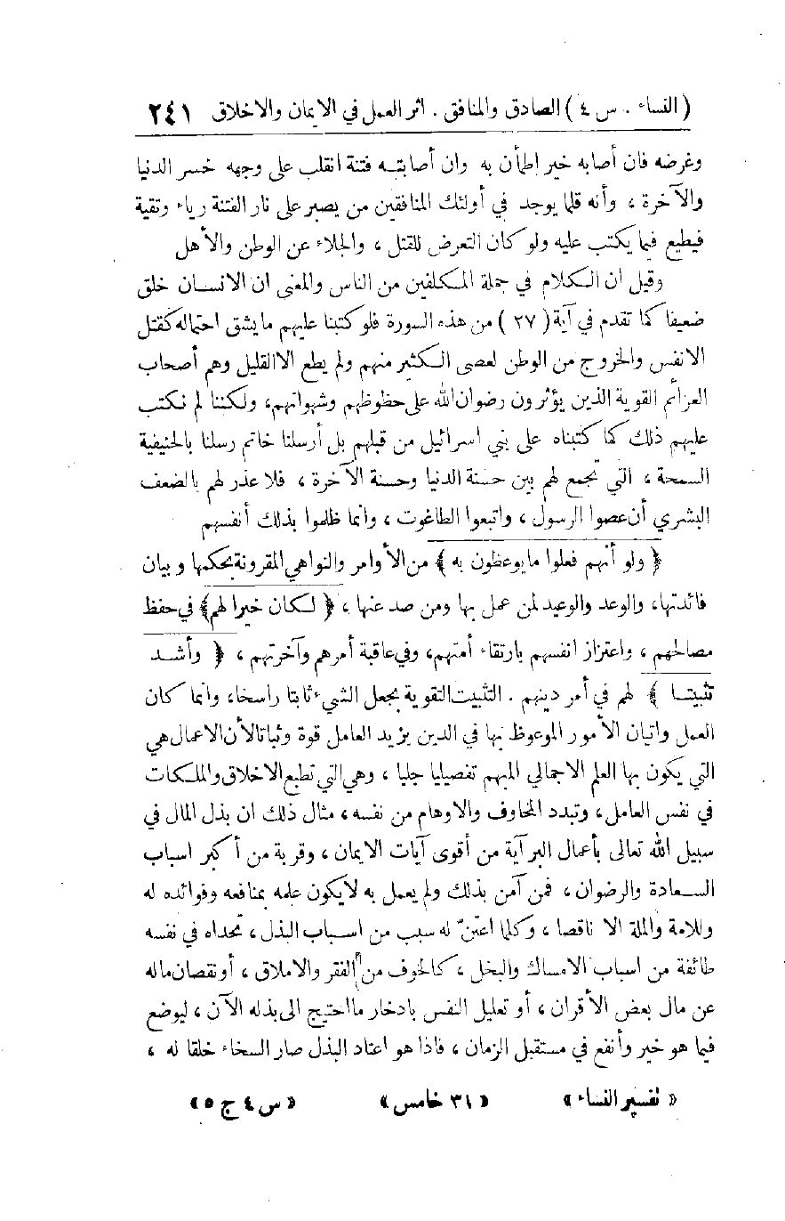 وَبِالِاسْتِدْلَالِ بِهِ، فَلَا يَمْلِكُ أَحَدٌ مِنْ خَلْقِهِ أَنْ يُحَرِّمَ عَلَيْنَا مَا أَوْجَبَهُ، الْأَئِمَّةُ الْمُجْتَهِدُونَ أَجْمَعُوا عَلَى وُجُوبِ الِاهْتِدَاءِ بِالْقُرْآنِ وَعَلَى الْمَنْعِ مِنَ التَّقْلِيدِ الَّذِي يَصُدُّ عَنْهُ وَيَقْتَضِي هَجْرَهُ، وَلَمْ يَجْعَلُوا أَنْفُسَهُمْ شَارِعِينِ يُطَاعُونَ، وَإِنَّمَا كَانُوا أَدِلَّاءَ لِلنَّاسِ لَعَلَّهُمْ يَهْتَدُونَ، مَا قَالَ بِوُجُوبِ التَّقْلِيدِ وَتَحْرِيمِ الِاسْتِقْلَالِ إِلَّا بَعْضَ الْمُقَلِّدِينَ الَّذِينَ يَعْتَرِفُونَ بِأَنَّهُمْ لَيْسَ لَهُمْ قَوْلٌ يُتَّبَعُ وَلَا أَمْرٌ يُطَاعُ، وَكَانَ ذَلِكَ دَسِيسَةً مِنَ الْمُلُوكِ وَالْأُمَرَاءِ الْمُسْتَبِدِّينَ، لِيُذَلِّلُوا النَّاسَ وَيَسْتَعْبِدُوهُمْ بِاسْمِ الدِّينِ، وَكَذَلِكَ كَانَ، وَقَدْ عَلِمْتَ أَنَّ قَبُولَ الِاسْتِبْدَادِ وَاتِّبَاعَ الْقُرْآنِ ضِدَّانِ لَا يَجْتَمِعَانِ، وَمَا نَبَغَ عَالِمٌ مِنَ الْعُلَمَاءِ الَّذِينَ نَشَئُوا عَلَى التَّقْلِيدِ إِلَّا وَحَارَبَهُ بَعْدَ نُبُوغِهِ، كَالْإِمَامِ الرَّازِيِّ الَّذِي نَقَلْنَا