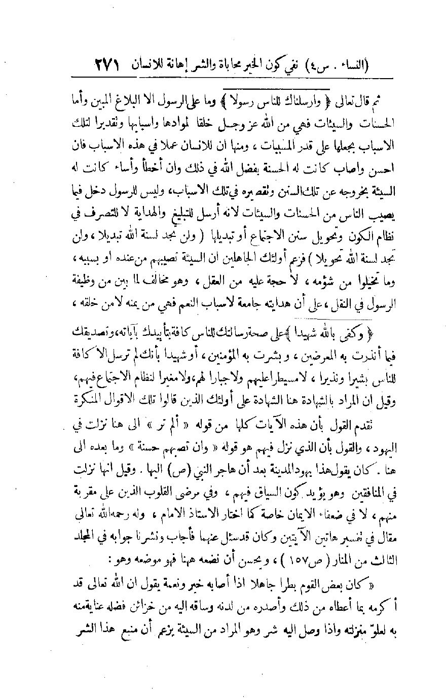 ثُمَّ قَالَ: وَدِيَةٌ مُسَلَّمَةٌ إِلَى أَهْلِهِ، أَيْ وَعَلَيْهِ مِنَ الْجَزَاءِ مَعَ عِتْقِ الرَّقَبَةِ دِيَةٌ يَدْفَعُهَا إِلَى أَهْلِ الْمَقْتُولِ، فَالْكَفَّارَةُ حَقُّ اللهِ، وَالدِّيَةُ مَا يُعْطَى إِلَى وَرَثَةِ الْمَقْتُولِ عِوَضًا عَنْ دَمِهِ أَوْ عَنْ حَقِّهِمْ فِيهِ، وَهِيَ مَصْدَرُ وَدَى الْقَتِيلَ يَدِيَهُ وَدْيًا وَدِيَةً - كَعِدَةٍ وَزِنَةٍ مِنَ الْوَعْدِ وَالْوَزْنِ - وَيُعَرِّفُهَا الْفُقَهَاءُ بِأَنَّهَا الْمَالُ الْوَاجِبُ بِالْجِنَايَةِ عَلَى الْحُرِّ فِي نَفْسٍ أَوْ فِيمَا دُونَهَا، وَقَدْ أَطْلَقَ الْكِتَابُ الدِّيَةَ وَذَكَرَهَا نَكِرَةً فَظَاهِرُ ذَلِكَ أَنَّهُ يُجْزِئُ مِنْهَا مَا يُرْضِي أَهْلَ الْمَقْتُولِ وَهُمْ وَرَثَتُهُ قَلَّ أَوْ كَثُرَ، وَلَكِنَّ السُّنَّةَ بَيَّنَتْ ذَلِكَ وَحَدَّدَتْهُ عَلَى الْوَجْهِ الَّذِي كَانَ مَعْرُوفًا مَقْبُولًا عِنْدَ الْعَرَبِ، وَأَجْمَعَ الْفُقَهَاءُ عَلَى أَنَّ دِيَةَ الْحُرِّ الْمُسْلِمِ الذَّكَرِ الْمَعْصُومِ - أَيِ الْمَعْصُومِ دَمُهُ بِعَدَمِ مَا يُوجِبُ إِهْدَارَهُ - مِائَةُ بَعِيرٍ مُخْتَلِفَةٍ فِي السِّنِّ وَتَفْصِيلُهَا فِي كُتُبِ الْفِقْهِ، وَقَالُوا: يَجُوزُ