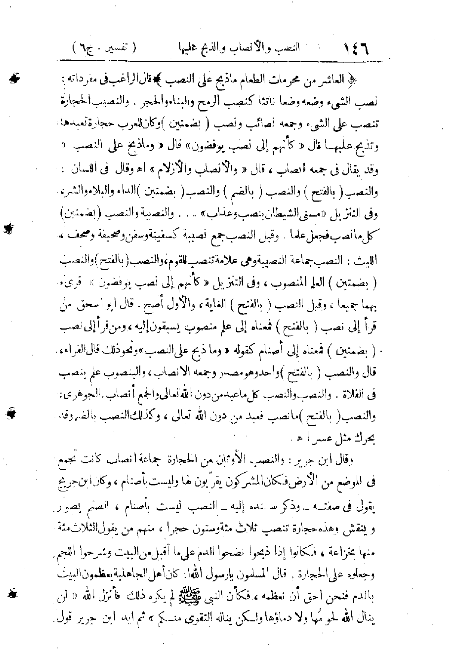 وَنَحْوِهِ أَخْذًا مِنْ حَدِيثِ عَدِيِّ بْنِ حَاتِمٍ إِذَا أَرْسَلْتَ كَلْبَكَ وَسَمَّيْتَ، فَأَخَذَ فَقَتَلَ فَكُلْ وَفِي رِوَايَةٍ: فَإِنْ وَجَدْتَ مَعَ كَلْبِكَ كَلْبًا غَيْرَهُ، وَقَدْ قَتَلَ فَلَا تَأْكُلْ ; فَإِنَّكَ لَا تَدْرِي أَيُّهُمَا قَتَلَهُ وَفِي رِوَايَةٍ: فَإِنَّمَا سَمَّيْتَ عَلَى كَلْبِكَ وَلَمْ تُسَمِّ عَلَى غَيْرِهِ، وَقَدْ يُقَالُ: إِنَّ هَذَا لَمْ يَرِدْ فِي تَفْسِيرِ الْآيَةِ، فَهُوَ حُكْمٌ قَدْ ثَبَتَ بِالسُّنَّةِ عَلَى رَأْيِ مَنْ يَقُولُ: إِنَّ الْأَحْكَامَ تَثْبُتُ بِهَا، وَإِنْ لَمْ يَكُنْ لَهَا أَصْلٌ فِي الْكِتَابِ، أَوْ هُوَ مَأْخُوذٌ مِنْ آيَةٍ أُخْرَى كَظَاهِرِ: وَلَا تَأْكُلُوا مِمَّا لَمْ يُذْكَرِ اسْمُ اللهِ عَلَيْهِ وَإِنَّهُ لِفِسْقٌ (6: 121) أَوْ يُقَالُ: إِنَّ التَّسْمِيَةَ عِنْدَ إِرْسَالِ الْكَلْبِ سُنَّةٌ.