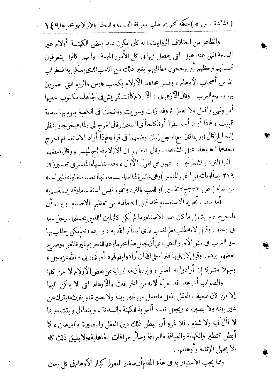 أَنَّهُ لَا وَجْهَ لِهَذِهِ الْمَسْأَلَةِ وَلَا مَحَلَّ ; فَاللهُ - تَعَالَى - قَدْ أَحَلَّ أَكْلَ طَعَامِ أَهْلِ الْكِتَابِ، وَنِكَاحَ نِسَائِهِمْ عَلَى الْحَالِ الَّتِي كَانُوا عَلَيْهَا فِي زَمَنِ التَّنْزِيلِ، وَكَانَ هَذَا مِنْ آخِرِ مَا نَزَلَ مِنَ الْقُرْآنِ ; وَكَانَ أَهْلُ الْكِتَابِ مِنْ شُعُوبٍ شَتَّى، وَقَدْ وَصَفَهُمْ بِأَنَّهُمْ حَرَّفُوا كُتُبَهُمْ، وَنَسُوا حَظًّا مِمَّا ذُكِّرُوا بِهِ، فِي هَذِهِ السُّورَةِ نَفْسِهَا، كَمَا وَصَفَهُمْ بِمِثْلِ ذَلِكَ فِيمَا نَزَلَ قَبْلَهَا، وَلَمْ يَتَغَيَّرْ يَوْمَ اسْتَنْبَطَ الْفُقَهَاءُ تِلْكَ الْمَسْأَلَةَ شَيْءٌ مِنْ ذَلِكَ، وَقَدْ تَقَدَّمَ فِي تَفْسِيرِ قَوْلِهِ تَعَالَى: لَا إِكْرَاهَ فِي الدِّينِ (2: 256) أَنَّ سَبَبَ نُزُولِهَا مُحَاوَلَةُ بَعْضِ الْأَنْصَارِ إِكْرَاهَ أَوْلَادٍ لَهُمْ كَانُوا تَهَوَّدُوا، عَلَى الرُّجُوعِ إِلَى الْإِسْلَامِ، فَلَمَّا نَزَلَتْ أَمَرَهُمُ النَّبِيُّ - صَلَّى اللَّهُ عَلَيْهِ وَسَلَّمَ - بِتَخْيِيرِهِمْ، وَلَا شَكَّ أَنَّهُ كَانَ فِي يَهُودِ الْمَدِينَةِ وَغَيْرِهِمْ كَثِيرٌ مِنَ الْعَرَبِ الْخُلَّصِ، وَلَمْ يُفَرِّقِ النَّبِيُّ - صَلَّى اللَّهُ عَلَيْهِ وَسَلَّمَ - وَلَا الْخُلَفَاءُ الرَّاشِدُونَ بَيْنَهُمْ فِي حُكْمٍ مِنَ الْأَحْكَامِ.