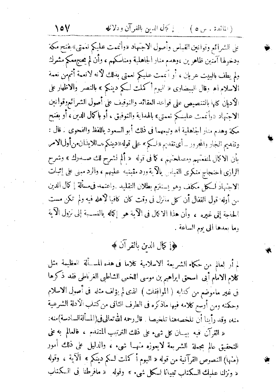 وَعَلَى هَذَا لَا يَكُونُ قَوْلُهُ تَعَالَى: وَلَا تَنْكِحُوا الْمُشْرِكَاتِ حَتَّى يُؤْمِنَّ (2: 221) نَصًّا قَاطِعًا فِي تَحْرِيمِ نِكَاحِ الصِّينِيَّاتِ الَّذِي أَكْثَرَ مِنْهُ الْمُسْلِمُونَ فِي الصِّينِ، وَانْتَقَلَ الِاقْتِدَاءُ بِهِمْ فِيهِ إِلَى جَاوَهْ أَوْ كَادَ، وَقَدْ كَانَ ذَلِكَ مِنْ أَسْبَابِ انْتِشَارِ الْإِسْلَامِ فِي الصِّينِ، وَلَا أَدْرِي مَبْلَغَ أَثَرِهِ فِي ذَلِكَ عِنْدَكُمْ (الْخِطَابُ لِلْمُسْتَفْتِي) وَبِنَفْيِ كَوْنِهِ نَصًّا قَاطِعًا فِي ذَلِكَ لَا يَكُونُ اسْتِحْلَالُهُ كُفْرًا وَخُرُوجًا مِنَ الْإِسْلَامِ، وَإِلَّا لَسَاغَ لَنَا أَنْ نَحْكُمَ بِكُفْرِ مَنْ لَا يُحْصَى مِنْ مُسْلِمِي الصِّينِ.