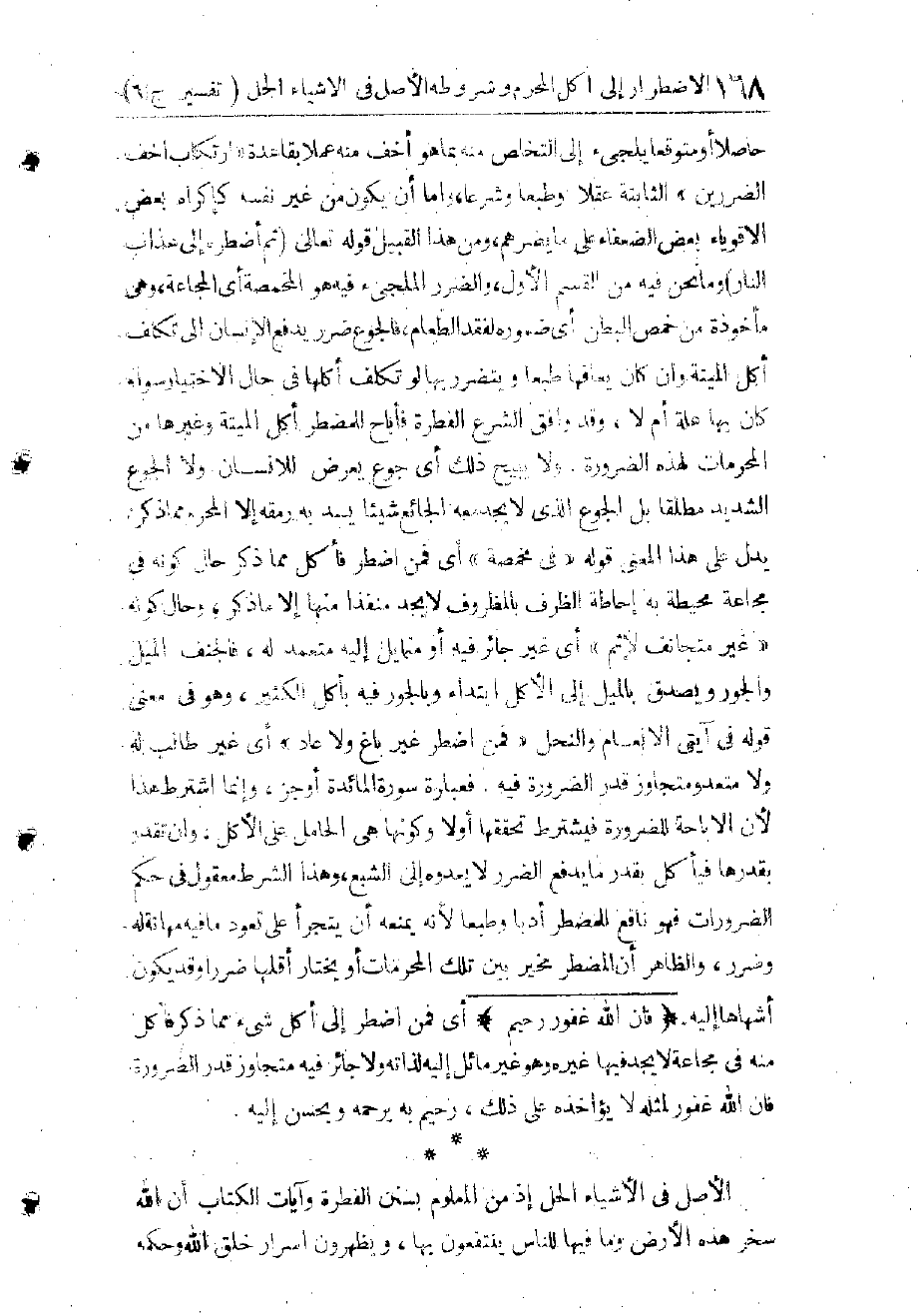 دُونَ الْوَطْءِ فِي الْحِلِّ وَالْحُرْمَةِ. انْتَهَى. وَفِيمَا قَالَهُ الْقَاضِي نَوْعٌ مِنَ التَّقْيِيدِ وَالتَّشْدِيدِ، إِذِ اعْتَبَرَ فِي طَعَامِهِمْ مَا يَأْكُلُهُ أَحْبَارُهُمْ وَرُهْبَانُهُمْ، وَهَذَا مَا اعْتَمَدَهُ الْأُسْتَاذُ الْإِمَامُ الشَّيْخُ مُحَمَّدٌ عَبْدُهُ مُفْتِي مِصْرَ، فِي فَتْوَاهُ التِّرِنْسِفَالِيَّةِ.