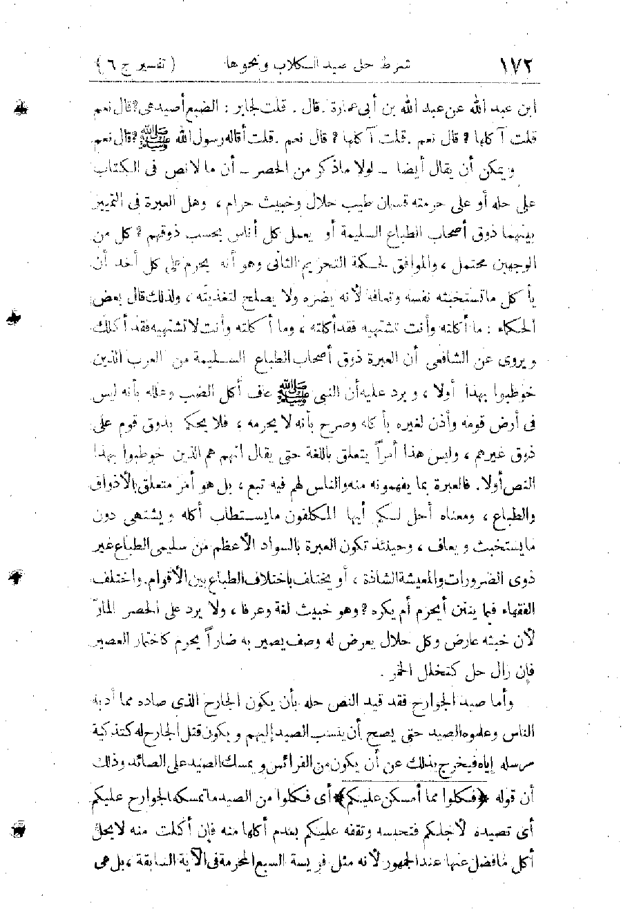 وَقَالَ فِي شَرْحِ اللُّمَعِ عِنْدَ قَوْلِ الْمُصَنِّفِ: وَأَمَّا مَنْ يُذْكِي فَمَنِ اجْتَمَعَتْ فِيهِ أَرْبَعَةُ شُرُوطٍ: أَنْ يَكُونَ مُسْلِمًا أَوْ كِتَابِيًّا. . . إِلَخْ. وَاعْلَمْ أَنَّ الْمُؤَلِّفَ قَدْ أَطْلَقَ الْكَلَامَ عَلَى صِحَّةِ ذَكَاةِ الْكِتَابِيِّ، وَلَا بُدَّ مِنَ التَّفْصِيلِ فِي ذَلِكَ لِيَصِيرَ كَلَامُهُ مُوَافِقًا لِلْمَشْهُورِ مِنَ الْمَذْهَبِ، وَتَلْخِيصُ الْقَوْلِ فِي ذَلِكَ أَنَّ الْكَافِرَ إِنَّ كَانَ غَيْرَ كِتَابِيٍّ لَمْ تَصِحَّ ذَكَاتُهُ، وَإِنْ كَانَ كِتَابِيًّا كَالْيَهُودِيِّ وَالنَّصْرَانِيِّ، سَوَاءٌ كَانَ بَالِغًا أَوْ مُمَيِّزًا، ذَكَرًا أَوْ أُنْثَى، ذِمِّيًّا كَانَ أَوْ حَرْبِيًّا، فَإِنْ كَانَ مَا ذَكَّاهُ مِمَّا يَسْتَحِلُّ أَكْلَهُ فَذَكَاتُهُ لَهُ صَحِيحَةٌ وَيَجُوزُ لَنَا الْأَكْلُ مِنْهَا، وَإِنْ كَانَ مَالِكٌ قَدْ كَرِهَ الشِّرَاءَ مِنْ ذَبَائِحِهِمْ، وَالْأَصْلُ فِي ذَلِكَ أَنَّ اللهَ - تَعَالَى - قَدْ أَبَاحَ لَنَا أَكْلَ طَعَامِهِمْ، وَمِنْ جُمْلَةِ طَعَامِهِمْ مَا يُذَكُّونَهُ، وَإِنْ كَانَ مَا ذَكَّاهُ مِمَّا لَا يَسْتَحِلُّهُ، بَلْ مِمَّا يَقُولُ: إِنَّهُ حَرَامٌ عَلَيْهِ: فَإِنْ ثَبَتَ تَحْرِيمُهُ عَلَيْهِ بِنَصِّ شَرِيعَتِنَا كَذِي الظُّفْرِ فِي قَوْلِهِ تَعَالَى: وَعَلَى الَّذِينَ هَادَوْا حَرَّمْنَا كُلَّ ذِي ظُفْرٍ (6: 146) فَالْمَشْهُورُ عَدَمُ جَوَازِ أَكْلِهِ، وَقِيلَ: يَجُوزُ، وَقِيلَ: يُكْرَهُ وَإِنْ لَمْ يَثْبُتْ تَحْرِيمُهُ عَلَيْهِمْ بِشَرْعِنَا، بَلْ لَمْ يُعْرَفْ ذَلِكَ إِلَّا مِنْ قَوْلِهِمْ ; كَالَّتِي يُسَمُّونَهَا بِالطَّرِيقَةِ -