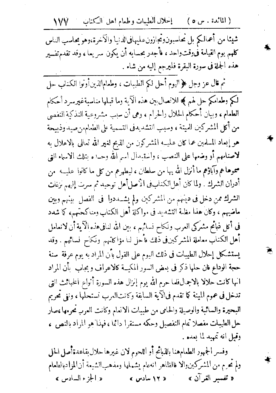 ثُمَّ قَالَ (فِي ص 537) مِنْهُ: " وَإِذَا ذَبَحَ الْكِتَابِيُّ مَا يَحْرُمُ عَلَيْهِ ; كَذِي الظُّفْرِ - أَيْ عِنْدَ الْيَهُودِ - لَمْ يَحْرُمْ عَلَيْنَا، وَإِنْ ذَبَحَ حَيَوَانًا غَيْرَهُ لَمْ تَحْرُمْ عَلَيْنَا الشُّحُومُ الْمُحَرَّمَةُ عَلَيْهِمْ، وَهُوَ شَحْمُ الثَّرْبِ، أَيِ الْكِرْشِ وَالْكُلْيَتَيْنِ، فِي ظَاهِرِ كَلَامِ أَحْمَدَ، رَحِمَهُ اللهُ، وَاخْتَارَهُ ابْنُ حَامِدٍ وَحَكَاهُ عَنِ الْخَرَقِيِّ فِي كَلَامٍ مُفْرَدٍ، وَاخْتَارَ أَبُو الْحَسَنِ التَّمِيمِيُّ وَالْقَاضِي تَحْرِيمَهُ، وَإِنْ ذَبَحَ لِعِيدِهِ أَوْ لِيَتَقَرَّبَ بِهِ إِلَى شَيْءٍ مَا يُعَظِّمُونَهُ، لَمْ يَحْرُمْ. نَصَّ عَلَيْهِ " انْتَهَى، أَيْ نَصَّ عَلَيْهِ الْإِمَامُ أَحْمَدُ وَهُوَ الْمَذْهَبُ، وَإِنْ رُوِيَ عَنْهُ التَّحْرِيمُ، وَهُوَ مُوَافِقٌ فِيهِ لِمَذْهَبِ مَالِكٍ، رَحِمَهُمُ اللهُ تَعَالَى.