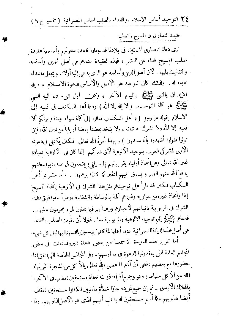 وَلَا نَرُدُّ عَلَيْهِمْ أَيْضًا بِأَنَّ إِثْبَاتَ الْخَطِيئَةِ عَلَى نَبِيِّنَا - صَلَّى اللَّهُ عَلَيْهِ وَسَلَّمَ - مُتَعَذِّرٌ عَلَيْهِمْ، وَأَنَّهُ لَا يَنْفَعُهُمْ فِي هَذَا الْمَقَامِ الْمُشَاغَبَةُ بِمِثْلِ لِيَغْفِرَ لَكَ اللهُ مَا تَقَدَّمَ مِنْ ذَنْبِكَ وَمَا تَأَخَّرَ (48: 2) لِأَنَّ الْخَطِيئَةَ الَّتِي نَنْفِيهَا عَنْ مُحَمَّدٍ وَالْمَسِيحِ عَلَى حَدٍّ سَوَاءٍ، هِيَ مُخَالَفَةُ دِينِ اللهِ -