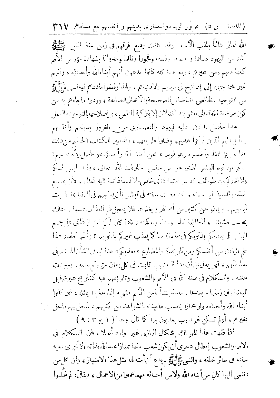 يَتَأَوَّلُوا مَا ثَبَتَ فِي الْكِتَابِ وَالسُّنَّةِ مِنْ أَنَّ اللهَ تَعَالَى يُوجِبُ عَلَى نَفْسِهِ مَا يَشَاءُ، فَلَا يَكُونُ ذَلِكَ نَافِيًا لِكَوْنِهِ صَاحِبَ الْمُلْكِ وَالتَّدْبِيرِ، وَلَا لِتَقْيِيدِ مَشِيئَتِهِ بِسُلْطَةِ سِوَاهُ، وَلَا هُمْ يُنْكِرُونَ أَنَّ مَشِيئَتَهُ لَا تَكُونُ إِلَّا عَلَى حَسَبِ عِلْمِهِ وَحِكْمَتِهِ، وَأَنَّهُ لَا يُمْكِنُ أَنْ تَكُونَ مُعَطِّلَةً لِصِفَةٍ مِنْ صِفَاتِهِ، فَإِذًا لَا وَجْهَ لِلْقَوْلِ بِأَنَّ مُقْتَضَى الْمُلْكِ أَنْ يَكُونَ كُلُّ عَمَلٍ يَعْمَلُهُ الْمَالِكُ حَسَنًا مِنْ حَيْثُ إِنَّهُ الْمَالِكُ ; إِذِ الْأَمْرُ فِي الشَّرْعِ وَالْعَقْلِ وَالْعُرْفِ لَيْسَ كَذَلِكَ، فَالَّذِي يَمْلِكُ عِدَّةَ عَبِيدٍ، فَيَظْلِمُ الْمُحْسِنَ مِنْهُمْ بِالضَّرْبِ وَالْإِهَانَةِ بِغَيْرِ ذَنْبٍ مِنْهُ، وَيُحْسِنُ إِلَى الْفَاسِقِ الْمُسِيءِ الْمُفْسِدِ فِي دَارِهِ وَمُلْكِهِ، يُعَدُّ ظَالِمًا مَذْمُومًا شَرْعًا وَعَقْلًا، وَلُغَةً وَعُرْفًا، وَأَمَّا كَوْنُ كُلِّ مَا يَفْعَلُهُ اللهُ تَعَالَى فَهُوَ حَقٌّ وَحَسَنٌ، فَلَيْسَ سَبَبُهُ أَنَّهُ الْمَالِكُ، وَكَوْنُ الْمَالِكِ يَحْسُنُ مِنْهُ كُلُّ تَصَرُّفٍ فِي مُلْكِهِ مِنْ حَيْثُ إِنَّهُ الْمَالِكُ، بَلْ لِأَنَّهُ تَعَالَى مُنَزَّهٌ عَنِ الظُّلْمِ وَالنَّقْصِ، مُتَّصِفٌ بِالْحِكْمَةِ وَالْعَدْلِ، وَالرَّحْمَةِ وَالْفَضْلِ، فَتَقْدِيسُهُ وَتَنْزِيهُهُ وَكَمَالُهُ يَتَجَلَّى فِي أَسْمَائِهِ الْحُسْنَى كُلِّهَا لَا فِي اسْمِ الْمَلِكِ وَالْمَالِكِ وَالْمُرِيدِ فَحَسْبُ.