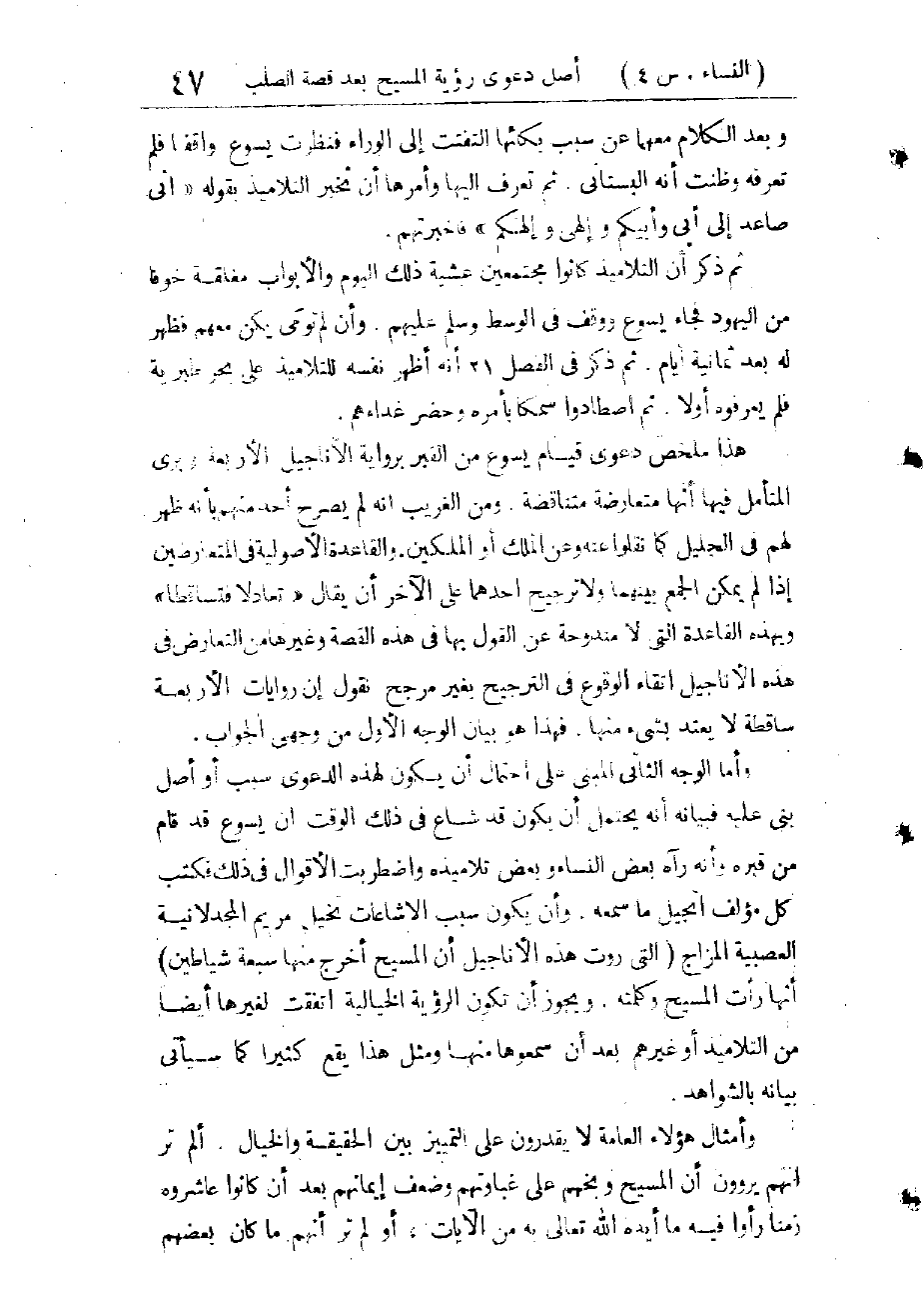 لِتَأْلِيفِ جَمَاعَةِ الدَّعْوَةِ وَالْإِرْشَادِ، فَهُوَ الَّذِي يُوَفِّقُ لِمُسَاعَدَتِهَا مَنْ أَرَادَ، وَاللهُ خَلَقَنَا مِنْ ضَعْفٍ، ثُمَّ جَعَلَ مِنْ بَعْدِ ضَعْفٍ قُوَّةً، وَمَا هِيَ إِلَّا أَنْ يَسْتَيْقِظَ الْمُسْلِمُونَ مِنْ رَقْدَتِهِمْ، وَيَتَنَبَّهُوا مِنْ غَفْلَتِهِمْ، وَيَعْرِفُوا الْغَرَضَ مِنْ حِرْصِ الْإِفْرِنْجِ عَلَى تَنْصِيرِهِمْ، وَأَنَّ أَوَّلَ بَلَايَا دَعْوَتِهِمْ، وَمَا يَنْشُرُونَ مِنْ صُحُفِهِمْ وَكُتُبِهِمْ، وَيُنْشِئُونَ مِنْ مَدَارِسِهِمْ وَمُسْتَشْفَيَاتِهِمْ، هُوَ إِبْطَالُ ثِقَةِ الْمُسْلِمِينَ بِدِينِهِمْ، وَحَلُّ الرَّابِطَةِ الَّتِي تَجْمَعُ بَيْنَ أَفْرَادِهِمْ وَشُعُوبِهِمْ حَتَّى يَكُونُوا طُعْمَةً لِلطَّامِعِينَ، بَلْ عَبِيدًا لِلطَّامِعِينَ، فَإِذَا انْتَبَهُوا وَفَقِهُوا عَرَفُوا كَيْفَ يَحْفَظُونَ أَنْفُسَهُمْ وَدُنْيَاهُمْ بِحِفْظِ دِينِهِمْ، وَتَوْثِيقِ رَابِطَتِهِ بَيْنَهُمْ وَالِاسْتِغْنَاءِ عَنِ الْجَمْعِيَّاتِ وَالْمُسْتَشْفَيَاتِ الَّتِي تُنْشِئُهَا جَمْعِيَّاتُ التَّغْرِيرِ بِالتَّبْشِيرِ لِهَدْمِ الْإِسْلَامِ، بِإِنْشَاءِ خَيْرٍ مِنْهَا لِإِعْلَاءِ مَنَارِ الْإِسْلَامِ الَّذِي هُوَ دِينُ الْعَقْلِ وَالْعِرْفَانِ، وَالْعَدْلِ وَالْعُمْرَانِ، الَّذِي أَكْمَلَ اللهُ بِهِ دِينَ الْأَنْبِيَاءِ عَلَيْهِمُ السَّلَامُ، وَيَجْذِبُونَ إِلَيْهِ مَنْ فِي بِلَادِ أِمِرِيكَةَ وَأُورُبَّةَ مِنَ الْمُسْتَقِلِّينَ الْأَحْرَارِ حَتَّى تَكُونَ كَلِمَةُ اللهِ هِيَ الْعُلْيَا فِي كُلِّ مَكَانٍ لَا إِلَهَ إِلَّا اللهُ مُحَمَّدٌ رَسُولُ اللهِ، وَآخِرُ دَعْوَانَا أَنِ الْحَمْدُ لِلَّهِ رَبِّ الْعَالَمِينَ.