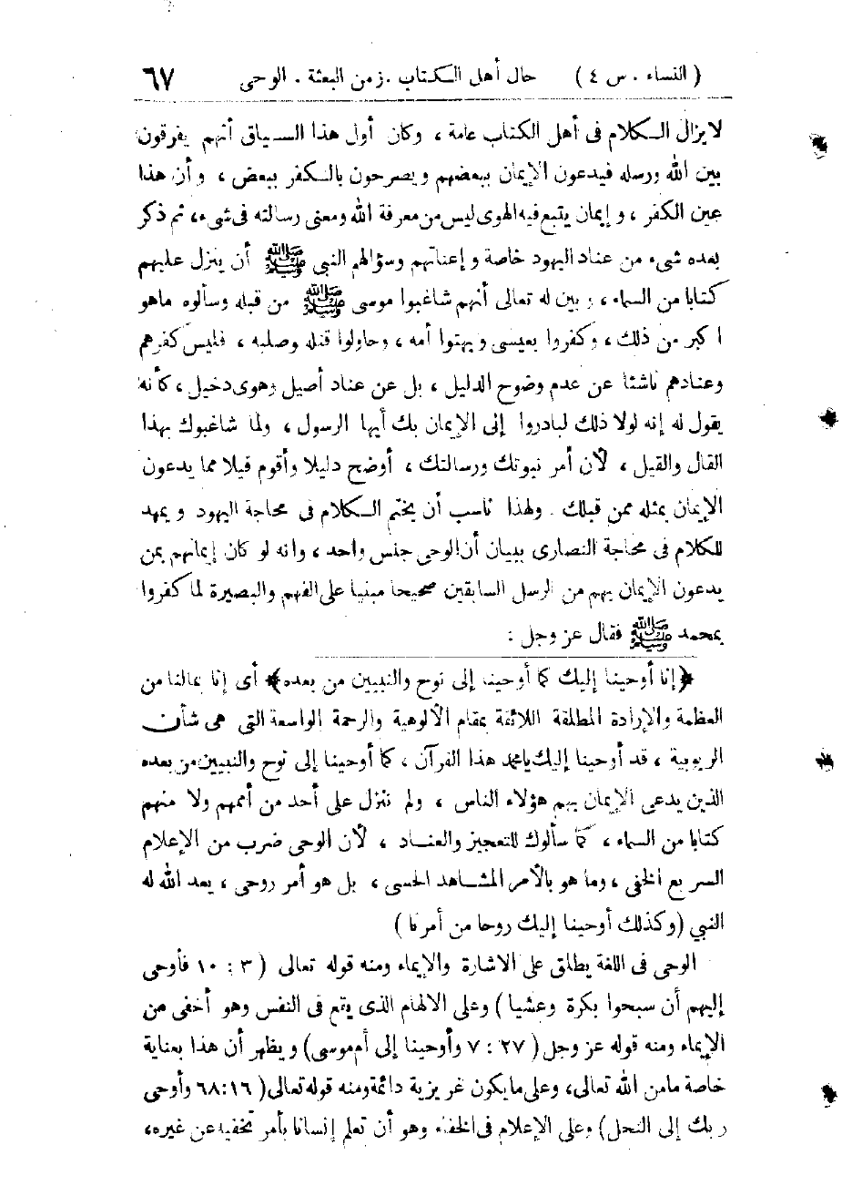 هَذِهِ الْآيَاتُ نَزَلَتْ فِي مُحَاجَّةِ النَّصَارَى خَاصَّةً بَعْدَ مُحَاجَّةِ الْيَهُودِ وَإِقَامَةِ الْحُجَّةِ عَلَيْهِمْ، وَقَدْ غَلَتِ الْيَهُودُ فِي تَحْقِيرِ عِيسَى وَإِهَانَتِهِ وَالْكُفْرِ بِهِ، فَفَرَّطُوا كُلَّ التَّفْرِيطِ، فَغَلَتِ النَّصَارَى فِي تَعْظِيمِهِ وَتَقْدِيسِهِ فَأَفْرَطُوا كُلَّ الْإِفْرَاطِ، فَلَمَّا دَحَضَ - تَعَالَى - شُبُهَاتِ أُولَئِكَ قَفَّى بِدَحْضِ شُبُهَاتِ هَؤُلَاءِ، فَقَالَ عَزَّ مِنْ قَائِلٍ: يَا أَهْلَ الْكِتَابِ لَا تَغْلُوا فِي دِينِكُمْ فَتَتَجَاوَزُوا الْحُدُودَ الَّتِي حَدَّهَا اللهُ لَكُمْ، فَإِنَّ الزِّيَادَةَ فِي الدِّينِ كَالنَّقْصِ مِنْهُ، كِلَاهُمَا مُخْرِجٌ لَهُ عَنْ وَضْعِهِ وَلَا تَقُولُوا عَلَى اللهِ إِلَّا الْحَقَّ أَيِ الثَّابِتَ الْمُتَحَقِّقَ فِي نَفْسِهِ، إِمَّا بِنَصٍّ دِينِيٍّ مُتَوَاتِرٍ، وَإِمَّا بِبُرْهَانٍ عَقْلِيٍّ قَاطِعٍ، وَلَيْسَ لَكُمْ عَلَى مَزَاعِمِكُمْ فِي الْمَسِيحِ شَيْءٌ مِنْهُمَا إِنَّمَا الْمَسِيحُ عِيسَى ابْنُ مَرْيَمَ رَسُولُ اللهِ إِلَى
