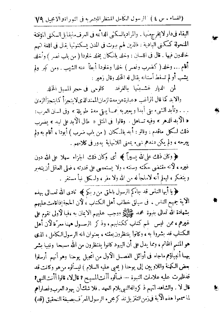 وَحَسْبُنَا مَا كَتَبْنَاهُ هُنَا فِي مَسْأَلَةِ التَّثْلِيثِ الْآنَ، وَسَنُبْقِي بَقِيَّةَ مَبَاحِثِهَا إِلَى تَفْسِيرِ سُورَةِ الْمَائِدَةِ.