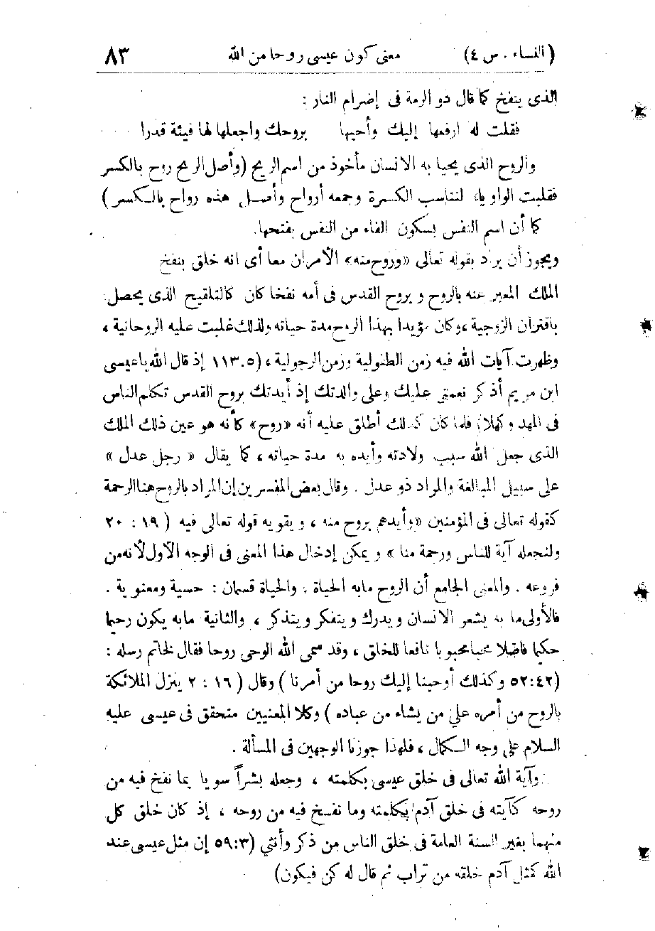 هَكَذَا كَانَتِ الْيَهُودُ وَالنَّصَارَى فِي عَهْدِ بَعْثَةِ النَّبِيِّ صَلَّى اللَّهُ عَلَيْهِ وَسَلَّمَ، يَتْبَعُونَ أُنَاسًا مِنْ عُلَمَائِهِمْ وَأَحْبَارِهِمْ وَمُقَدَّسِيهِمْ فِي عَقَائِدَ وَآدَابٍ وَشَرَائِعَ مَشُوبَةٍ بِالْوَثَنِيَّةِ وَالْخُضُوعِ لِغَيْرِ اللهِ - تَعَالَى - لَمْ تُؤْخَذْ مِنْ وَحْيِ اللهِ الْمُنَزَّلِ، كَمَا هُوَ الْوَاجِبُ فِي أُمُورِ الدِّينِ الْخَالِصِ مِنَ الْعَقَائِدِ وَالْعِبَادَاتِ، وَسَائِرِ مَا يُتَقَرَّبُ بِهِ إِلَى اللهِ تَعَالَى، وَلَوْ كَانَ الْبَشَرُ يَسْتَقِلُّونَ بِمَعْرِفَةِ هَذَا مِنْ غَيْرِ وَحْيٍ مِنَ اللهِ لَمَا كَانُوا مُحْتَاجِينَ إِلَى بَعْثَةِ الرُّسُلِ. وَقَدْ يَزْعُمُونَ أَنَّهُمْ كَانُوا مُبَيِّنِينَ لِمَا جَاءَ بِهِ مُوسَى وَعِيسَى عَلَيْهِمَا السَّلَامُ، وَلَوْ صَدَقُوا لَمَا صَارَ دِينُهُمْ فِي شَكْلٍ غَيْرِ مَا كَانَا عَلَيْهِ هُمَا، وَمَنْ كَانَ مُتَّبِعًا لَهُمَا فِي زَمَنِهِمَا، بِحَيْثُ لَوْ بُعِثَا ثَانِيَةً لَأَنْكَرَا كُلَّ مَا عَلَيْهِ هَؤُلَاءِ الْأَدْعِيَاءُ أَوْ أَكْثَرَهُ. وَإِذَا كَانَ الرُّكْنُ الْأَعْظَمُ لِدِينِهِمَا وَهُوَ التَّوْحِيدُ قَدْ زُلْزِلَ عِنْدَ الْيَهُودِ، وَزَالَ مِنْ عِنْدِ النَّصَارَى فَكَيْفَ يَكُونُ دِينُهُمَا هُوَ دِينَ مُوسَى وَعِيسَى عَلَيْهِمَا السَّلَامُ؟ ! هَذِهِ إِشَارَةٌ إِلَى مَا كَانَ عَلَيْهِ أَقْرَبُ النَّاسِ عَهْدًا بِدَعْوَةِ الرُّسُلِ إِلَى التَّوْحِيدِ، فَمَا ظَنُّكَ بِغَيْرِهِمْ؟ فَمَا الَّذِي فَعَلَهُ الْقُرْآنُ فِي بَيَانِ هَذِهِ الْعَقِيدَةِ؟
