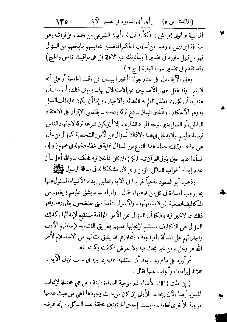وَطَلَبٍ لِمَعْرِفَةِ وَجْهِ الصَّوَابِ مِمَّا تَتَعَارَضُ فِيهِ الْأَمَارَاتُ، فَلَا يُقَالُ لِمَنْ رَأَى بِقَلْبِهِ أَمْرًا غَائِبًا عَنْهُ مِمَّا يُحِسُّ بِهِ: إِنَّهُ رَأَيَهُ، وَلَا يُقَالُ أَيْضًا لِلْأَمْرِ الْمَعْقُولِ الَّذِي لَا تَخْتَلِفُ فِيهِ الْعُقُولُ وَلَا تَتَعَارَضُ فِيهِ الْأَمَارَاتُ: إِنَّهُ رَأَى، وَإِنِ احْتَاجَ إِلَى فِكْرٍ وَتَأَمُّلٍ، كَدَقَائِقِ الْحِسَابِ وَنَحْوِهَا.