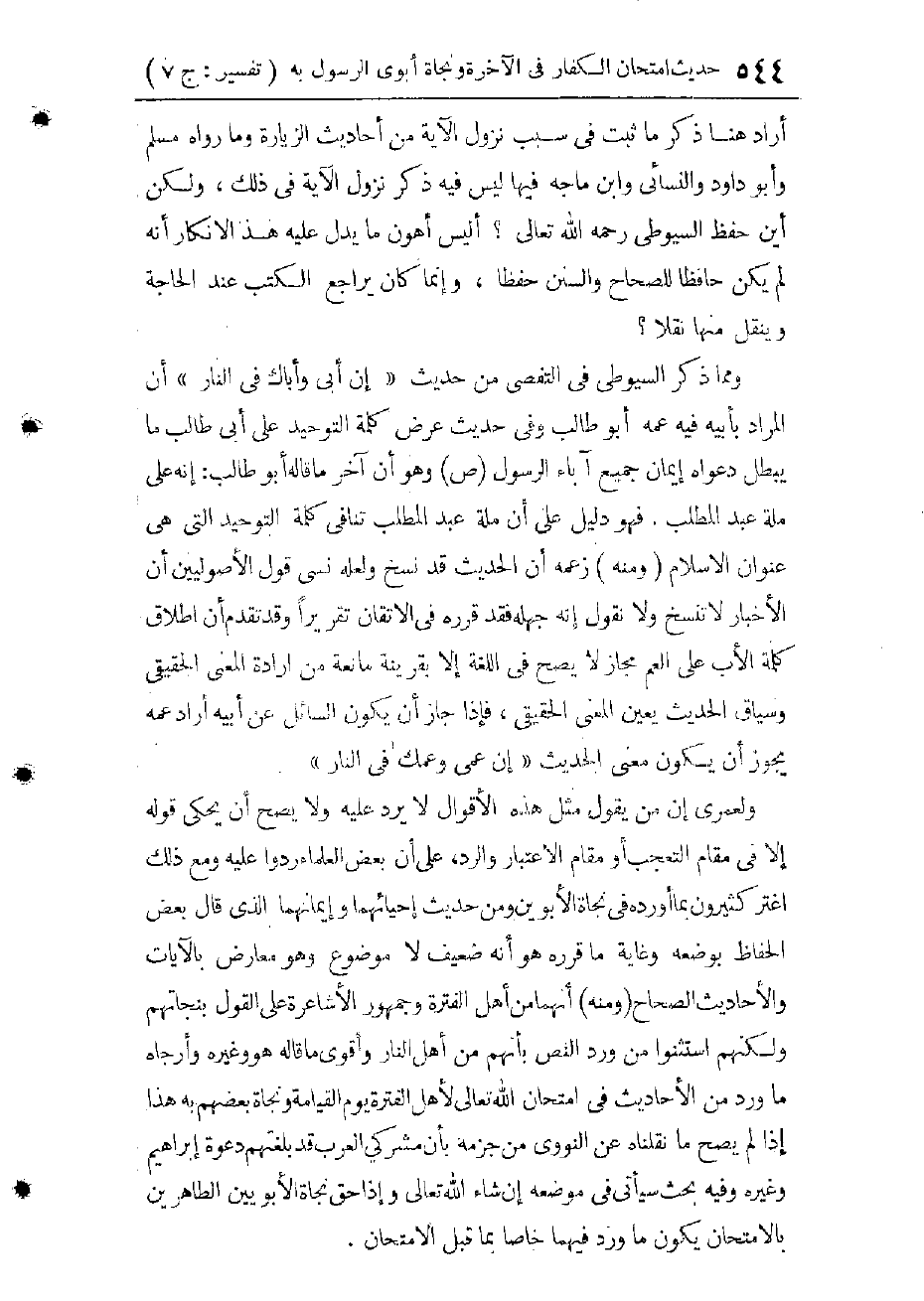 مِنْ سُورَةِ الْأَعْرَافِ إِنْ شَاءَ اللهُ تَعَالَى، وَهُنَالِكَ نُلِمُّ بِمَسْلَكِ الصُّوفِيَّةِ فِي نَفْيِ الْإِدْرَاكِ وَإِثْبَاتِ الرُّؤْيَةِ لِلرَّبِّ، بِتَجَلِّيهِ تَعَالَى الَّذِي يَكُونُ هُوَ بِهِ بَصَرُ الْعَبْدِ الثَّابِتُ فِي الْحَدِيثِ الْقُدْسِيِّ " وَلَا يَزَالُ عَبْدِي يَتَقَرَّبُ إِلَيَّ بِالنَّوَافِلِ حَتَّى أُحِبَّهُ فَإِذَا أَحْبَبْتُهُ كُنْتُ سَمْعَهُ الَّذِي يَسْمَعُ بِهِ، وَبَصَرَهُ الَّذِي يُبَصِرُ بِهِ " الْحَدِيثَ، وَهُوَ فِي صَحِيحِ الْبُخَارِيِّ، وَخُلَاصَةُ هَذَا الْمَسْلَكِ أَنَّهُ تَعَالَى هُوَ الَّذِي يَرَى نَفْسَهُ بِتَجَلِّيهِ فِي بَصَرِ عَبْدِهِ، فَمَا يَرَى اللهُ إِلَّا اللهُ، وِفَاقًا لِقَوْلِهِمْ: لَا يَعْرِفُ اللهَ إِلَّا اللهُ.