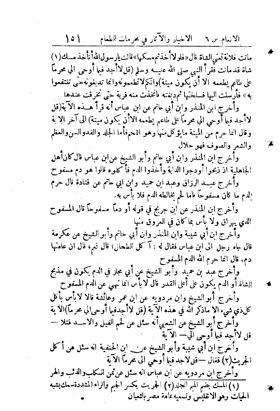 وَقَدْ فَسَّرُوا بِهَذِهِ الْآيَةِ قَوْلَهُ تَعَالَى: (فَبِظُلْمٍ مِنَ الَّذِينَ هَادُوا حَرَّمْنَا عَلَيْهِمْ طَيِّبَاتٍ أُحِلَّتْ لَهُمْ) (4: 160) وَعَلَى هَذَا تَكُونُ ذَوَاتُ الْأَنْيَابِ مِنَ السِّبَاعِ وَالْمَخَالِبِ مِنَ الطَّيْرِ طَيِّبَاتٍ بِالنَّصِّ. وَقَدْ بَيَّنَّا فِي تَفْسِيرِ هَذِهِ الْآيَةِ مِنْ سُورَةِ النِّسَاءِ أَنَّ التَّحْقِيقَ فِيهَا إِبْقَاءُ قَوْلِهِ تَعَالَى: (بِظُلْمٍ) وَقَوْلِهِ (طَيِّبَاتٍ) عَلَى نَكَارَتِهِمَا، وَإِبْهَامِهِمَا، وَأَنَّ آيَةَ: (كُلُّ الطَّعَامِ كَانَ حِلًّا لِبَنِي إِسْرَائِيلَ إِلَّا مَا حَرَّمَ إِسْرَائِيلُ عَلَى نَفْسِهِ مِنْ قَبْلِ أَنْ تُنَزَّلَ التَّوْرَاةُ) (3: 93) مَعْنَاهَا: أَنَّ كُلَّ الطَّعَامِ كَانَ حِلًّا لَهُمْ وَلِمَنْ قَبْلَهُمْ مِنَ الرُّسُلِ وَأَتْبَاعِهِمْ كَإِبْرَاهِيمَ وَذُرِّيَّتِهِ، إِلَّا مَا حَرَّمُوا هُمْ عَلَى أَنْفُسِهِمْ بِسَبَبِ الظُّلْمِ الَّذِي ارْتَكَبُوهُ وَكَانَ سَبَبًا لِشَدِيدِ أَحْكَامِ التَّوْرَاةِ عَلَيْهِمْ - وَأَنَّ مَا يُرْوَى عَنْ مُفَسِّرِي السَّلَفِ فِي تَفْسِيرِ هَذِهِ الْآيَةِ وَأَمْثَالِهَا مَأْخُوذٌ مِنَ الْإِسْرَائِيلِيَّاتِ الَّتِي كَانَ الْيَهُودُ يَقُصُّونَهَا عَلَى الْمُسْلِمِينَ. وَفِيهَا الْغَثُّ وَالسَّمِينُ، وَكَانَ فِيهِمْ مَنْ يَصْدُقُ فِي بَيَانِ مَا فِي كُتُبِهِمْ وَمَنْ يَمِينُ وَالْمُحَرَّمَاتُ عَلَيْهِمْ فِي التَّوْرَاةِ كَثِيرَةٌ مُفَصَّلَةٌ فِي سِفْرِ اللَّاوِيِينَ، (الْأَحْبَارِ) فَفِي الْفَصْلِ الْحَادِي عَشَرَ مِنْهُ بَيَانُ