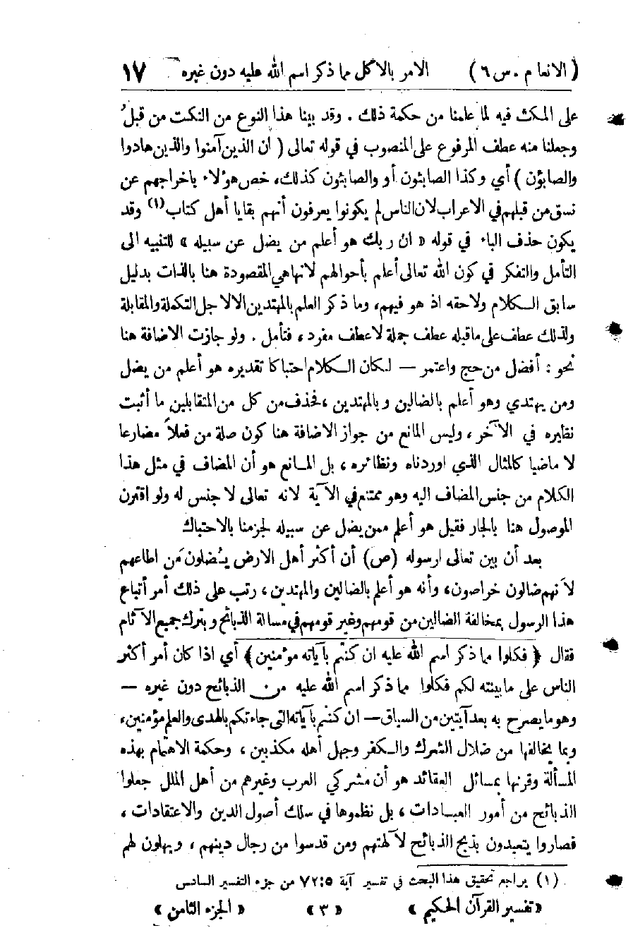 (وَإِنَّ كَثِيرًا لَيُضِلُّونَ بِأَهْوَائِهِمْ بِغَيْرِ عِلْمٍ) قَرَأَ الْجُمْهُورُ يُضِلُّونَ (بضم الياء) وَقَرَأَ ابْنُ كَثِيرٍ وَأَبُو عَمْرٍو وَيَعْقُوبُ بِفَتْحِ الْيَاءِ وَالْأُولَى أَبْلَغُ، وَفَائِدَةُ الْقِرَاءَتَيْنِ بَيَانُ وُقُوعِ الْأَمْرَيْنِ بِالْإِيجَازِ الْعَجِيبِ، وَالْمَعْنَى أَنَّ مِنَ الثَّابِتِ الْقَطْعِيِّ أَنَّ كَثِيرًا مِنَ النَّاسِ يُضِلُّونَ غَيْرَهُمْ كَمَا ضَلُّوا فِي مِثْلِ أَكْلِ مَا أُهِلَّ بِهِ لِغَيْرِ اللهِ بِذِكْرِ اسْمِ ذَلِكَ الْغَيْرِ مِنْ نَبِيٍّ أَوْ صَالِحٍ أَوْ وَثَنٍ وُضِعَ لِتَعْظِيمِهِ