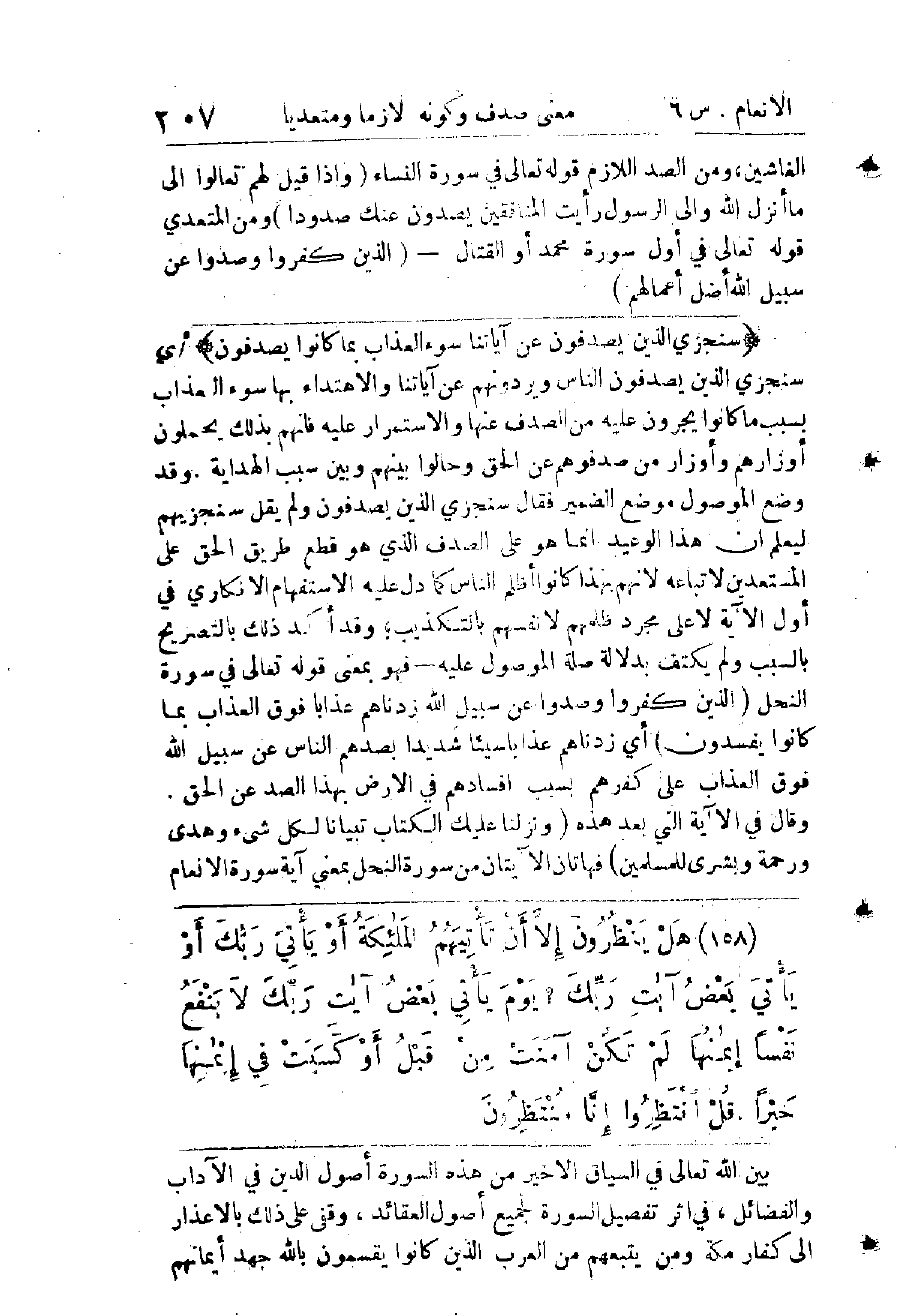 الْجَنَّتَيْنِ آتَتْ أُكُلَهَا وَلَمْ تَظْلِمْ مِنْهُ شَيْئًا) (18: 33) ثُمَّ تُوُسِّعَ فِيهِ فَأُطْلِقَ عَلَى كُلِّ تَعَدٍّ وَإِيذَاءٍ بِغَيْرِ حَقٍّ. وَالْمَعْنَى: أَنَّهُمْ لَا يُظْلَمُونَ فِي يَوْمِ الْجَزَاءِ لَا مِنَ اللهِ عَزَّ وَجَلَّ لِمَا ذُكِرَ، وَلَا مِنْ غَيْرِهِ إِذْ لَا سُلْطَانَ لِأَحَدٍ مِنْ خَلْقِهِ وَلَا كَسْبَ فِي ذَلِكَ الْيَوْمِ يُمَكِّنُهُ مِنَ الظُّلْمِ كَمَا يَفْعَلُ الْأَقْوِيَاءُ الْأَشْرَارُ فِي الدُّنْيَا بِالضُّعَفَاءِ. وَفِي جَوَازِ تَعَلُّقِ الْقُدْرَةِ الْإِلَهِيَّةِ بِالظُّلْمِ وَعَدَمِهِ جِدَالٌ بَيْنَ الْأَشْعَرِيَّةِ وَالْمُعْتَزِلَةِ، يَتَأَوَّلُ كُلٌّ مِنْهُمَا الْآيَاتِ لِتَصْحِيحِ مَذْهَبِهِ فِيهِ، وَقَدْ سَبَقَ بَيَانُ الْحَقِّ فِيهِ غَيْرَ مَرَّةٍ، وَيُرَاجَعُ فِيهِ وَفِي مَعْنَى مُضَاعَفَةِ الْأَعْمَالِ الْحَسَنَةِ تَفْسِيرُ قَوْلِهِ تَعَالَى: (إِنَّ اللهَ لَا يَظْلِمُ مِثْقَالَ ذَرَّةٍ وَإِنْ تَكُ حَسَنَةً يُضَاعِفْهَا وَيُؤْتِ مِنْ لَدُنْهُ أَجْرًا عَظِيمًا) (4: 40) فَإِنَّهُ يُجَلِّي مَعْنَى هَذِهِ الْآيَةِ بِمَا يُعْلَمُ مِنْهُ مَا فِي خِلَافِ الْأَشْعَرِيَّةِ مَعَ الْمُعْتَزِلَةِ مِنَ الضَّعْفِ فِي مَسْأَلَةِ جَوَازِ الظُّلْمِ عَلَى الْبَارِي تَعَالَى عَقْلًا وَاسْتِحَالَتِهِ بِحَيْثُ لَا يُقَالُ إِنَّ الْبَارِيَ سُبْحَانَهُ قَادِرٌ عَلَيْهِ.