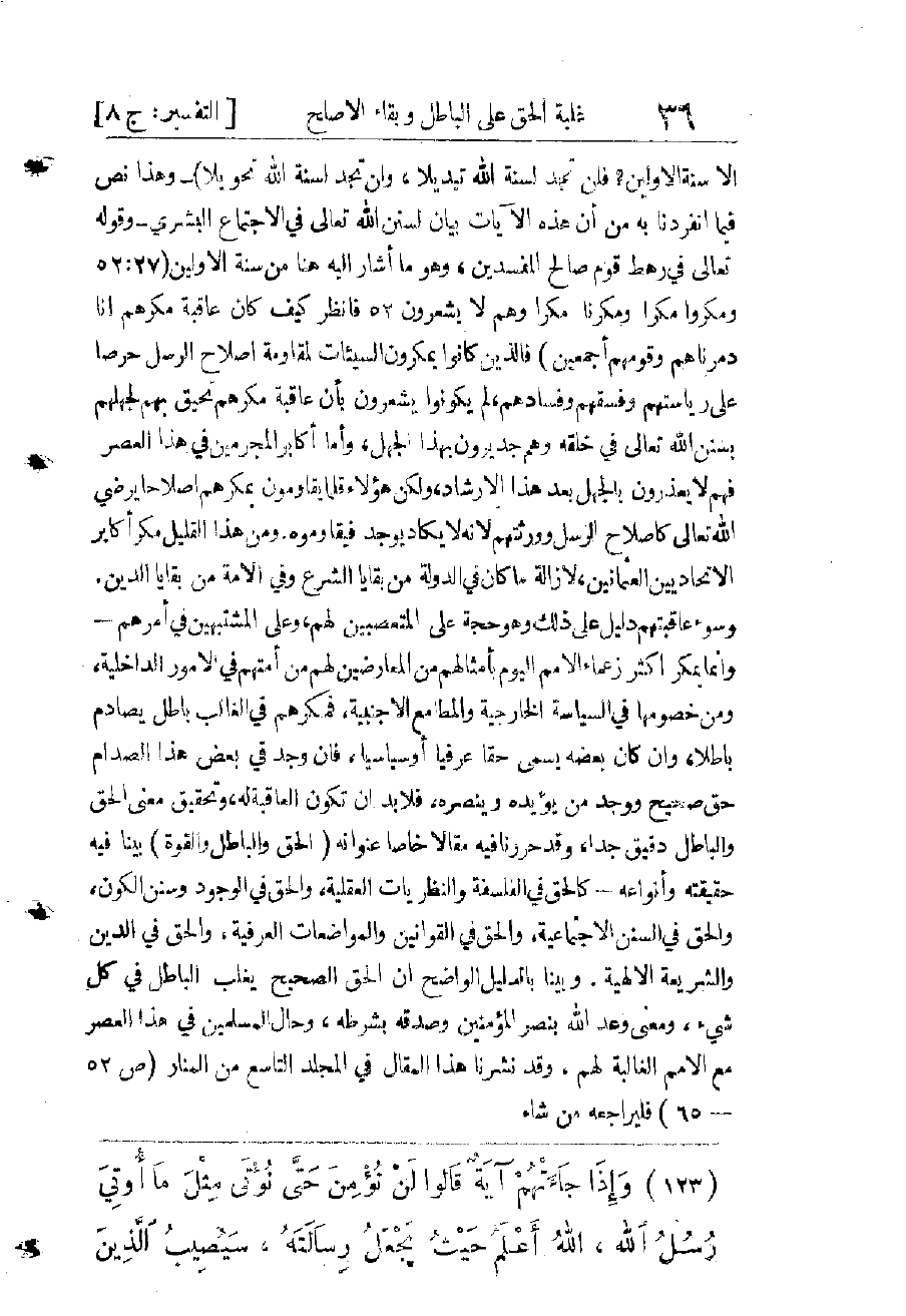 وَإِذْ قَدْ بَيَّنَ تَعَالَى عَاقِبَةَ الْمُجْرِمِينَ الْمَاكِرِينَ الَّذِينَ حُرِمُوا الِاسْتِعْدَادَ لِلْإِسْلَامِ بَعْدَ بَيَانِ حَالِهِمْ، قَفَّى عَلَيْهِ بِالْمُقَابَلَةِ بَيْنَهُمْ وَبَيْنَ الْمُسْتَعِدِّينَ لَهُ، ثُمَّ بِبَيَانِ ظُهُورِ هِدَايَتِهِ وَاسْتِقَامَةِ مَحَجَّتِهِ، وَبِجَزَاءِ الْمُهْتَدِينَ بِهِ، عَلَى حَسَبِ سُنَّتِهِ فِي كِتَابِهِ فَقَالَ: