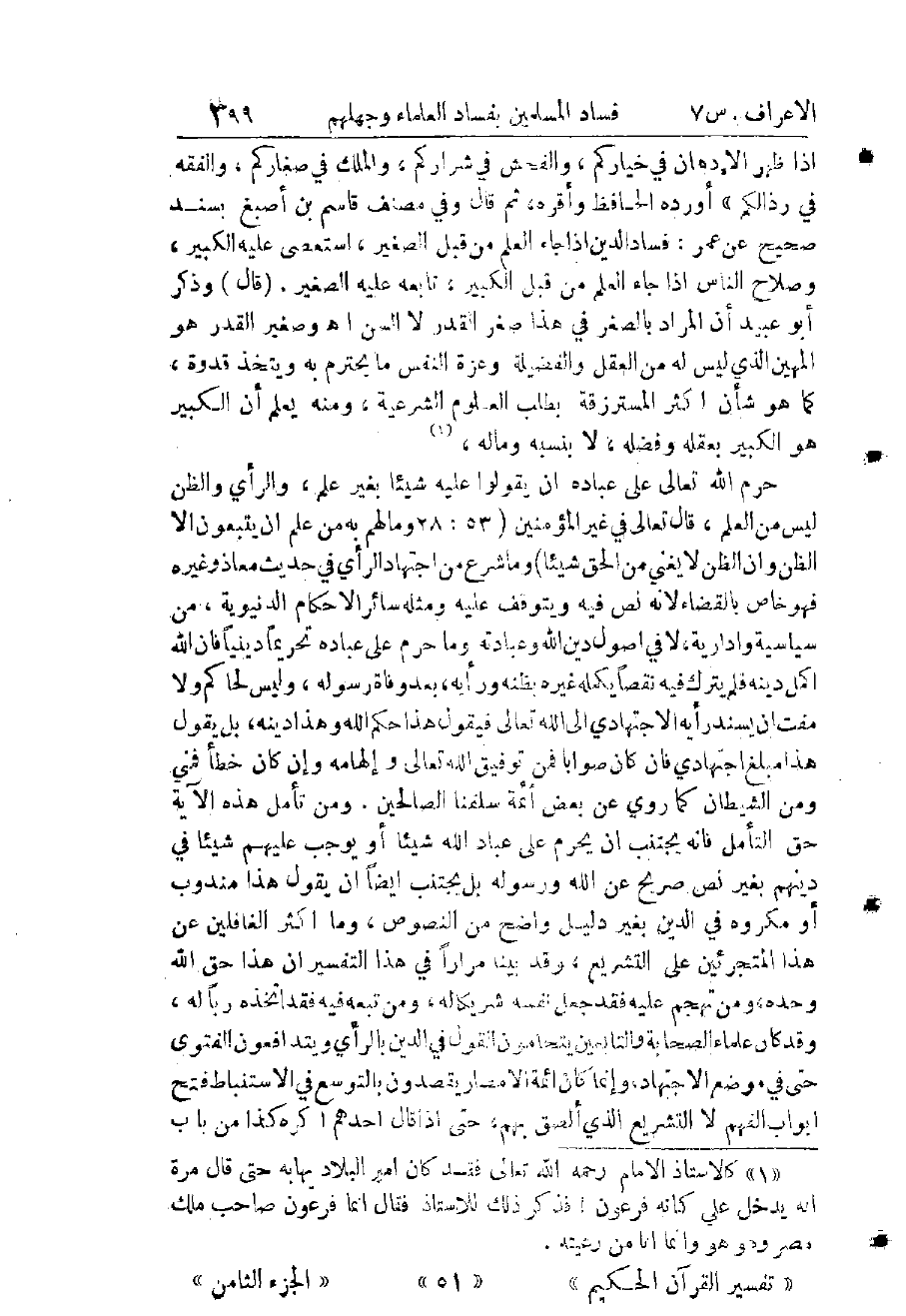 يَظُنُّ بَعْضُ قَصِيرِي النَّظَرِ وَضَعِيفِي الْفِكْرِ أَنَّ الْخَلْقَ الْأُنُفَ - (بِضَمَّتَيْنِ) : الْجُزَافُ - الَّذِي لَا تَقْدِيرَ فِيهِ وَلَا تَدْرِيجَ نِظَامٍ - أَدَلُّ عَلَى وُجُودِ الْخَالِقِ وَعَلَى عَظَمَةِ قُدْرَتِهِ، وَيُقَوِّي هَذَا الظَّنَّ عِنْدَ بَعْضِ النَّاسِ مَا عُلِمَ مِنْ كُفْرِ بَعْضِ الْبَاحِثِينَ فِي نِظَامِ الْخَلْقِ وَالتَّكْوِينِ وَسُنَنِهِ بِالْخَالِقِ عَزَّ وَجَلَّ وَإِنْ كَانَ كُفْرُهُمْ ذُهُولًا وَاشْتِغَالًا عَنِ الصَّانِعِ بِدِقَّةِ الصَّنْعَةِ، وَتَجْوِيزًا لِحُصُولِ النِّظَامِ فِيهَا بِنَفْسِهِ مُصَادَفَةً وَاتِّفَاقًا، وَالصَّوَابُ الْمَعْقُولُ: أَنَّ النِّظَامَ أَدَلُّ الدَّلَائِلِ عَلَى الْإِرَادَةِ وَالِاخْتِيَارِ، وَالْعِلْمِ وَالْحِكْمَةِ فِي آثَارِ الْقُدْرَةِ، وَعَلَى وَحْدَانِيَّةِ الْخَالِقِ. فَإِنَّ وَحْدَةَ النِّظَامِ فِي الْعَالَمِ أَظْهَرُ الْبَرَاهِينِ عَلَى وَحْدَةِ الرَّبِّ تَعَالَى. وَمَا لَا نِظَامَ فِيهِ هُوَ الَّذِي قَدْ يَخْطُرُ فِي بَالِ رَائِيهِ أَنَّ وُجُودَهُ أَمْرٌ اتِّفَاقِيٌّ أَوْ مِنْ قَذَفَاتِ الضَّرُورَةِ الْعَمْيَاءِ أَوْ بِفِعْلِ أَكْثَرَ مِنْ وَاحِدٍ. وَأَيُّ عَاقِلٍ لَا يُفَرِّقُ بَيْنَ كَوْمَةٍ مِنَ الْحَصَى يَرَاهَا فِي الصَّحْرَاءِ وَبَيْنَ قَصْرٍ مَشِيدٍ، فِيهِ جَمِيعُ مَا يَحْتَاجُ إِلَيْهِ مُتْرَفُو الْأَغْنِيَاءِ مِنْ حُجُرَاتٍ وَمَرَافِقَ، أَفَيُعْقَلُ أَنْ يَكُونَ النِّظَامُ الْعَامُّ فِي الْعَالَمِ الْأَكْبَرِ