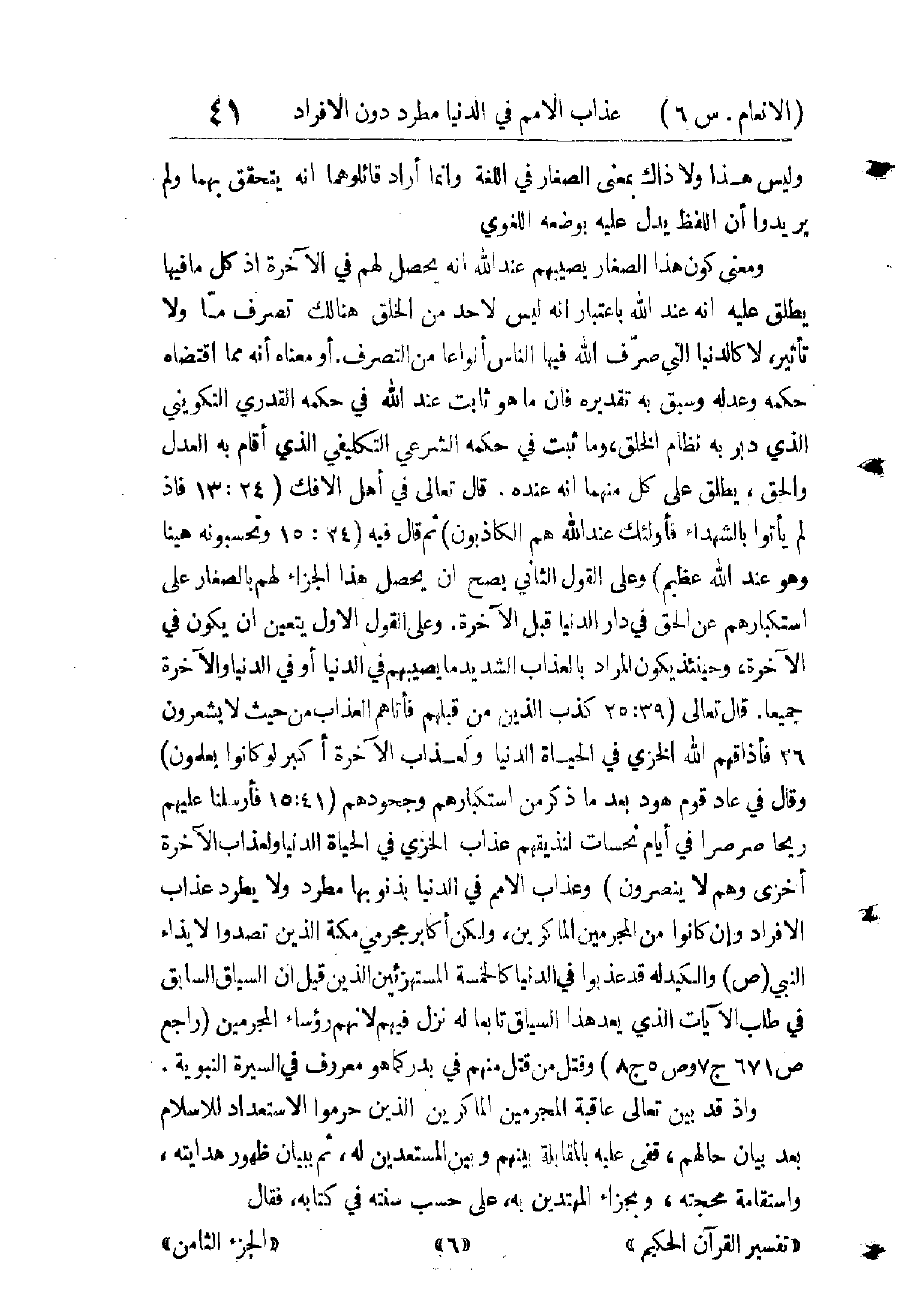دَرَكَاتِ النَّارِ، وَأَمَّا الصَّبِيُّ فَمِنْ أَهْلِ السَّلَامَةِ، قَالَ: قُولِي لَهُ: لَوْ أَنَّ الصَّبِيَّ أَرَادَ أَنْ يَذْهَبَ إِلَى تِلْكَ الدَّرَجَاتِ الْعَالِيَةِ الَّتِي حَصَلَ فِيهَا أَخُوهُ الزَّاهِدُ هَلْ يُمَكَّنُ مِنْهُ؟ فَقَالَ الْجُبَّائِيُّ: لَا؛ لِأَنَّ اللهَ يَقُولُ لَهُ: إِنَّمَا وَصَلَ إِلَى تِلْكَ الدَّرَجَاتِ الْعَالِيَةِ بِسَبَبِ أَنَّهُ أَتْعَبَ نَفْسَهُ فِي الْعِلْمِ وَالْعَمَلِ وَأَنْتَ فَلَيْسَ مَعَكَ ذَاكَ. فَقَالَ أَبُو الْحَسَنِ: قُولِي لَهُ: لَوْ أَنَّ الصَّبِيَّ حِينَئِذٍ يَقُولُ: يَارَبَّ الْعَالَمِينَ، لَيْسَ الذَّنْبُ لِي لِأَنَّكَ أَمَتَّنِي قَبْلَ الْبُلُوغِ، وَلَوْ أَمْهَلْتَنِي فَرُبَّمَا زِدْتُ عَلَى أَخِي الزَّاهِدِ فِي الزُّهْدِ وَالدِّينِ. فَقَالَ الْجُبَّائِيُّ: يَقُولُ اللهُ لَهُ: عَلِمْتُ أَنَّكَ لَوْ عِشْتَ لَطَغَيْتَ وَكَفَرْتَ وَكُنْتَ تَسْتَوْجِبُ النَّارَ فَقَبْلَ أَنْ تَصِلَ إِلَى تِلْكَ الْحَالَةِ رَاعَيْتُ مَصْلَحَتَكَ وَأَمَتُّكَ حَتَّى تَنْجُوَ مِنَ الْعِقَابِ. فَقَالَ أَبُو الْحَسَنِ: قُولِي لَهُ: لَوْ أَنَّ الْأَخَ الْكَافِرَ الْفَاسِقَ رَفَعَ رَأْسَهُ مِنَ الدَّرْكِ الْأَسْفَلِ مِنَ النَّارِ فَقَالَ: يَارَبَّ الْعَالَمِينَ وَيَا أَحْكَمَ الْحَاكِمِينَ وَيَا أَرْحَمَ الرَّاحِمِينَ، كَمَا عَلِمْتَ مِنْ ذَلِكَ الْأَخِ الصَّغِيرِ أَنَّهُ لَوْ بَلَغَ كَفَرَ عَلِمْتَ مِنِّي ذَلِكَ، فَلِمَ رَاعَيْتَ مَصْلَحَتَهُ وَمَا رَاعَيْتَ مَصْلَحَتِي؟ قَالَ الرَّازِيُّ: فَلَمَّا وَصَلَ الْكَلَامُ إِلَى هَذَا الْمَوْضِعِ انْقَطَعَ الْجُبَّائِيُّ، فَلَمَّا نَظَرَ رَأَى أَبَا الْحَسَنِ فَعَلِمَ أَنَّ هَذِهِ الْمَسْأَلَةَ مِنْهُ لَا مِنَ الْعَجُوزِ.