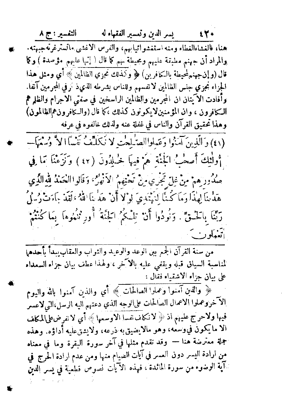 وَقَدْ بَيَّنَّا فِي غَيْرِ هَذَا الْمَوْضِعِ أَنَّ الْتِزَامَ الْقَوْمِ بِوُجُوبِ حَشْرِ الْأَجْسَادِ الَّتِي كَانَتْ لِكُلِّ حَيٍّ بِأَعْيَانِهَا لِأَجْلِ وُقُوعِ الْجَزَاءِ عَلَيْهَا غَيْرُ لَازِمٍ لِتَحْقِيقِ الْعَدْلِ، فَجَمِيعُ قُضَاةِ الْعَالَمِ الْمَدَنِيِّ فِي هَذَا الْعَصْرِ يَعْتَقِدُونَ أَنَّ أَبْدَانَ الْبَشَرِ تَتَجَدَّدُ فِي سِنِينَ قَلِيلَةٍ وَلَا يُوجَدُ أَحَدٌ مِنْهُمْ وَلَا مِنْ