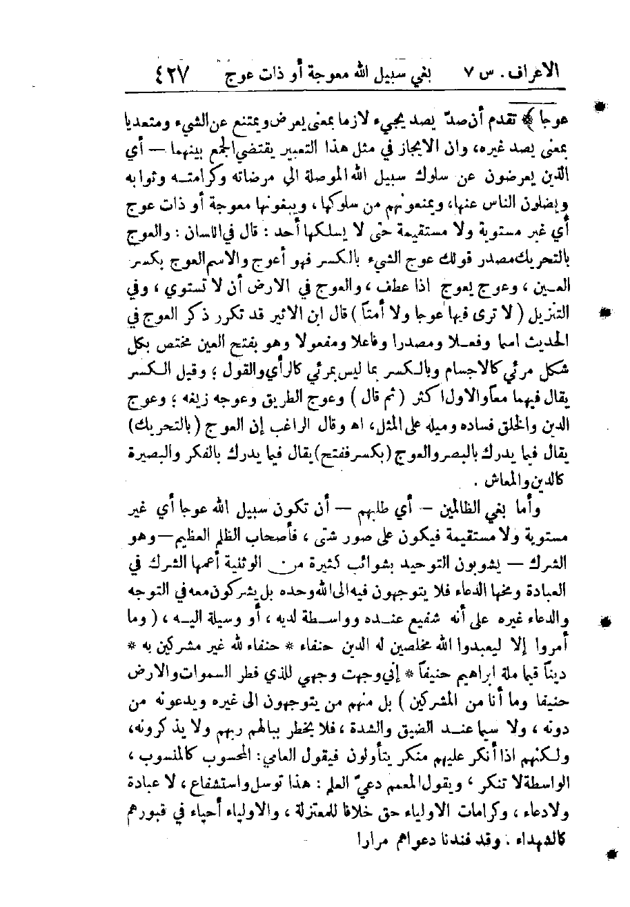 قَالَ ابْنُ عَبَّاسٍ: هَذَا مَثَلٌ ضَرَبَهُ اللهُ لِلْمُؤْمِنِ وَالْكَافِرِ، أَيْ وَالْبَرِّ وَالْفَاجِرِ، وَمَعْنَاهُ: أَنَّ الْأَرْضَ مِنْهَا الطَّيِّبَةُ الْكَرِيمَةُ التُّرْبَةِ الَّتِي يَخْرُجُ نَبَاتُهَا بِسُهُولَةٍ. وَيُنَمَّى بِسُرْعَةٍ، وَيَكُونُ كَثِيرَ الْغَلَّةِ طَيِّبَ الثَّمَرَةِ، وَمِنْهَا الْخَبِيثَةُ التُّرْبَةِ كَالْحَرَّةِ السَّبِخَةِ الَّتِي لَا يَخْرُجُ نَبَاتُهَا عَلَى قِلَّتِهِ وَخُبْثِهِ - إِنْ أَنْبَتَتْ - إِلَّا بِعُسْرٍ وَصُعُوبَةٍ. قَالَ الرَّاغِبُ: النَّكِدُ كُلُّ شَيْءٍ خَرَجَ إِلَى طَالِبِهِ بِتَعَسُّرٍ