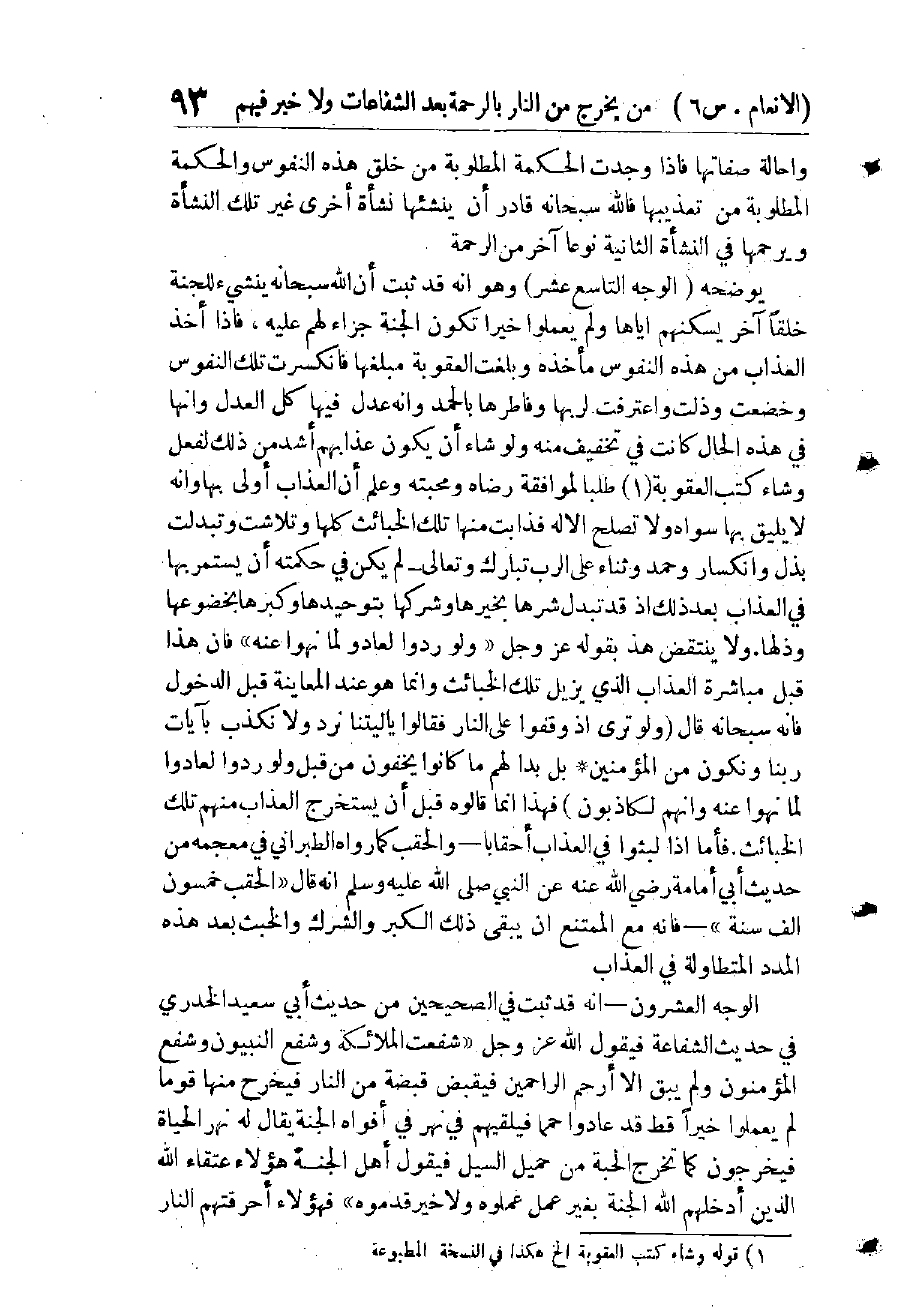 كُلِّ أُمَّةٍ رَسُولًا أَنِ اعْبُدُوا اللهَ وَاجْتَنِبُوا الطَّاغُوتَ) (16: 36) مَعَ ضَمِيمَةِ إِطْلَاقِ لَفْظِ الْأُمَّةِ عَلَى جَمِيعِ أَنْوَاعِ الْأَحْيَاءِ لِقَوْلِهِ تَعَالَى: (وَمَا مِنْ دَابَّةٍ فِي الْأَرْضِ وَلَا طَائِرٍ يَطِيرُ بِجَنَاحَيْهِ إِلَّا أُمَمٌ أَمْثَالُكُمْ) (6: 38) وَتَقَدَّمَ فِي تَفْسِيرِهِ أَنَّ بَعْضَ الصُّوفِيَّةِ قَالَ بِتَكْلِيفِ الْحَيَوَانَاتِ وَاسْتَدَلُّوا بِآيَةِ (35: 24) وَأَنَّ الشَّعْرَانِيَّ ذَكَرَ فِي الْجَوَاهِرِ أَنَّهُ يَجُوزُ أَنْ يَكُونَ نَذْرُهَا مِنْهَا وَأَنْ يَكُونُوا مِنْ غَيْرِهَا، وَاسْتَدَلَّ أَيْضًا بِقَوْلِهِ تَعَالَى: (وَلَوْ جَعَلْنَاهُ مَلَكًا لَجَعَلْنَاهُ رَجُلًا) (6: 9) أَيْ بِنَاءً عَلَى اسْتِئْنَاسِ الْجِنْسِ بِالْجِنْسِ وَفَهْمِهِ عَنْهُ، وَقَدْ يَرُدُّ هَذَا بِأَنَّهُ ثَبَتَ فِي الْقُرْآنِ أَنَّ الْجِنَّ يَفْهَمُونَ مِنْ رُسُلِ الْإِنْسِ. وَجُمْلَةُ الْقَوْلِ فِي الْخِلَافِ أَنَّهُ لَيْسَ فِي الْمَسْأَلَةِ نَصٌّ قَطْعِيٌّ، وَالظَّوَاهِرُ الَّتِي اسْتَدَلَّ بِهَا الْجُمْهُورُ يُحْتَمَلُ أَنْ تَكُونَ خَاصَّةً بِرُسُلِ الْإِنْسِ لِأَنَّ الْكَلَامَ مَعَهُمْ، وَلَيْسَتْ أَقْوَى مِنْ ظَاهِرِ الْآيَاتِ الَّتِي اسْتُدِلَّ بِهَا عَلَى كَوْنِ الرُّسُلِ مِنَ الْفَرِيقَيْنِ وَالْجِنُّ عَالَمٌ غَيْبِيٌّ لَا نَعْرِفُ عَنْهُ إِلَّا مَا وَرَدَ بِهِ النَّصُّ، وَقَدْ دَلَّ الْقُرْآنُ - وَكَذَا الْحَدِيثُ الصَّحِيحُ - عَلَى رِسَالَةِ نَبِيِّنَا صَلَّى اللَّهُ عَلَيْهِ وَسَلَّمَ إِلَيْهِمْ، وَحَكَى تَعَالَى عَنِ الَّذِينَ اسْتَمَعُوا الْقُرْآنَ مِنْهُمْ أَنَّهُمْ قَالُوا: (إِنَّا سَمِعْنَا كِتَابًا أُنْزِلَ مِنْ بَعْدِ مُوسَى) (46: 30) فَظَاهِرُهُ أَنَّهُ كَانَ مُرْسَلًا إِلَيْهِمْ. فَنَحْنُ نُؤْمِنُ بِمَا وَرَدَ وَنُفَوِّضُ الْأَمْرَ فِيمَا عَدَا ذَلِكَ إِلَى اللهِ تَعَالَى، ثُمَّ إِنَّهُ تَعَالَى وَصَفَ الرُّسُلَ الَّذِينَ أَرْسَلَهُمْ إِلَى الْفَرِيقَيْنِ مِنْهُمْ بِقَوْلِهِ: (يَقُصُّونَ عَلَيْكُمْ آيَاتِي وَيُنْذِرُونَكُمْ لِقَاءَ يَوْمِكُمْ هَذَا) أَيْ يَتْلُونَ عَلَيْكُمْ آيَاتِي الَّتِي أَنْزَلْتُهَا عَلَيْكُمُ الْمُبَيِّنَةَ لِأُصُولِ الْإِيمَانِ، وَمَكَارِمِ الْأَخْلَاقِ وَحَسَنَاتِ الْأَعْمَالِ الَّتِي يَتَرَتَّبُ عَلَيْهَا صَلَاحُ الْأَحْوَالِ وَسَلَامَةُ الْمَآلِ وَيُنْذِرُونَكُمْ لِقَاءَ يَوْمِكُمْ هَذَا بِإِعْلَامِكُمْ مَا يَقَعُ فِيهِ مِنَ الْحِسَابِ وَالْعِقَابِ عَلَى مَنْ كَفَرَ عَنْ جُحُودٍ أَوِ ارْتِيَابٍ.