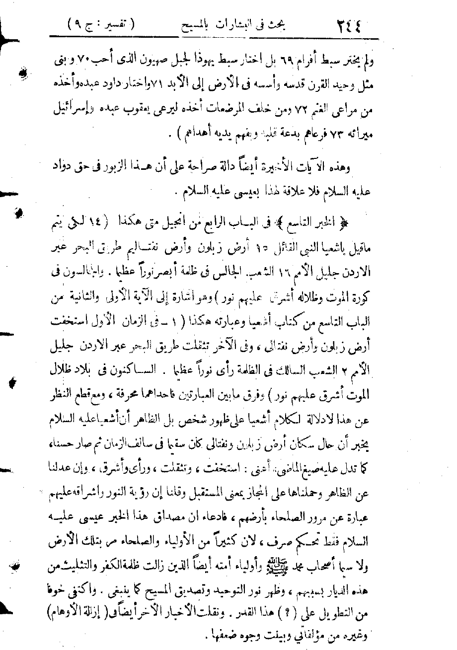(12) إِنَّ عِيسَى - عَلَيْهِ السَّلَامُ - قَالَ: لَيْسَ يَنْطِقُ مِنْ عِنْدِهِ، بَلْ يَتَكَلَّمُ بِكُلِّ مَا يَسْمَعُ، وَهَذَا يَدُلُّ عَلَى أَنَّ الْفَارَقْلِيطَ يَكُونُ بِحَيْثُ يُكَذِّبُهُ بَنُو إِسْرَائِيلَ، فَاحْتَاجَ عِيسَى - عَلَيْهِ السَّلَامُ - أَنَّ يُقَرِّرَ حَالَ صِدْقِهِ فَقَالَ هَذَا الْقَوْلَ، وَلَا مَجَالَ لِمَظِنَّةِ التَّكْذِيبِ فِي حَقِّ الرُّوحِ النَّازِلِ يَوْمَ الدَّارِ عَلَى أَنَّ هَذَا الرُّوحَ عِنْدَهُمْ عَيْنُ اللهِ، فَلَا مَعْنَى لِقَوْلِهِ: بَلْ يَتَكَلَّمُ بِمَا يَسْمَعُ فَمِصْدَاقُهُ مُحَمَّدٌ صَلَّى اللَّهُ عَلَيْهِ وَسَلَّمَ فَإِنَّهُ كَانَ فِي حَقِّهِ مَظِنَّةُ التَّكْذِيبِ، وَلَيْسَ هُوَ عَيْنَ اللهِ، وَكَانَ يَتَكَلَّمُ بِمَا يُوحَى إِلَيْهِ كَمَا قَالَ تَعَالَى: وَمَا يَنْطِقُ عَنِ الْهَوَى إِنْ هُوَ إِلَّا وَحْيٌ يُوحَى (53: 3، 4) وَقَالَ إِنْ أَتَّبِعُ إِلَّا مَا يُوحَى إِلَيَّ (6:50) .