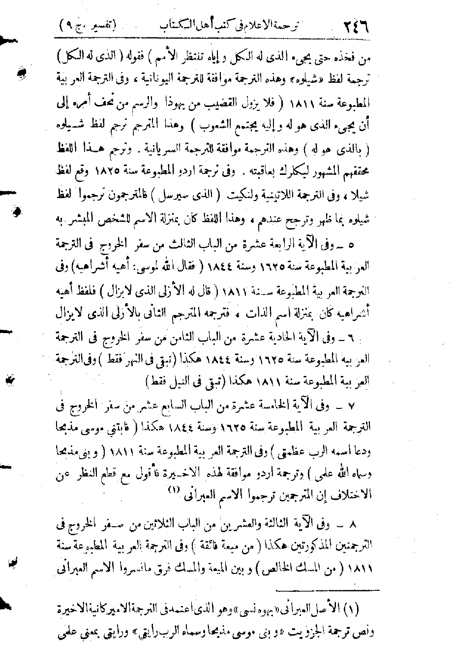 الثَّالِثَ عَشَرَ مِنْ إِنْجِيلِهِ. وَأَنْقُلُ عِبَارَتَهُ عَنِ التَّرْجَمَةِ الْعَرَبِيَّةِ الْمَطْبُوعَةِ سَنَةَ 1816 وَسَنَةَ 1825 (13 فَلِذَلِكَ أَضْرِبُ لَكُمُ الْأَمْثَالَ؛ لِأَنَّهُمْ يَنْظُرُونَ وَلَا يُبْصِرُونَ، وَيَسْمَعُونَ وَلَا يَسْتَمِعُونَ وَلَا يَفْهَمُونَ 14 وَقَدْ كَمُلَ فِيهِمْ تَنَبُّؤُ أَشْعِيَا حَيْثُ قَالَ: إِنَّكُمْ تَسْتَمِعُونَ سَمْعًا وَلَا تَفْهَمُونَ، وَتَنْظُرُونَ نَظَرًا وَلَا تُبْصِرُونَ فَلَا إِشْكَالَ أَيْضًا.