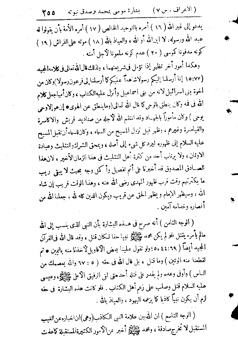 ثُمَّ إِنَّ بَقِيَّةَ بِشَارَةِ حجى لَا تَصْدُقُ عَلَى غَيْرِ نَبِيِّنَا ـ صَلَّى اللَّهُ عَلَيْهِ وَسَلَّمَ ـ مُحَمَّدِ الْأُمَمِ فَهُوَ الَّذِي زَلْزَلَ رَبُّ الْجُنُودِ بِبِعْثَتِهِ الْعَالِمَ، وَنَصَرَهُ بِالْجُنُودِ وَبِالْحُجَّةِ جَمِيعًا، وَكَانَ مَجْدُ دِينِ اللهِ بِهِ أَعْظَمَ مِنْ مَجْدِهِ بِمُوسَى وَسَائِرِ أَنْبِيَاءِ قَوْمِهِ، وَفُرِضَتْ شَرِيعَةُ الزَّكَاةِ وَخُمْسُ الْغَنَائِمِ تُنْفَقُ فِي سَبِيلِ اللهِ فَكَانَتِ الْفِضَّةُ وَالذَّهَبُ لِلَّهِ - وَفِي النُّسْخَةِ السَّبْعِينِيَّةِ لِلْعَهْدِ الْقَدِيمِ: إِنَّ الْآيَةَ التَّاسِعَةَ مِنْ هَذِهِ الْبِشَارَةِ، " إِنَّ الْمَجْدَ الْقَدِيمَ لِهَذَا الْبَيْتِ أَعْظَمُ مِنَ الْمَجْدِ الَّذِي كَانَ لِلْهَيْكَلِ الْأَوَّلِ " وَهَذِهِ الْعِبَارَةُ أَظْهَرُ فِي الْمُرَادِ مِنْ تَرْجَمَةِ النَّصَارَى الَّتِي نَقَلْنَا عَنْهَا، وَحَسْبُنَا هَذَا مِنَ الْبِشَارَاتِ الْكَثِيرَةِ، وَمَنْ