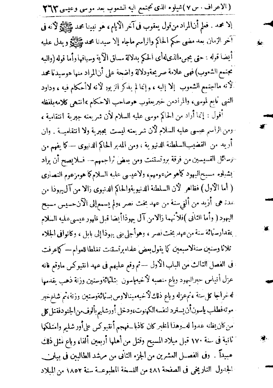 وَالرُّسُلِ وَالْبَعْثِ وَالْجَزَاءِ، وَلَكِنْ دَخَلَتْ عَلَى أَكْثَرِهِمُ الْوَثَنِيَّةُ الْقَدِيمَةُ بِجَمِيعِ أُصُولِهَا وَفُرُوعِهَا وَلَاسِيَّمَا النَّصَارَى الَّذِينَ أَقَامُوا عَقِيدَتَهُمْ عَلَى أَسَاسِ التَّثْلِيثِ الْمَعْرُوفِ عَنْ قُدَمَاءِ الْمِصْرِيِّينَ وَالْهُنُودِ وَغَيْرِهِمْ مِنَ الْوَثَنِيِّينَ، وَكَانَ الْيَهُودُ يَزْعُمُونَ أَنَّ النُّبُوَّةَ وَالرِّسَالَةَ مَحْصُورَةٌ فِي بَنِي إِسْرَائِيلَ لَا يُمْكِنُ أَنْ يَبْعَثَ اللهُ رَسُولًا مِنْ غَيْرِهِمْ، وَكَانَتِ التَّوْرَاةُ قَدْ فُقِدَتْ فِي غَزْوَةِ الْبَابِلِيِّينَ لَهُمْ، ثُمَّ كَتَبَ بَعْضُهُمْ لَهُمْ تَوْرَاةً بَعْدَ عِدَّةِ قُرُونٍ هِيَ عِبَارَةٌ عَنْ تَارِيخٍ دِينِيٍّ مُشْتَمِلٍ عَلَى قَصَصِ الْأَنْبِيَاءِ إِلَى عَهْدِ مُوسَى وَهَارُونَ، وَعَلَى مَا تَذَكَّرَ الْكَاتِبُ مِنْ شَرِيعَةِ التَّوْرَاةِ مَعَ تَحْرِيفٍ وَأَغْلَاطٍ كَثِيرَةٍ، وَكَانَ الْإِنْجِيلُ الَّذِي جَاءَ بِهِ عِيسَى عَلَيْهِ السَّلَامُ مِنْ وَعْظٍ وَتَعْلِيمٍ وَبِشَارَةٍ قَدِ ادَّعَاهُ كَثِيرُونَ فَظَهَرَ فِي الْعَصْرِ الْأَوَّلِ بَعْدَهُ زُهَاءَ سَبْعِينَ إِنْجِيلًا اخْتَارَ الْجُمْهُورُ الَّذِي جَمَعَ شَمْلَهُ الْمَلِكُ قُسْطَنْطِينُ - الْوَثَنِيُّ الَّذِي تَنَصَّرَ سِيَاسَةً - أَرْبَعَةً مِنْهَا فِيهَا كَثِيرٌ مِنَ الْخِلَافِ وَالتَّعَارُضِ، وَذَلِكَ بَعْدَ الْمَسِيحِ بِثَلَاثَةِ قُرُونٍ، وَفَشَا فِيهِمْ مُنْذُ عَهْدِ هَذَا الْمَلِكِ الْوَثَنِيِّ الْمُتَنَصِّرِ عِبَادَةُ السَّيِّدَةِ مَرْيَمَ عَلَيْهَا السَّلَامُ وَغَيْرِهَا مِنَ الصَّالِحِينَ حَتَّى صَارَتِ الْكَنَائِسُ النَّصْرَانِيَّةُ كَهَيَاكِلِ الْأَوْثَانِ مَمْلُوءَةً بِالصُّوَرِ وَالتَّمَاثِيلِ الْمَعْبُودَةِ - فَكَانَتْ دَعْوَةُ النَّبِيِّ ـ صَلَّى اللَّهُ عَلَيْهِ وَسَلَّمَ ـ إِيَّاهُمْ إِلَى الْإِسْلَامِ وَحُجَجُهُ عَلَيْهِمُ الَّتِي أَنْزَلَهَا اللهُ عَلَيْهِ فِي الْقُرْآنِ تَخْتَلِفُ مِنْ بَعْضِ الْوُجُوهِ عَنْ دَعْوَةِ الْمُشْرِكِينَ الْأَصْلِيِّينَ، كَمَا تَرَاهُ مَبْسُوطًا فِي السُّوَرِ الطِّوَالِ الْأَرْبَعِ الْأُولَى: الْبَقَرَةِ وَآلِ عِمْرَانَ وَالنِّسَاءِ وَالْمَائِدَةِ - فَفِي الْجُزْءِ الْأَوَّلِ مِنَ الْبَقَرَةِ مِنَ الْقُرْآنِ: يُوَجِّهُ أَكْثَرَ الْكَلَامِ إِلَى الْيَهُودِ، وَذُكِرَتْ فِيهِ النَّصَارَى بِالْعَرَضِ - وَأَوَائِلُ سُورَةِ آلِ عِمْرَانَ نَزَلَتْ فِي حِجَاجِ نَصَارَى نَجْرَانَ، وَفِي أَوَاخِرِ النِّسَاءِ كَلَامٌ فِي أَهْلِ الْكِتَابِ أَكْثَرُهُ فِي النَّصَارَى. وَجُلُّ سُورَةِ الْمَائِدَةِ فِي أَهْلِ الْكِتَابِ عَامَّةً وَالنَّصَارَى خَاصَّةً.